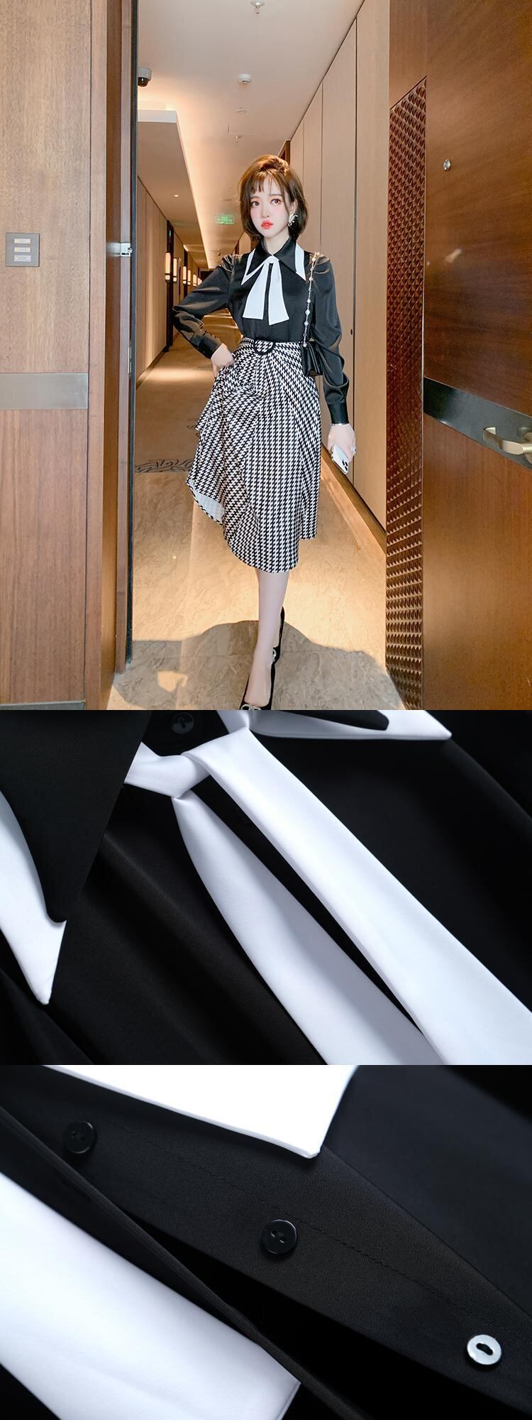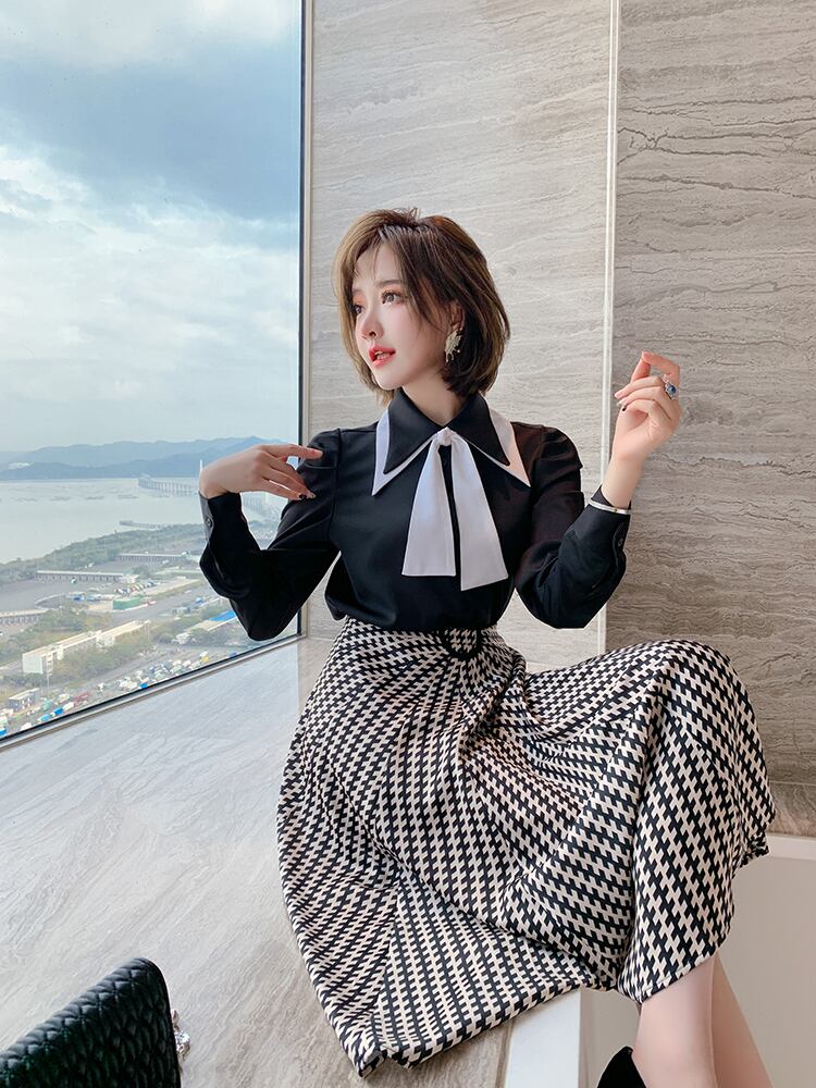 シャツ スタンダードプリント柄ハイウェストウェストスカート スプリング レトロ 春物 MIUCO19645928086