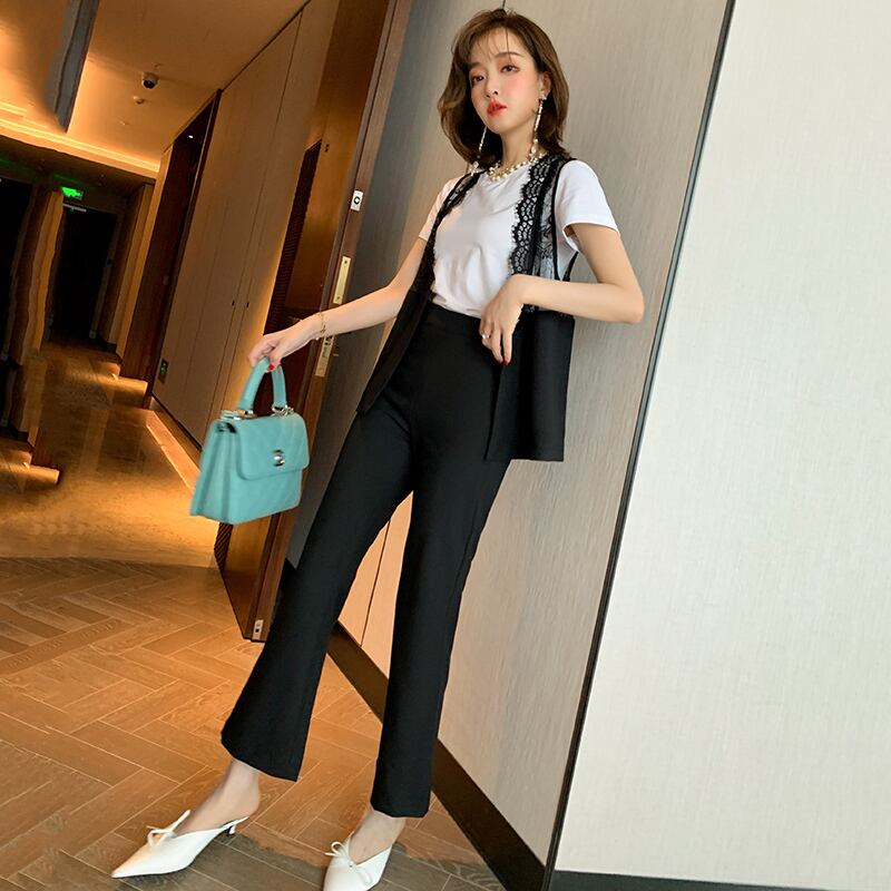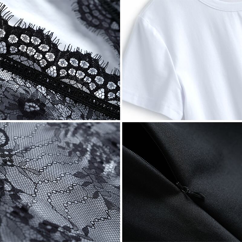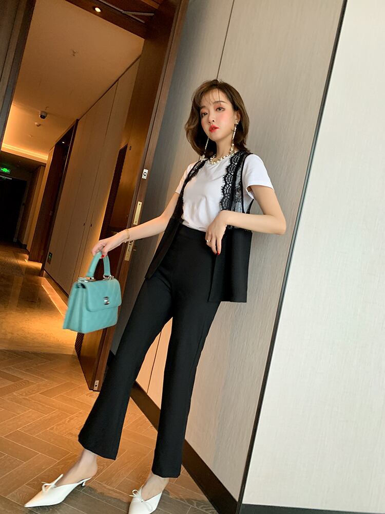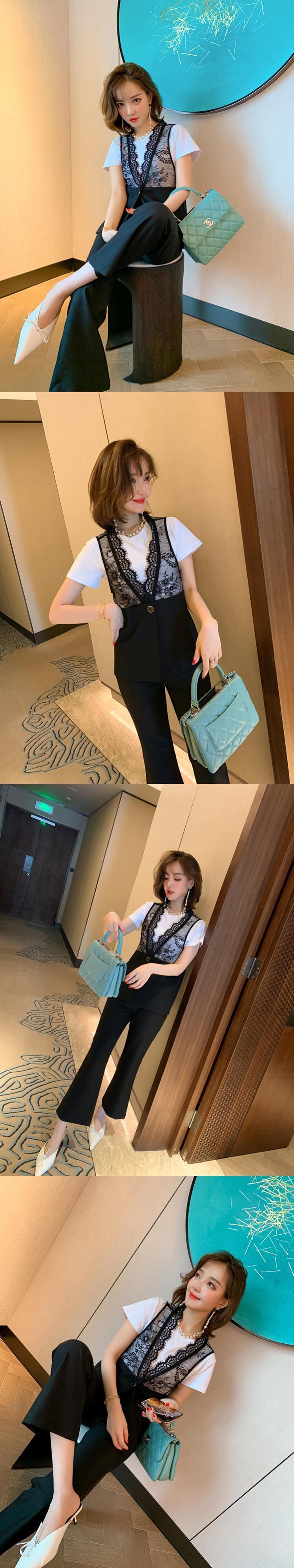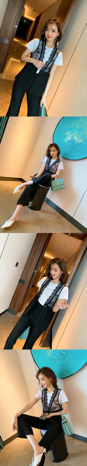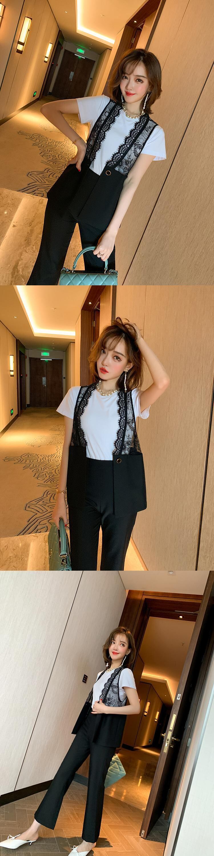 レースベーシックTシャツ ハイウェストパンツ スプリングサマー レッド 春物 夏物 ステッチ MIUCO67454920160
