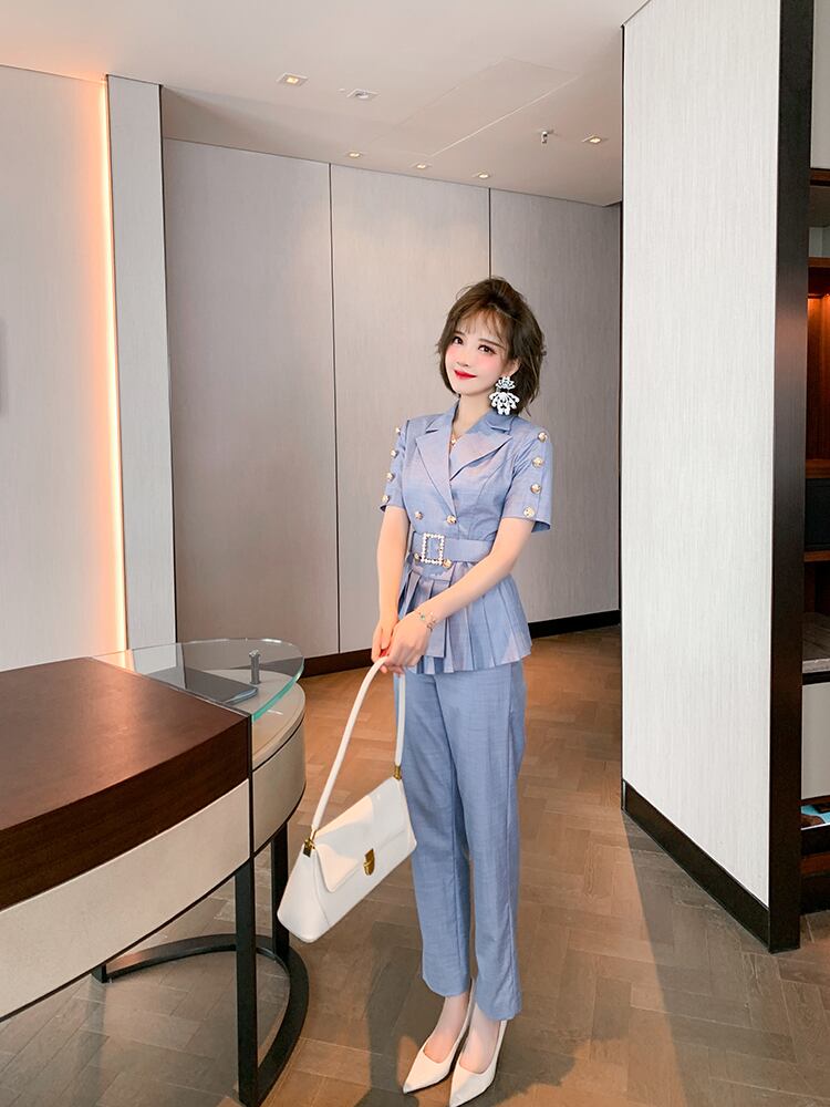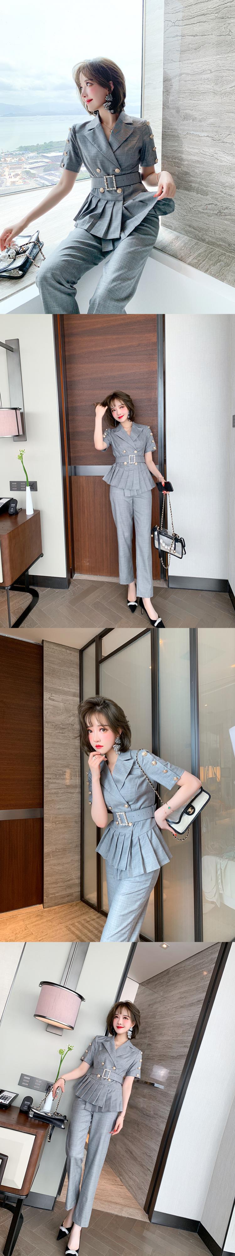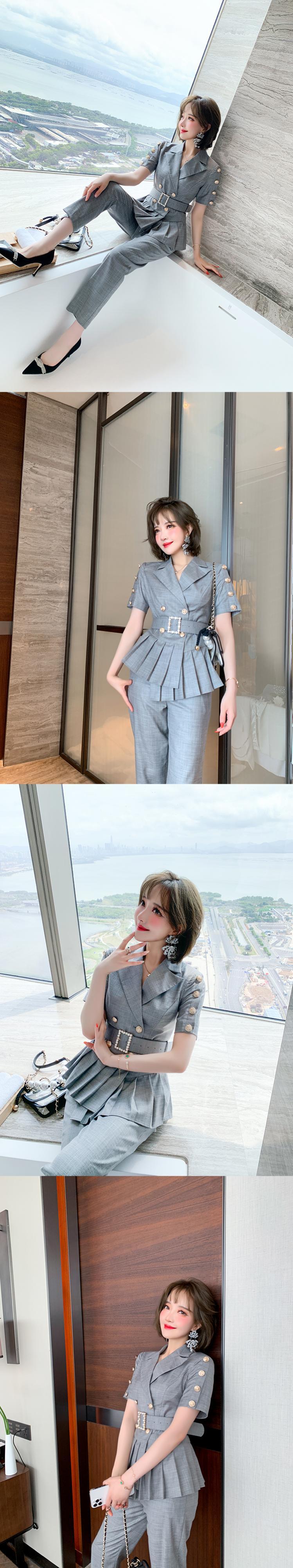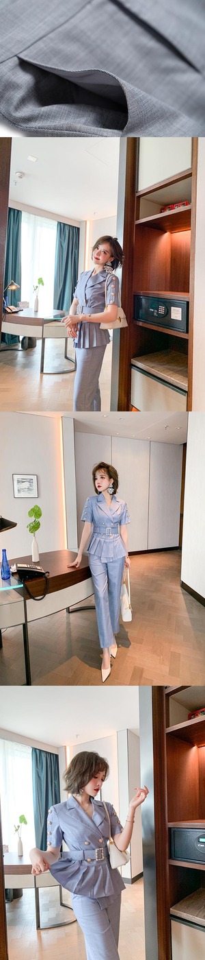 カラープリーツブラウス ハイウェストパンツ スプリングサマー 春物 夏物 MIUCO9965858249