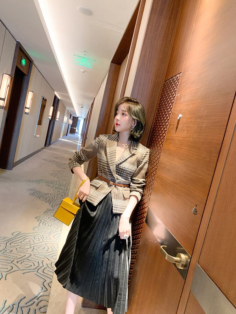 スタンダードウェストジャケット プリーツベルベットスカート スプリング レッド レトロ 春物 MIUCO33289339263