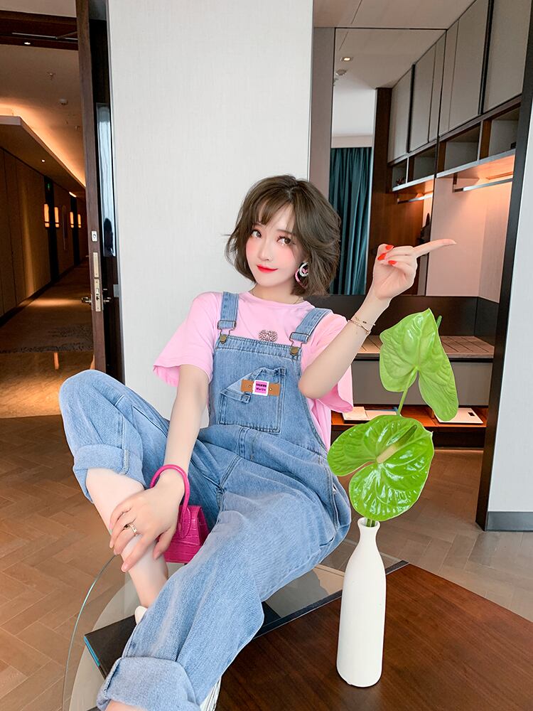 ラウンドネックTシャツ オーバーオール スプリングサマー 春物 夏物 Oネック MIUCO62821908337