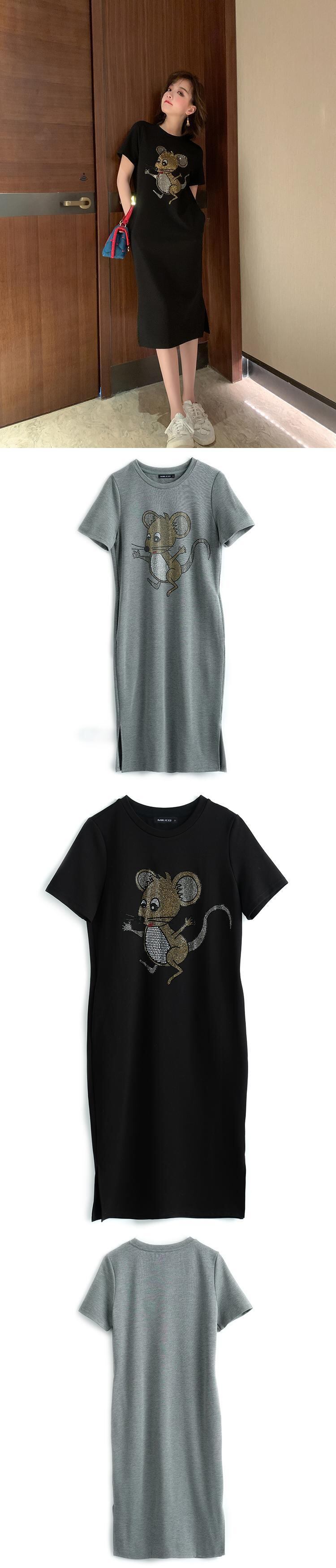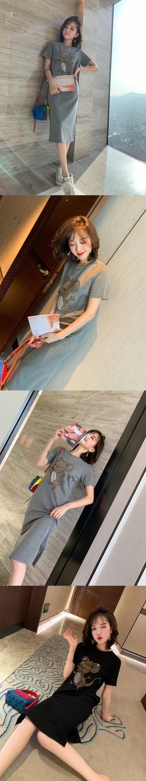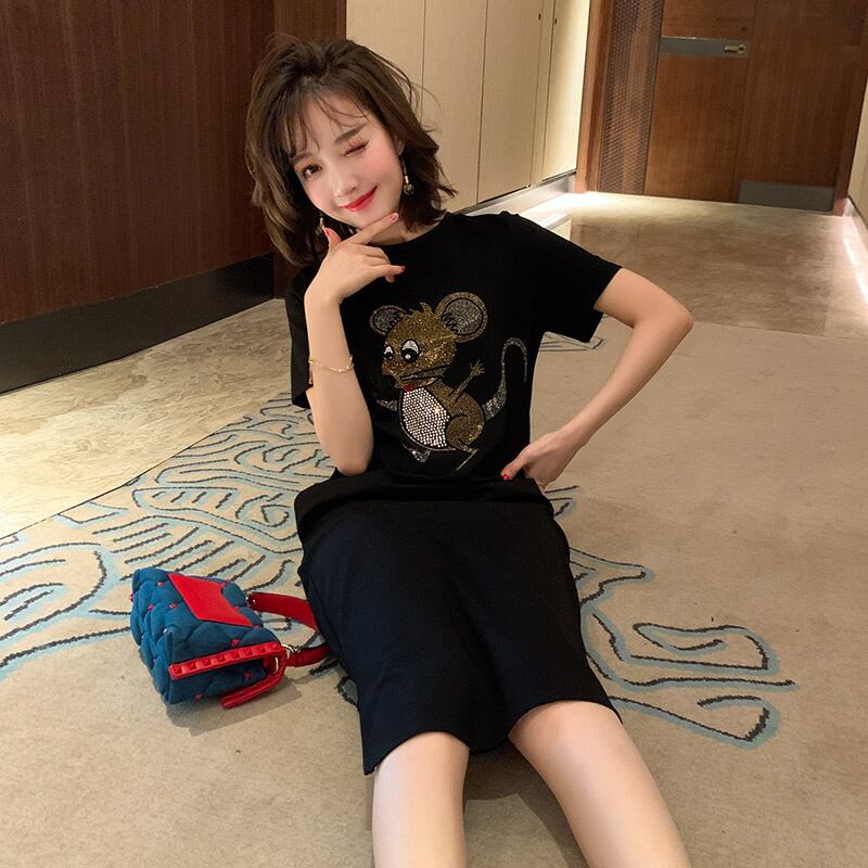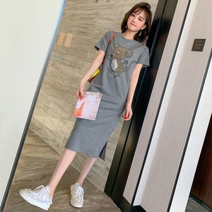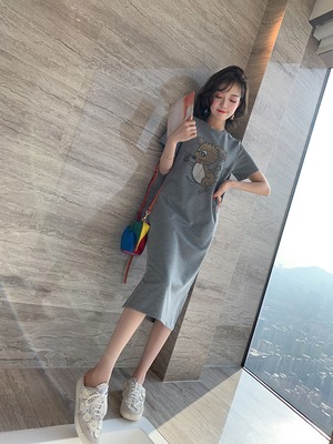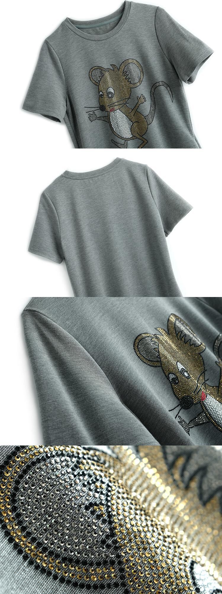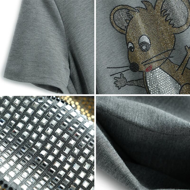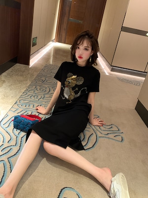 ラインストーン半袖スリーブTシャツ ドレス スプリング ショート ハーフスリーブ 春物 MIUCO93424141829