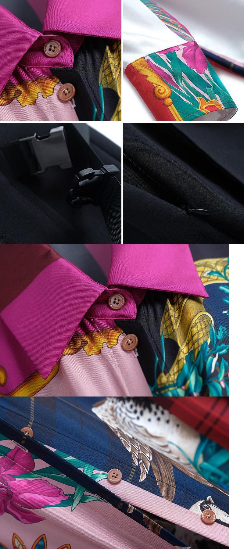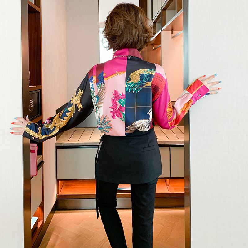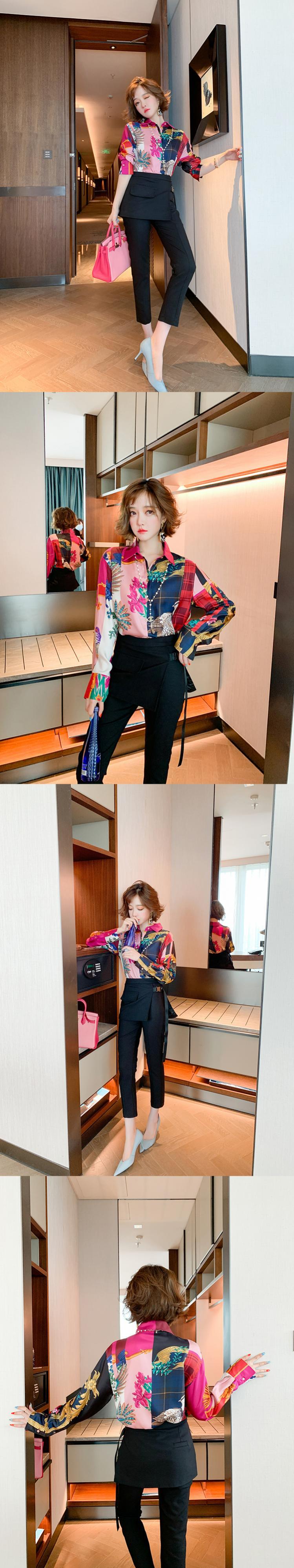 スタンダードプリントカラーシャツ パンツ セット スプリング レトロ 春物 ステッチ MIUCO56014675692