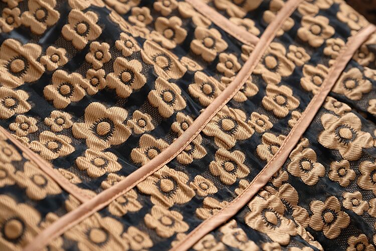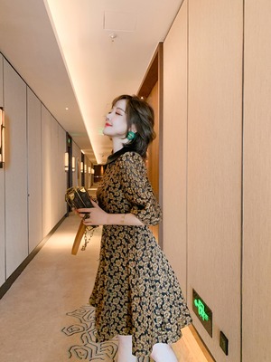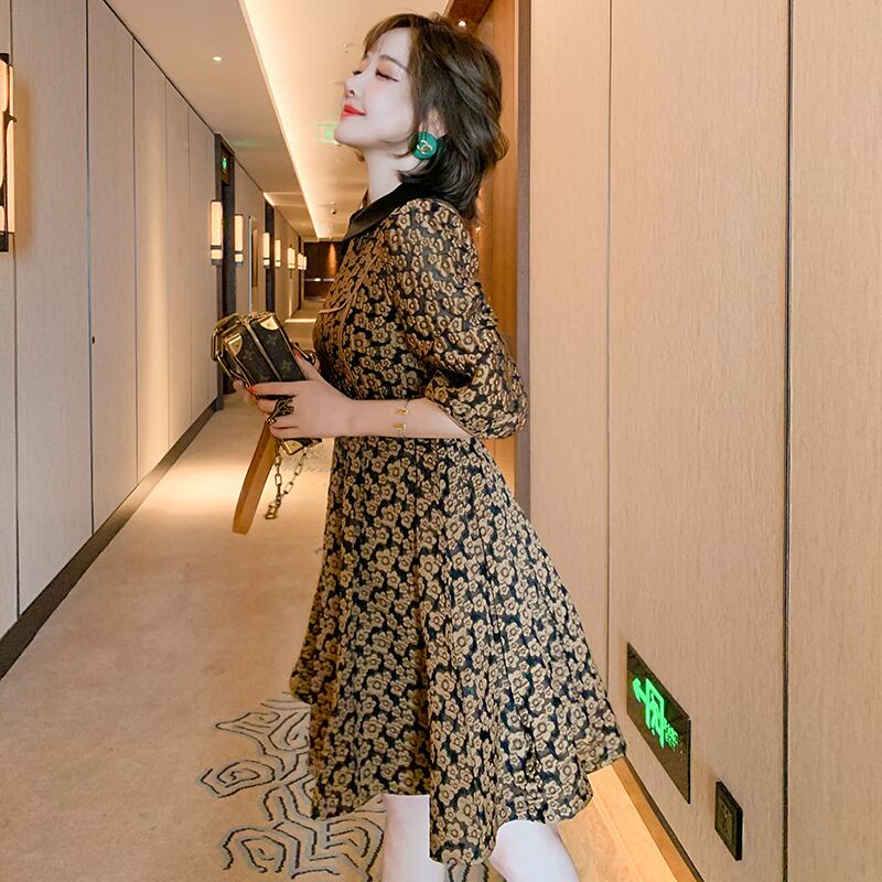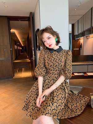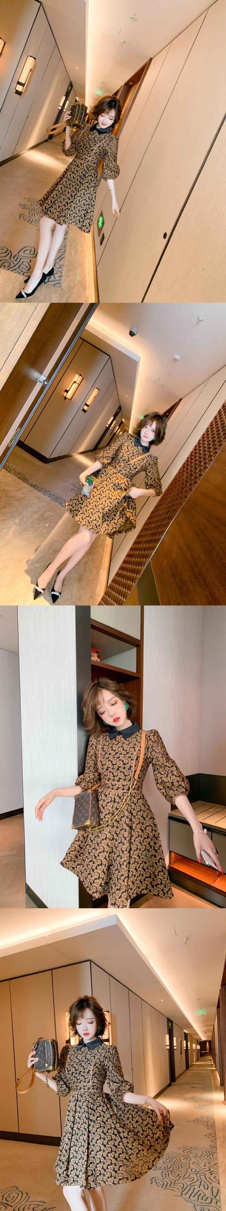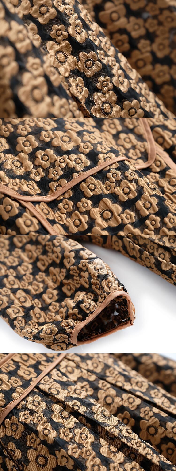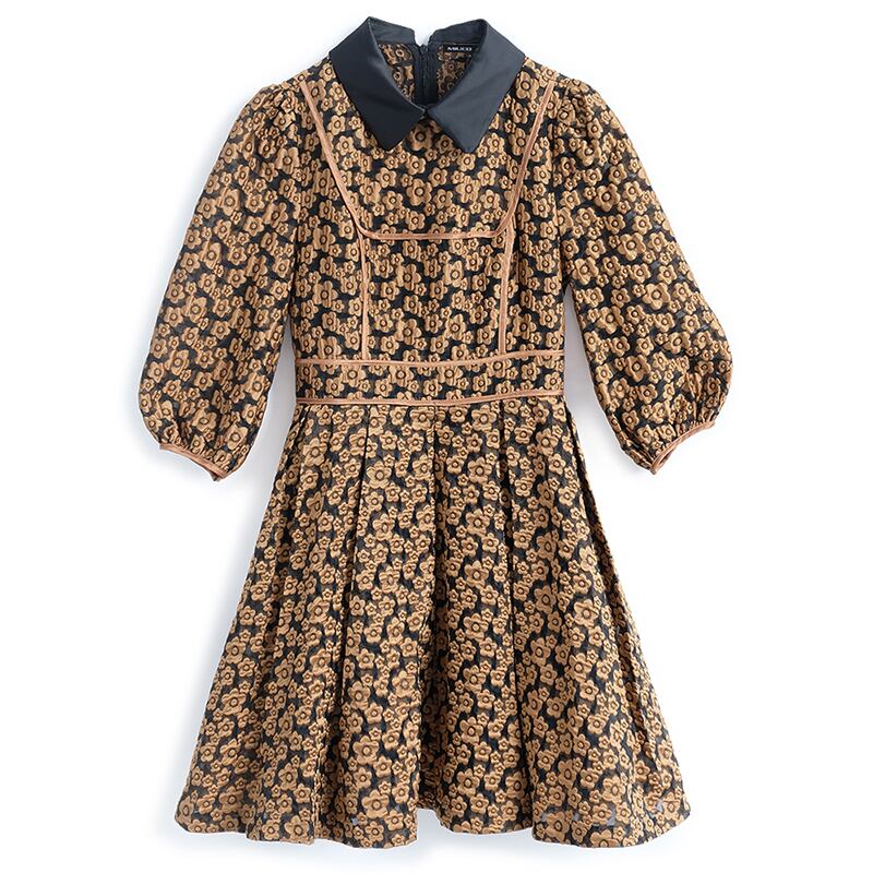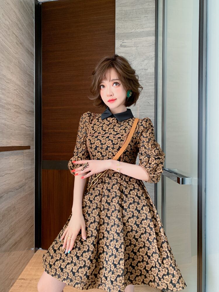スタンダードジャカードカラースリーブウェストAラインドレス スプリング ランタンスリーブ レトロ 春物 MIUCO23821967873