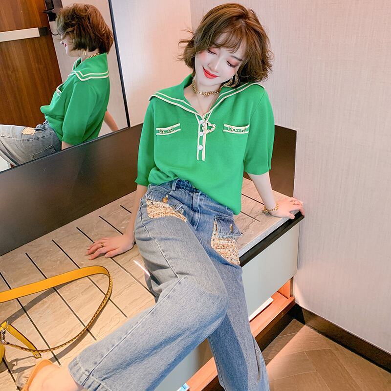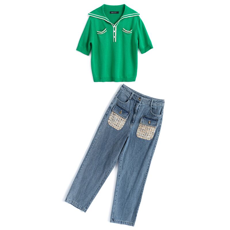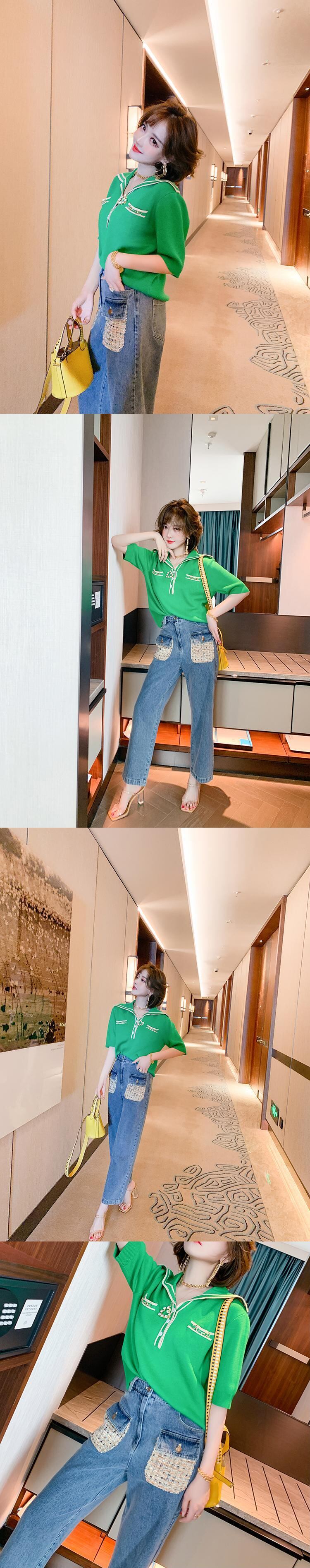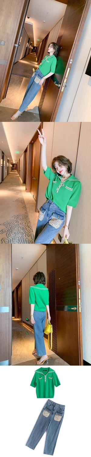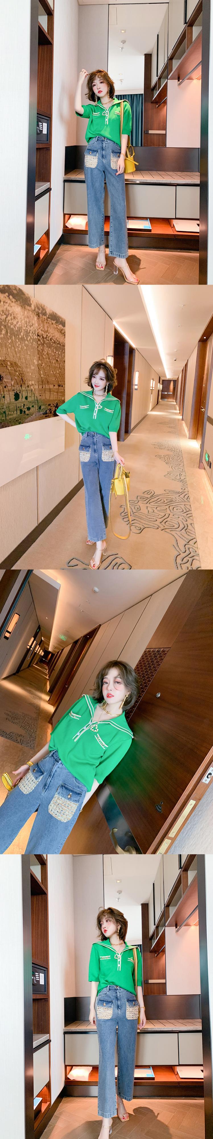 ニットトップス ツィードポケットジーンズ スプリングサマー 春物 夏物 MIUCO32285904261