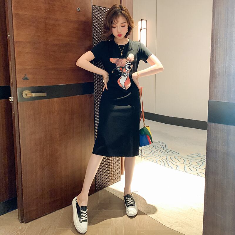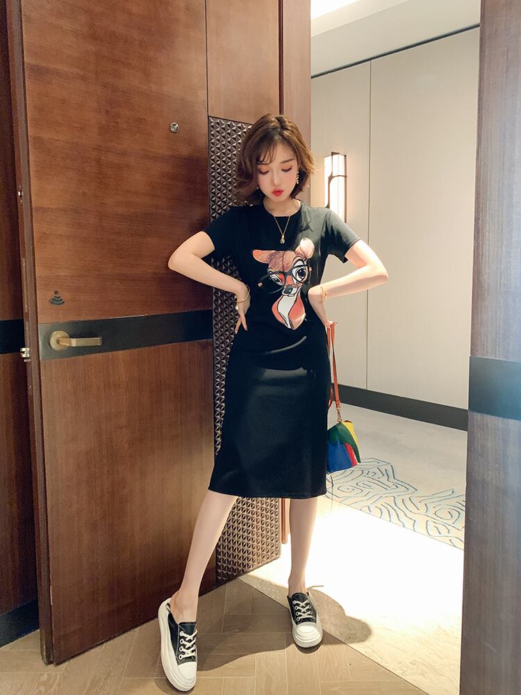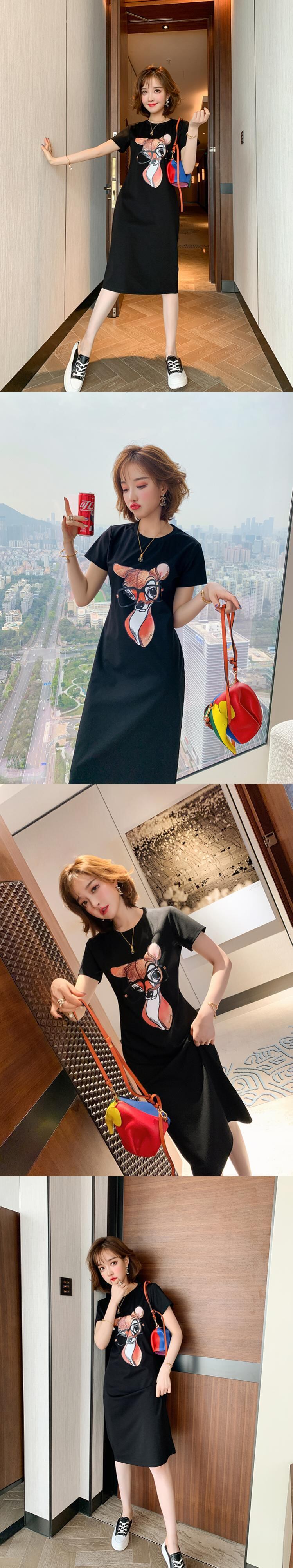 プリント柄ラウンドネック半袖スリーブフィットTシャツ ドレス スプリング ショート ハーフスリーブ 大人ガーリー スウィート キュート カジュアル 春物 Oネック MIUCO84097521600