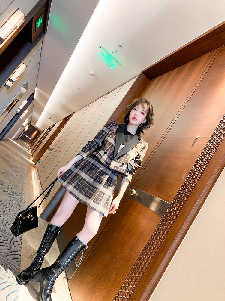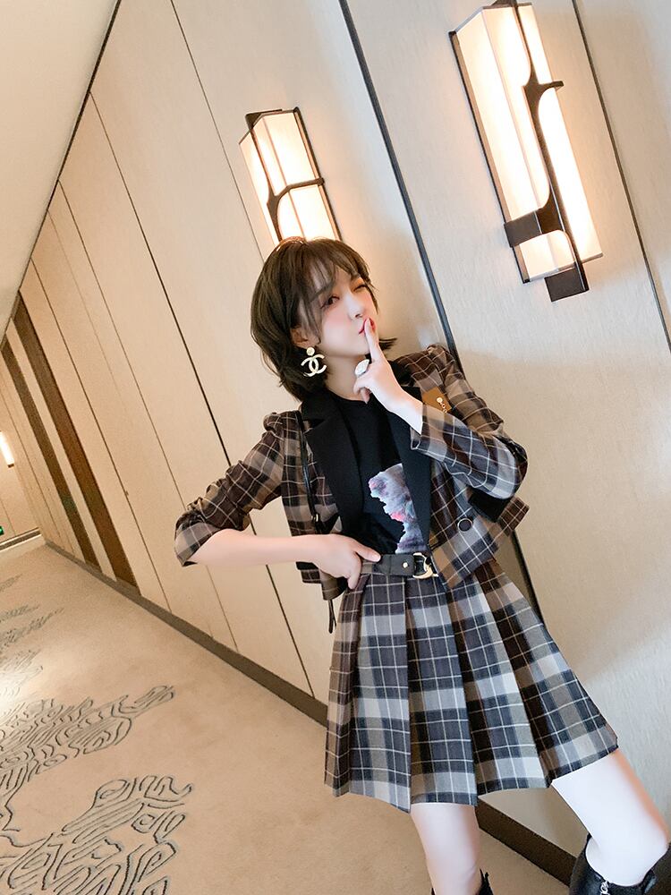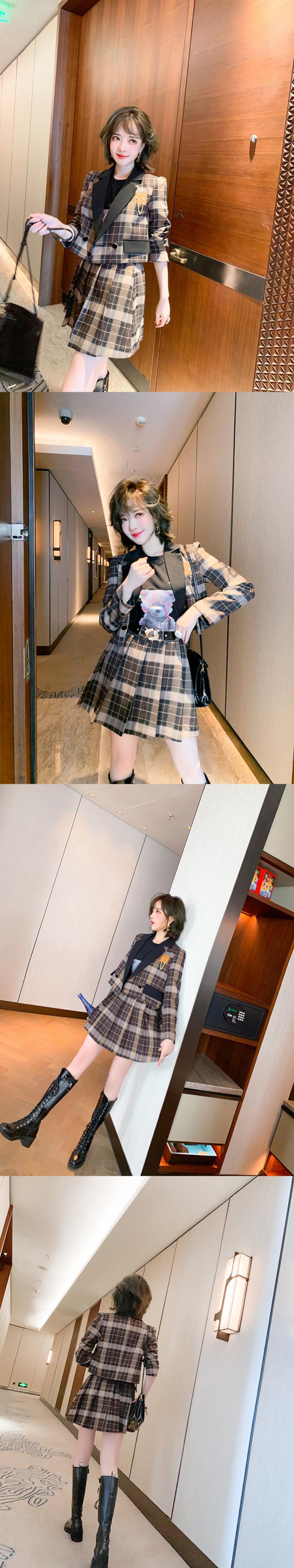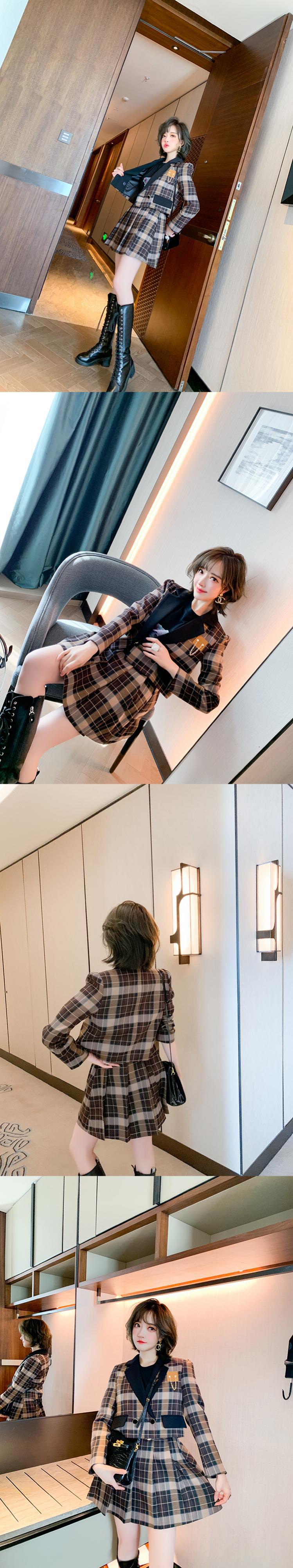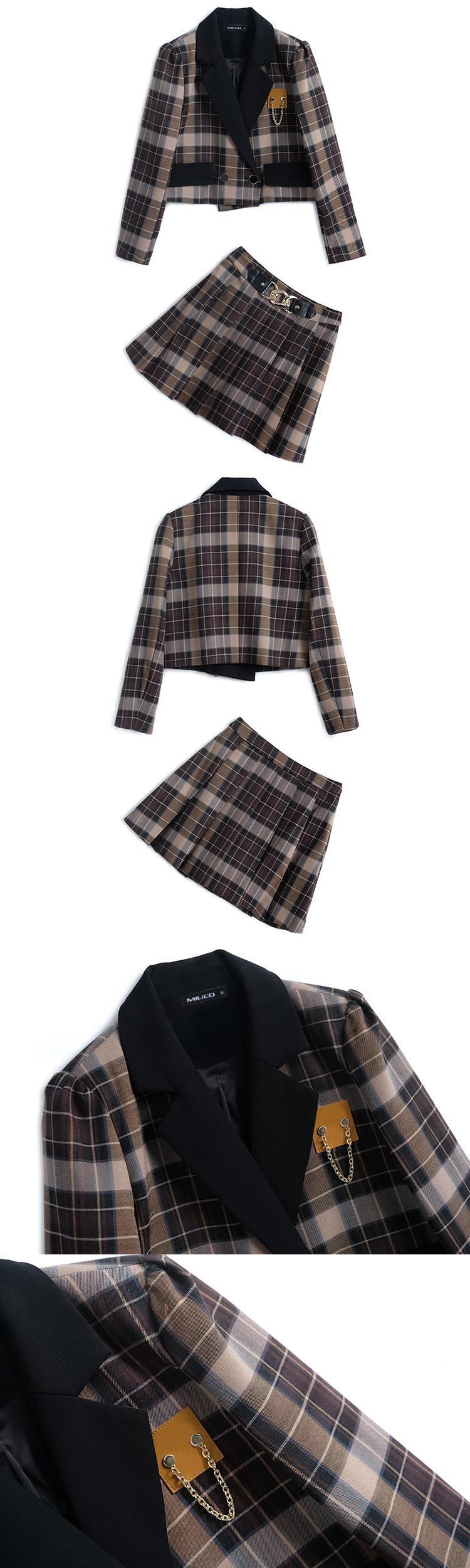 カラーショートジャケット プリーツハイウェストウェストスカート スプリング 春物 MIUCO73107710310