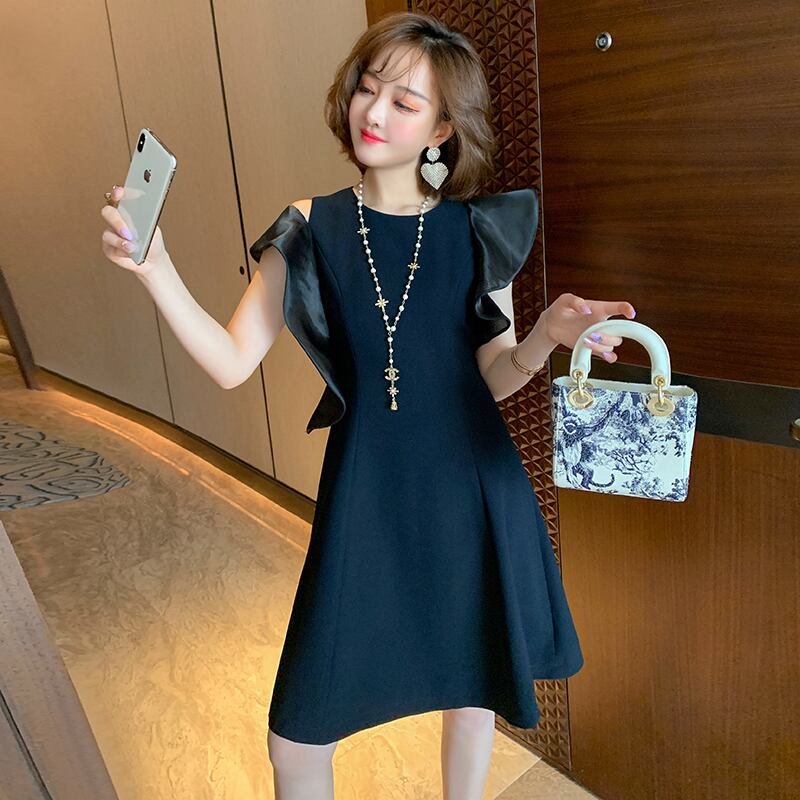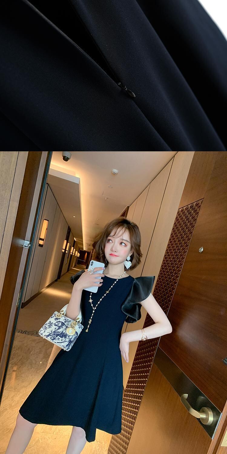 ラウンドネックアシンメトリーウェストドレス サマー エレガント 夏物 Oネック ステッチ MIUCO49079242451