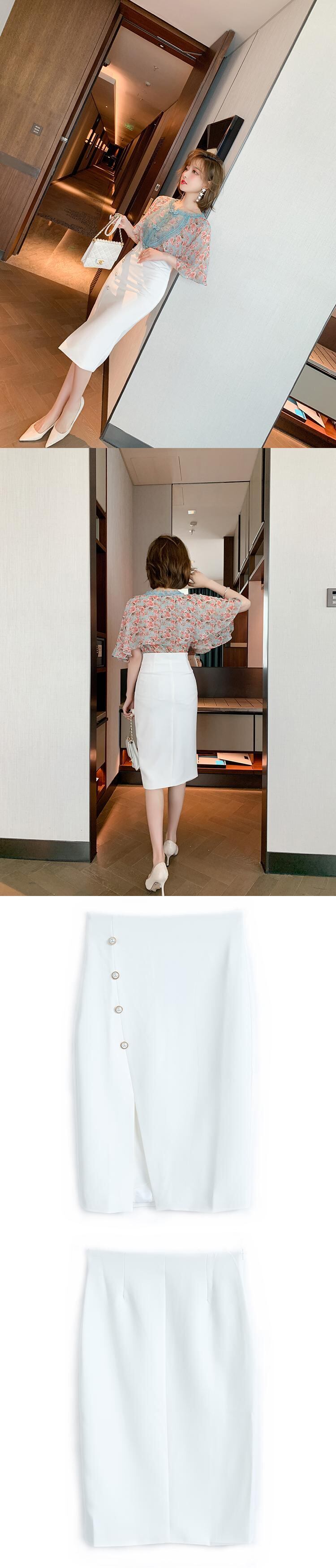 ハイウェストウェストスリムボタンソリッド カラースカート サマースタイル 夏物 ソリッドカラー MIUCO77915400546