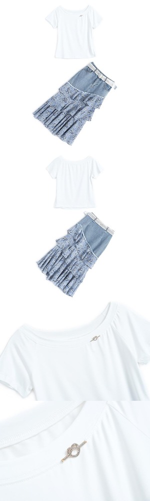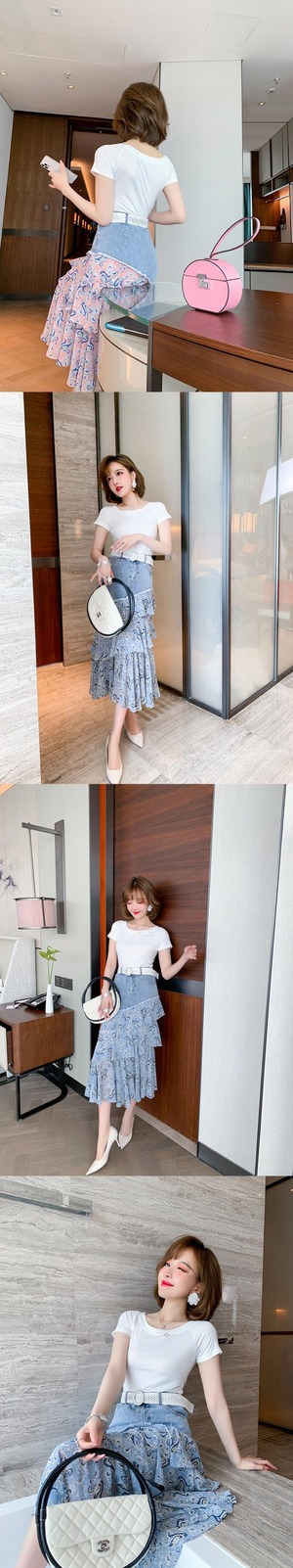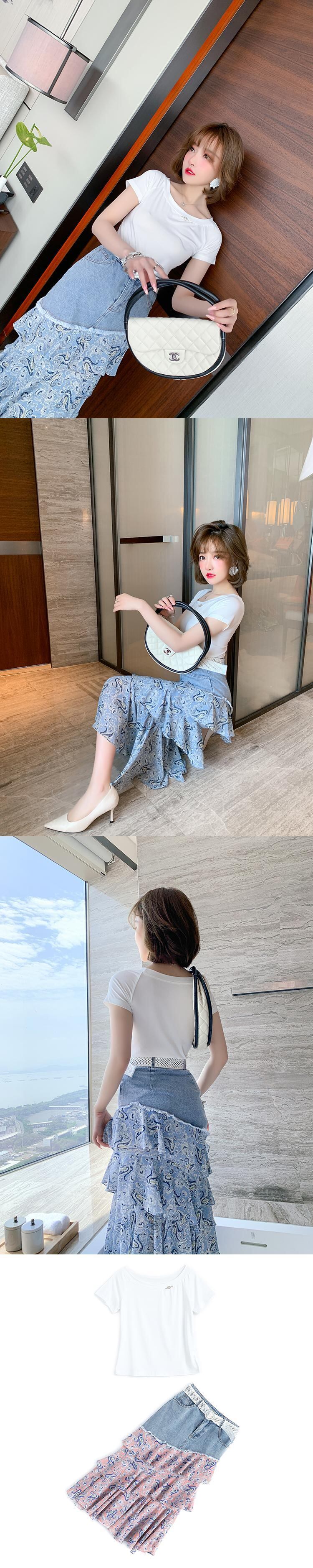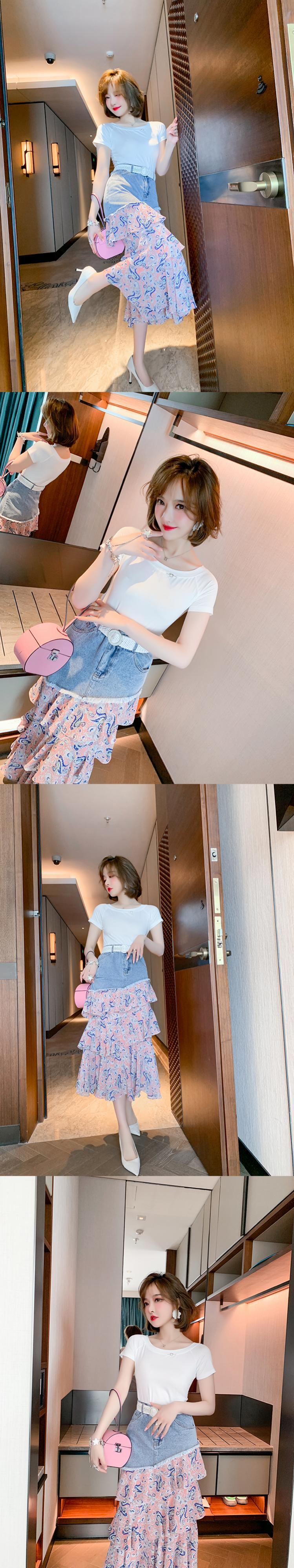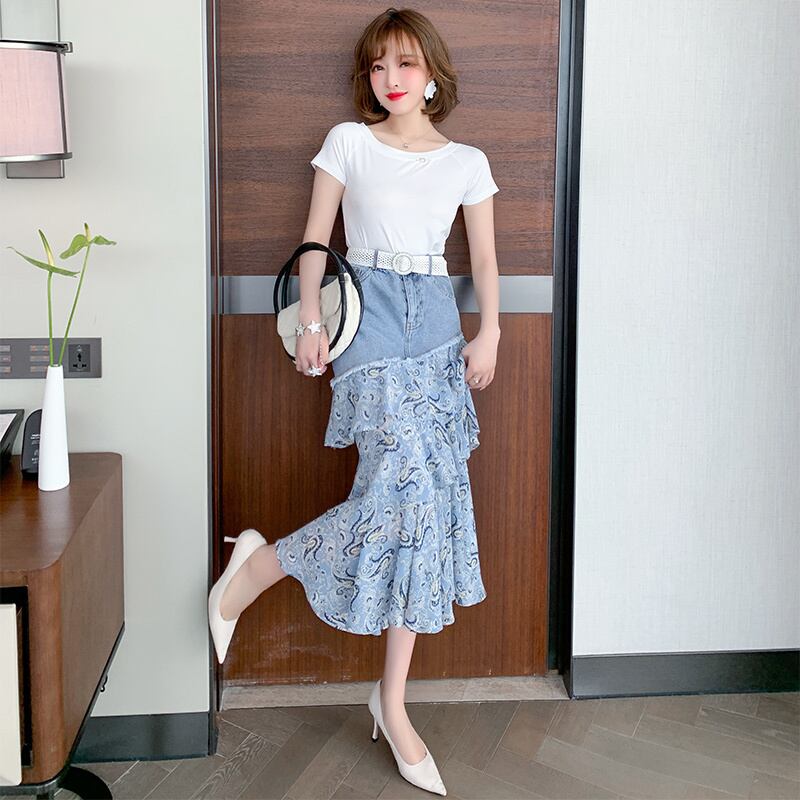 スリムTシャツ プリントラッフルスカート サマースタイル 夏物 ステッチ MIUCO61397622590