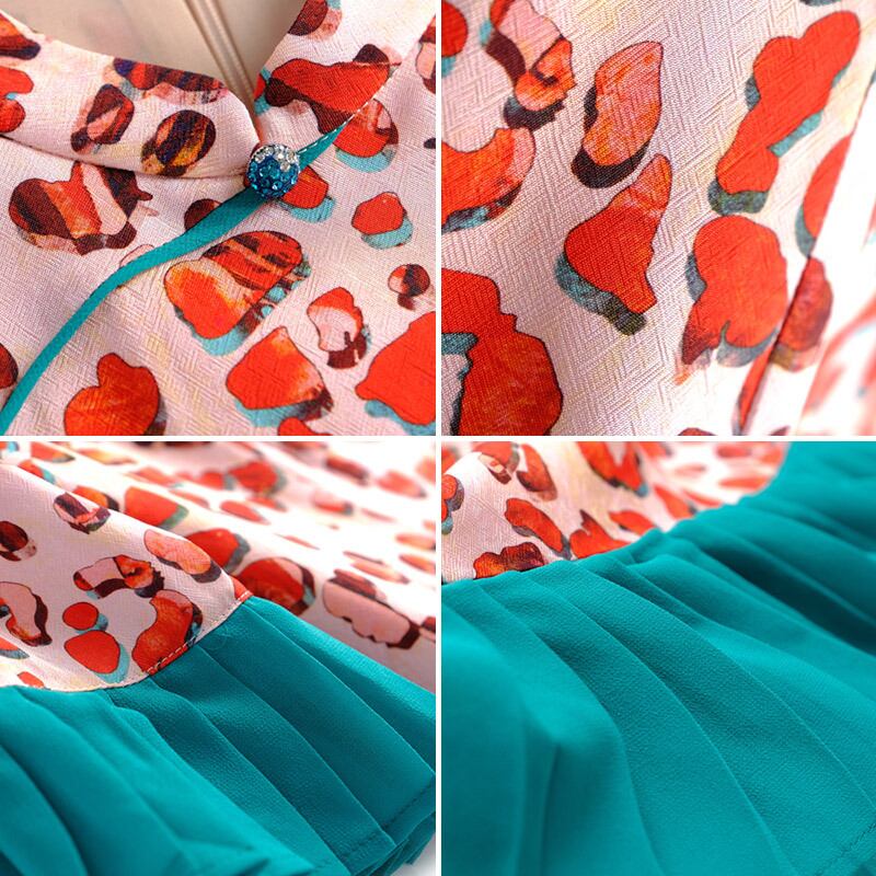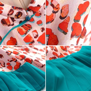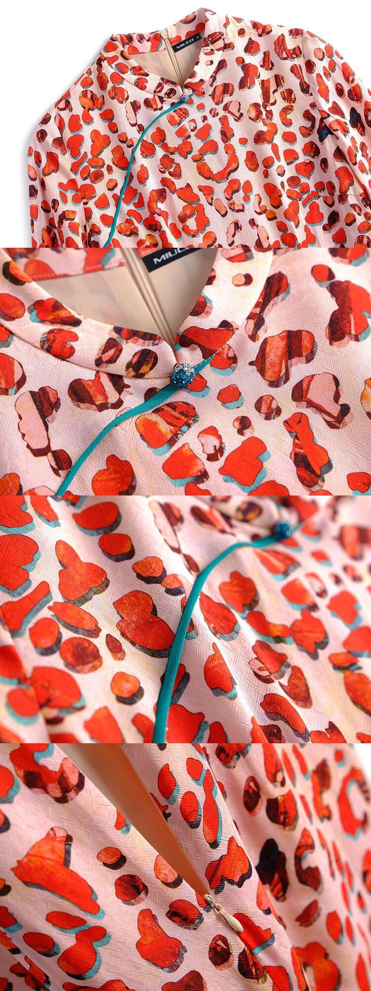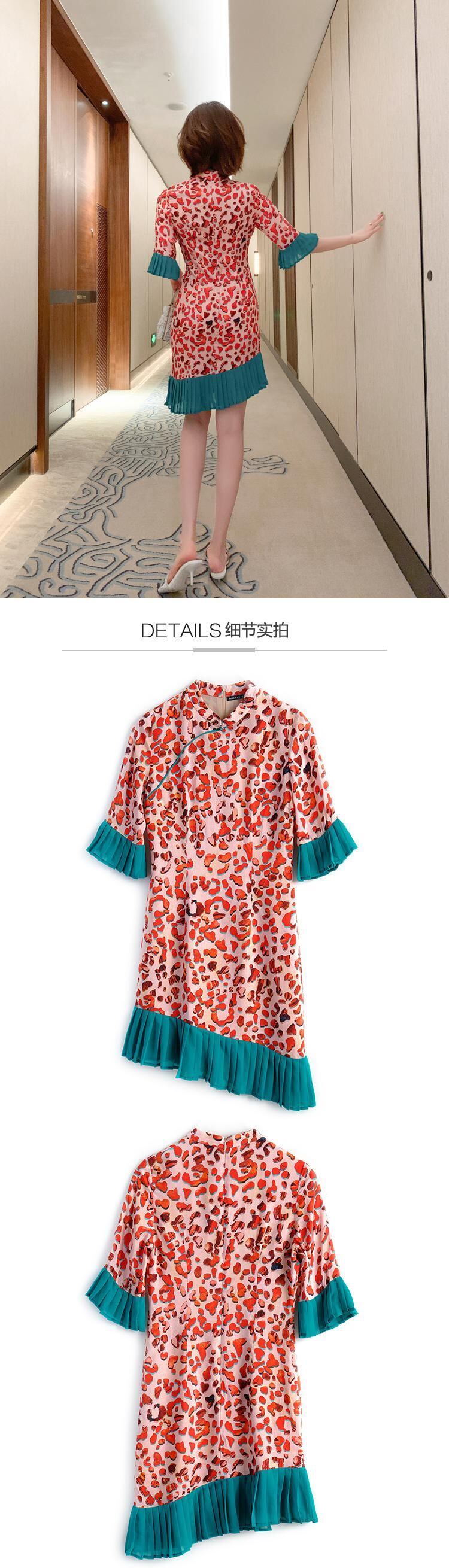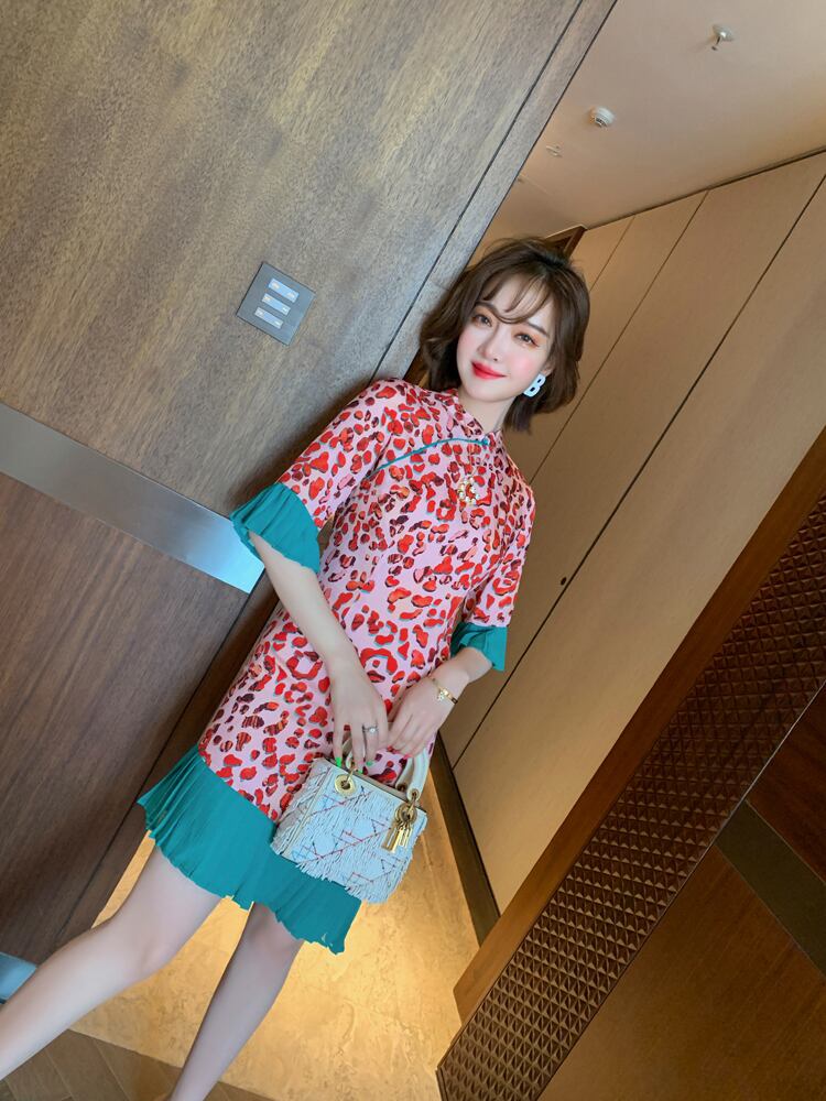 プリントスタンドカラーカラープリーツスリムウェストドレス サマー 夏物 ステッチ MIUCO49838580973