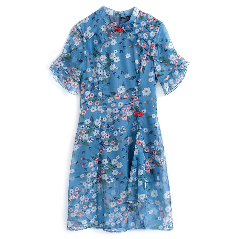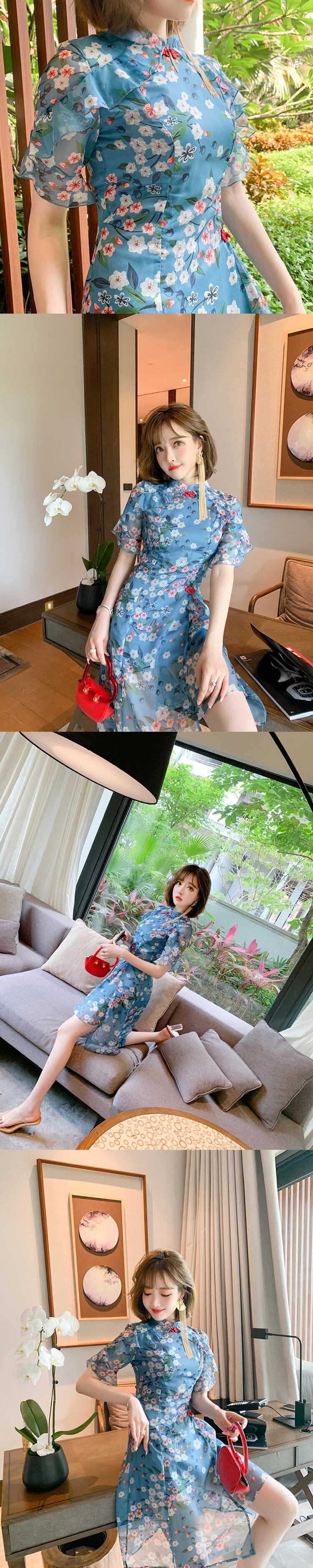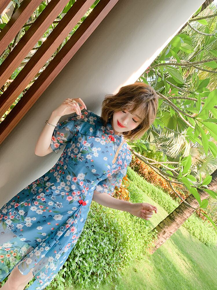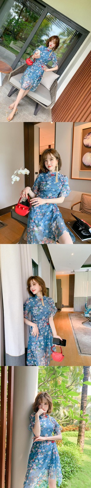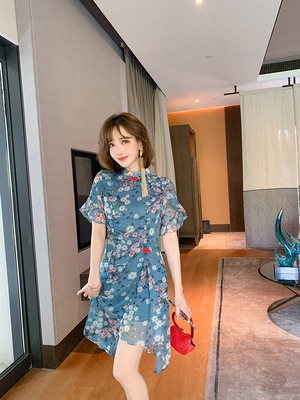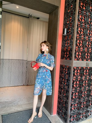 プリントカラーウェスト薄手ドレス サマー レトロ 夏物 MIUCO82607198019