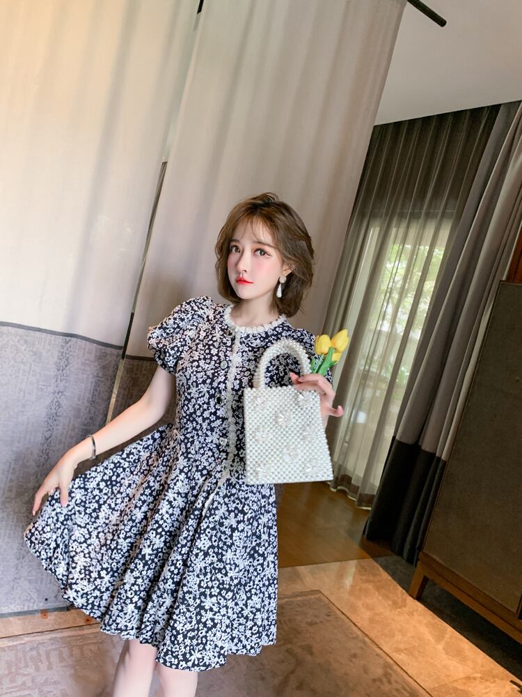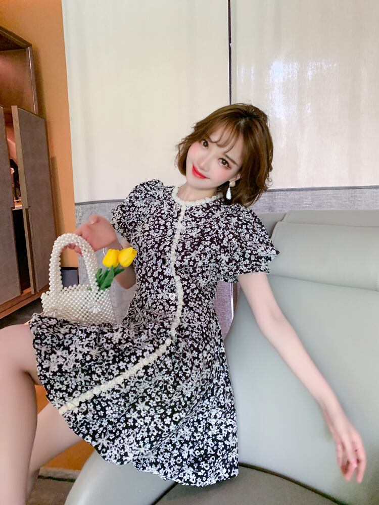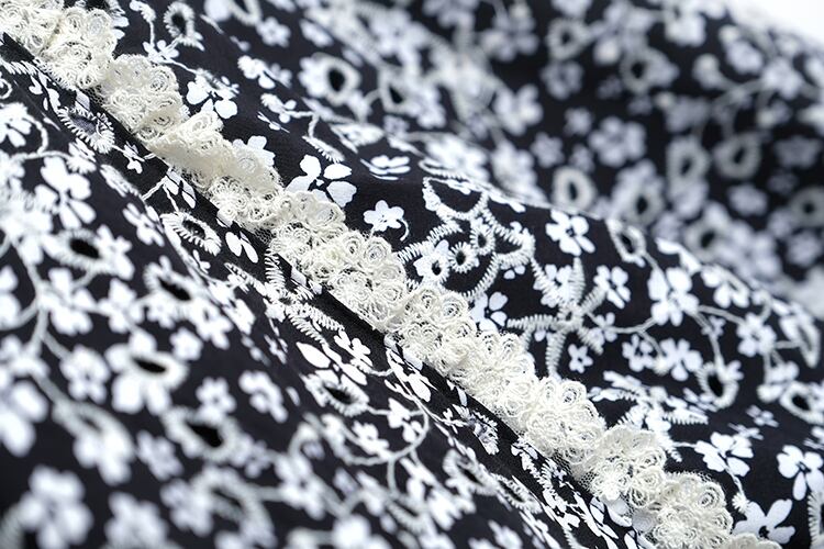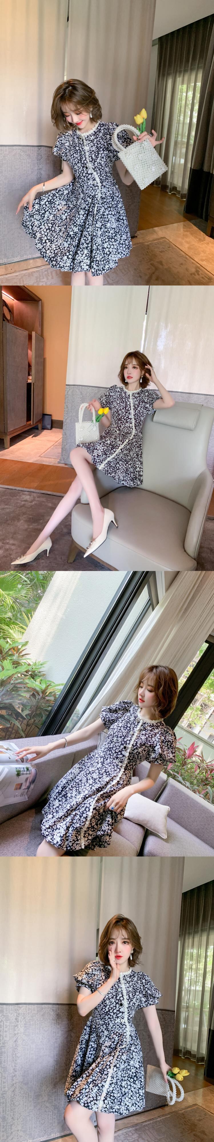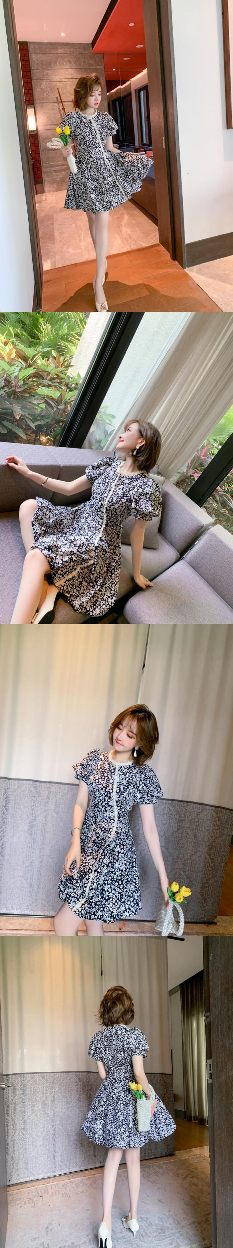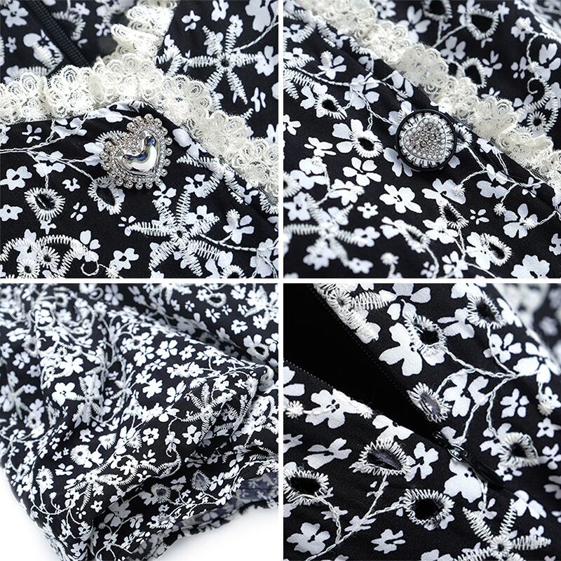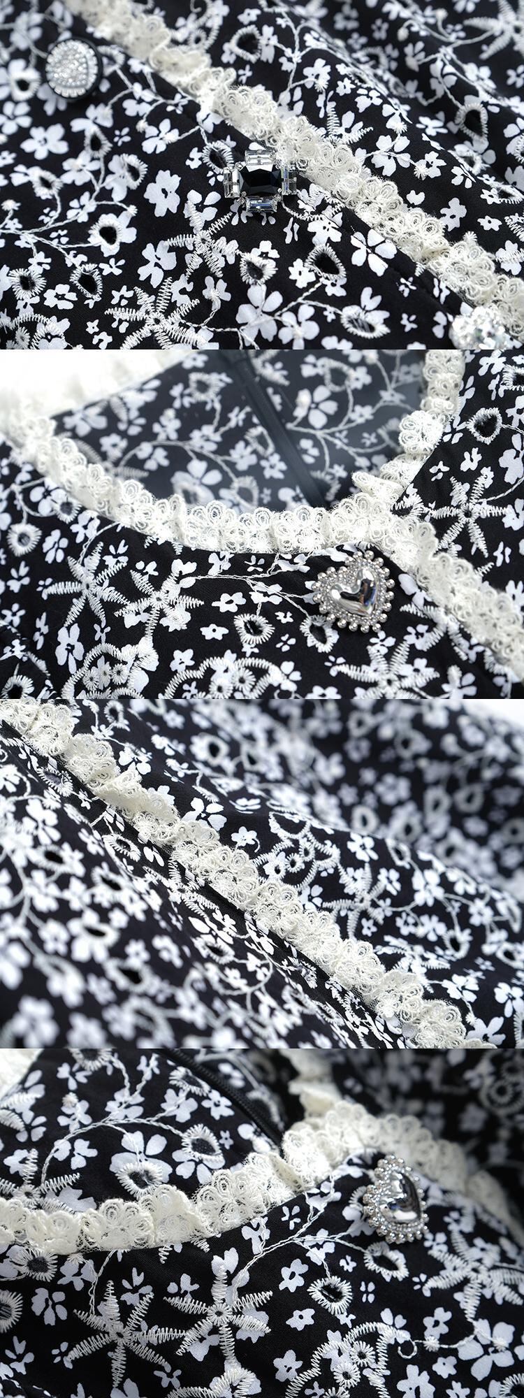 フローラル刺繍レーススリーブハイウェストウェストドレス サマー 夏物 花柄 ステッチ MIUCO55185033425