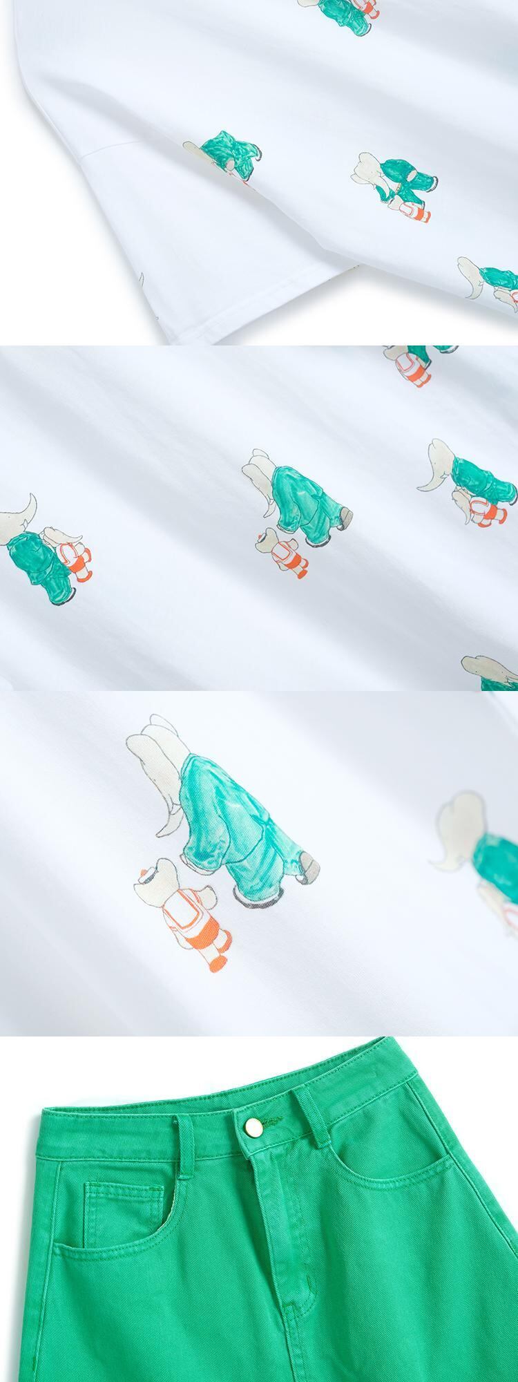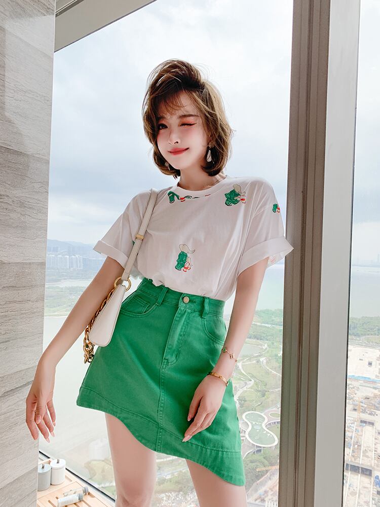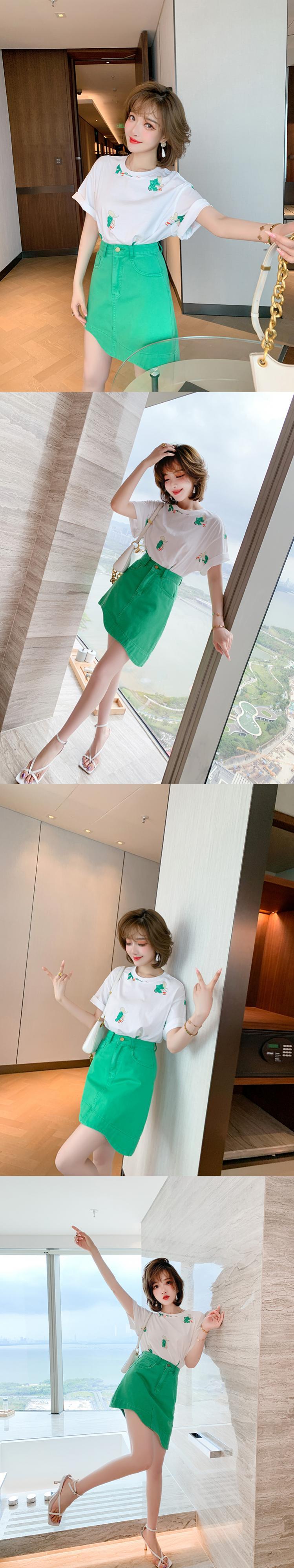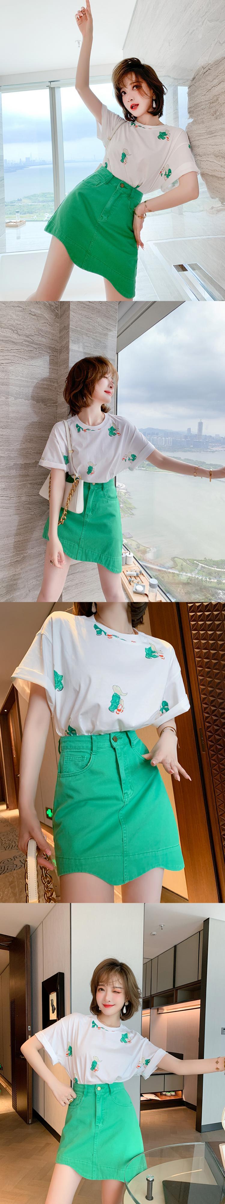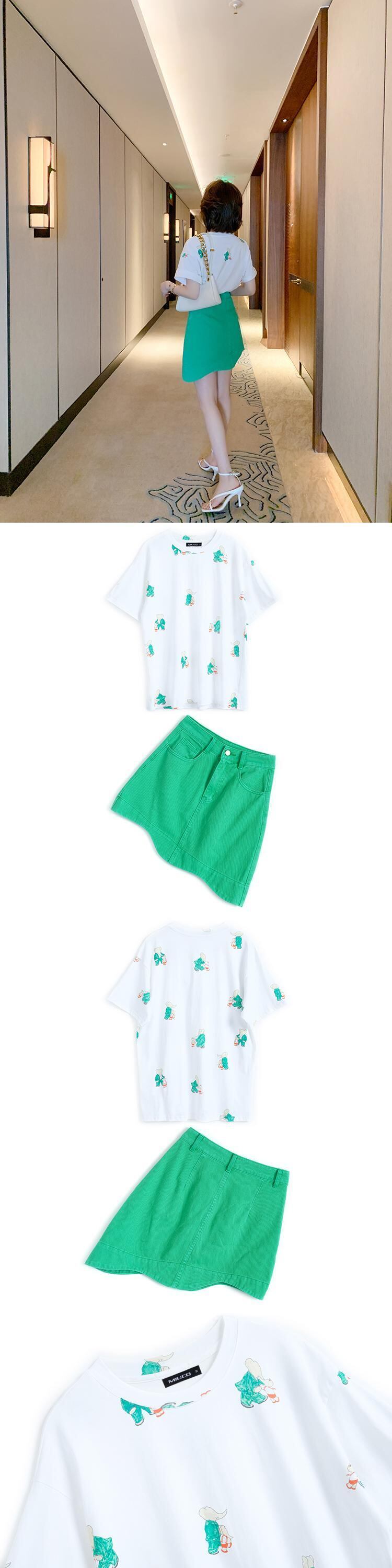 プリント柄ルーズTシャツ ハイウェストウェストAラインスカート サマー 夏物 MIUCO83217241695