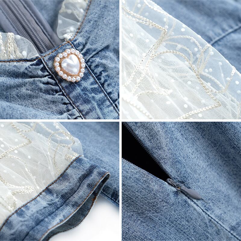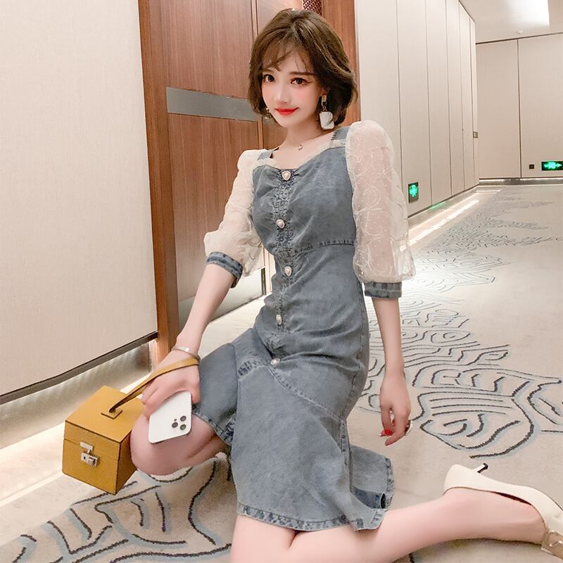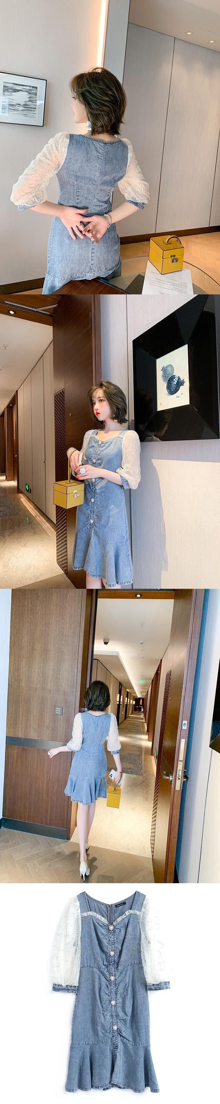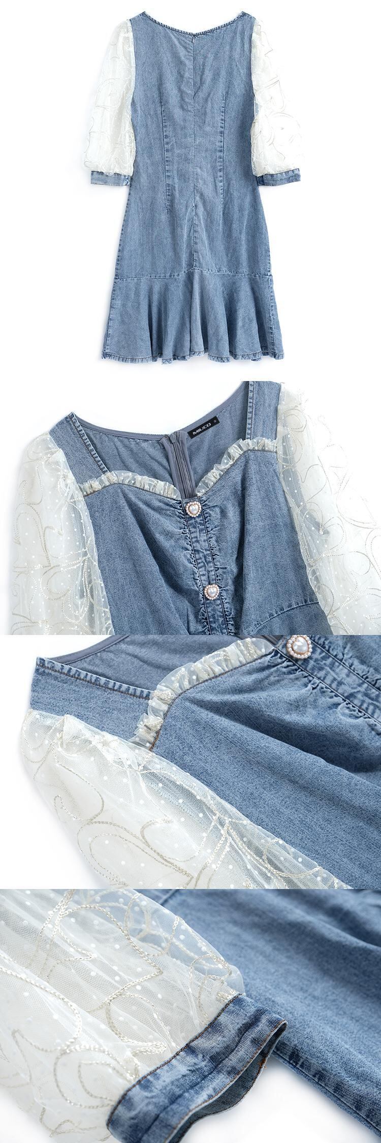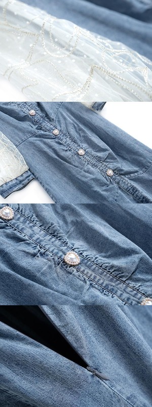 水玉メッシュスリーブドレス スプリングサマー 春物 夏物 ステッチ MIUCO60919582403