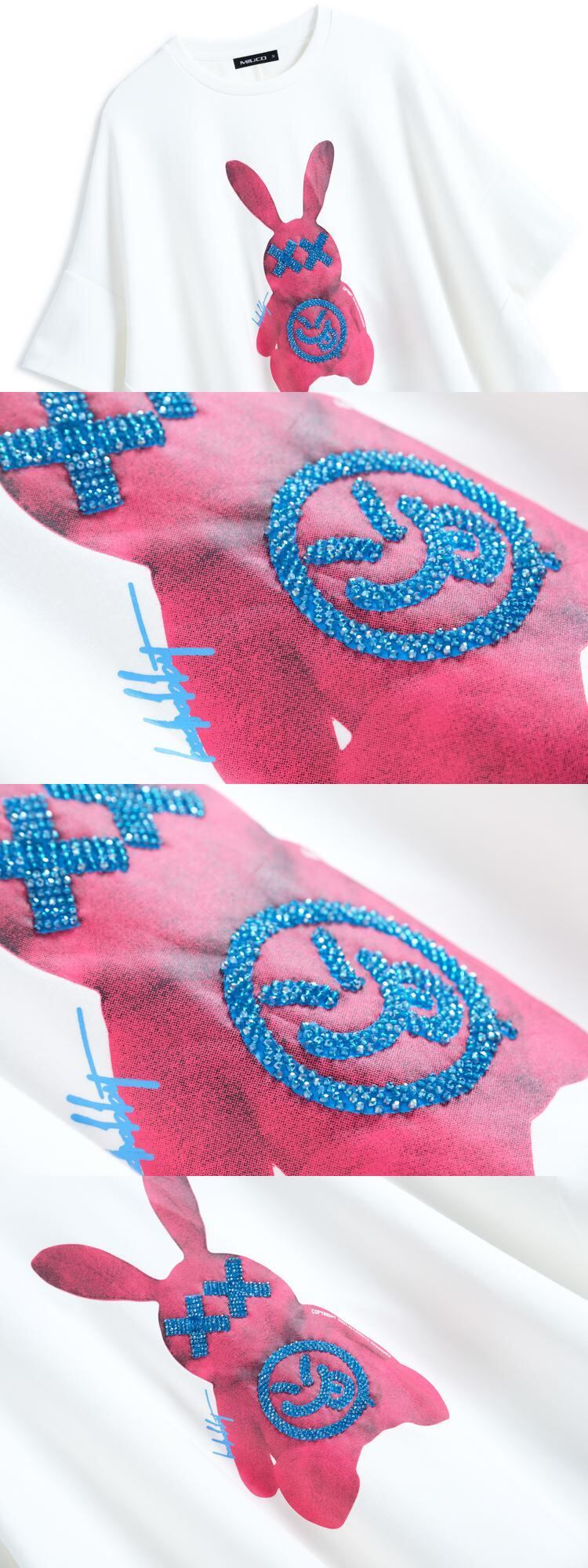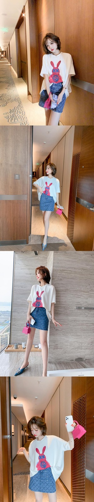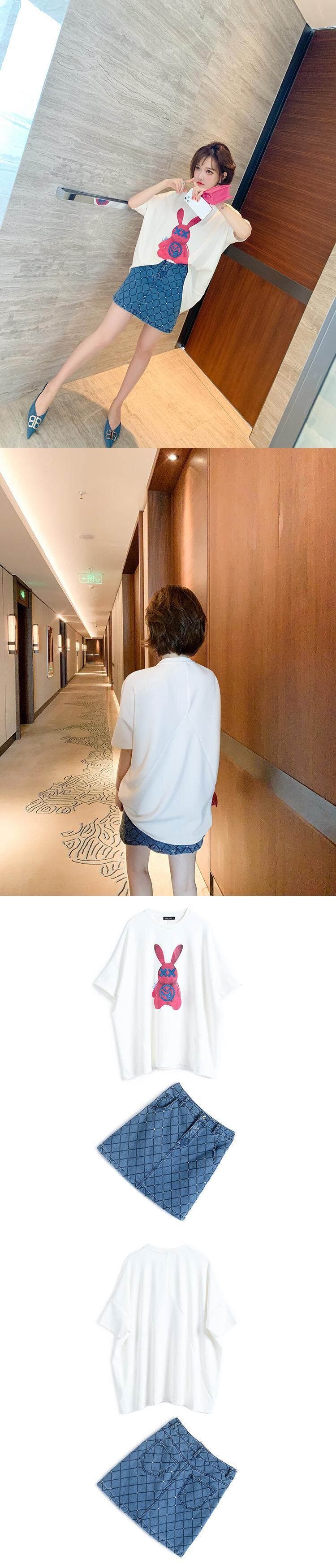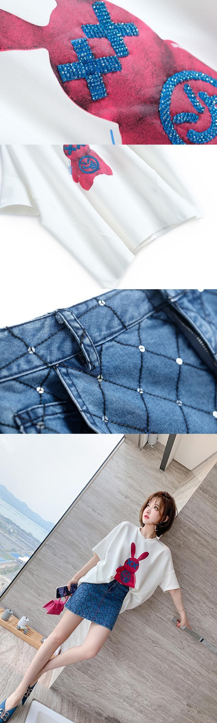 ラインストーンプリント柄Tシャツ スカート スプリングサマー 春物 夏物 MIUCO66326396085