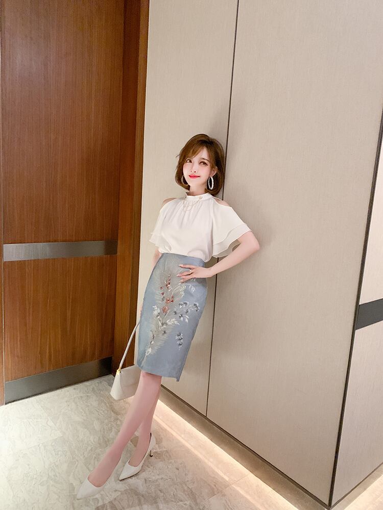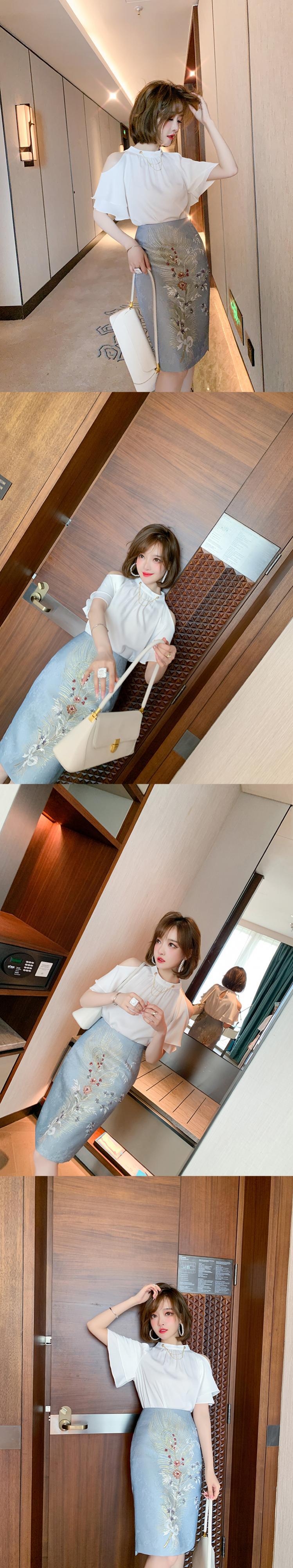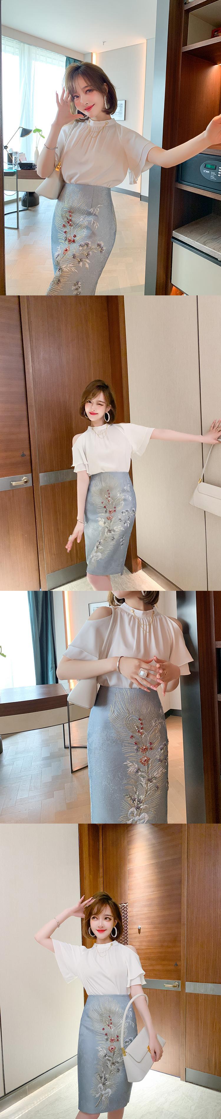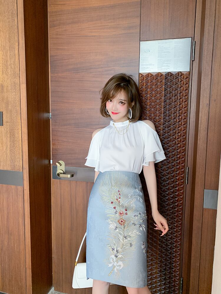 スタイルスリーブチェーン シャツ サマー 夏物 オフショルダー MIUCO31599752627