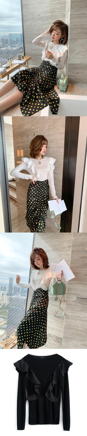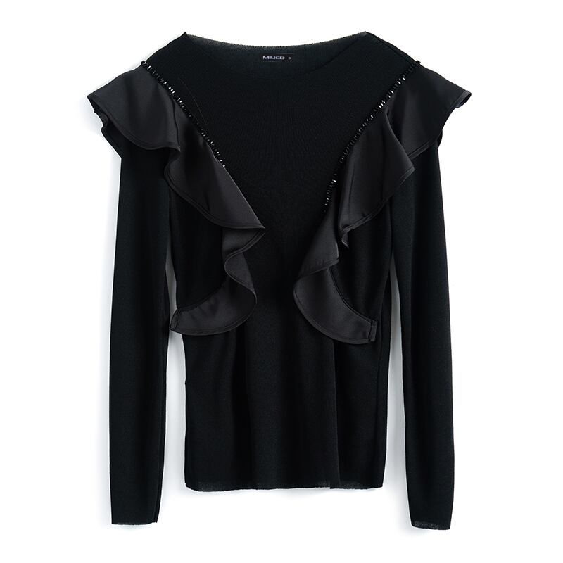 レースラウンドネックシャツ トップス スプリング 春物 Oネック ステッチ MIUCO97055042013