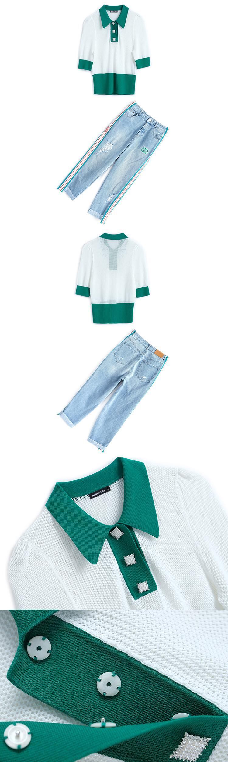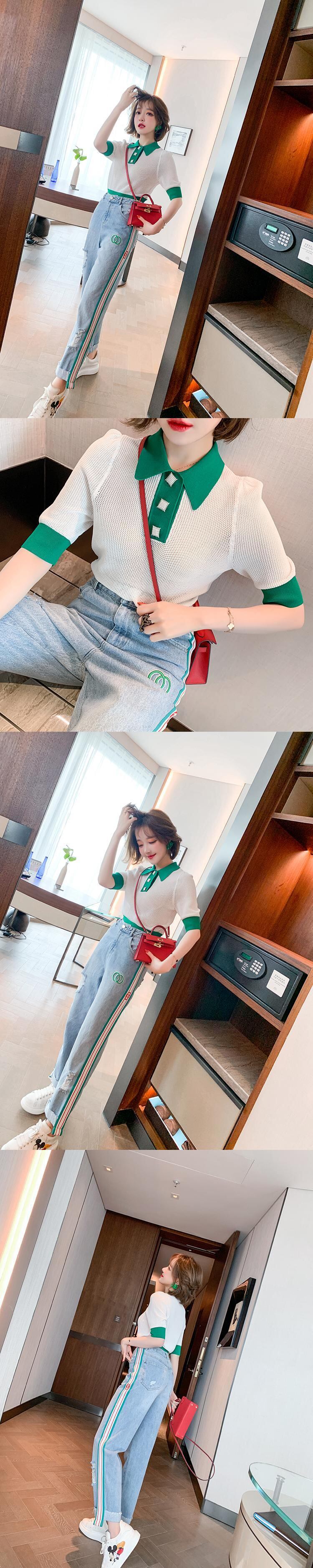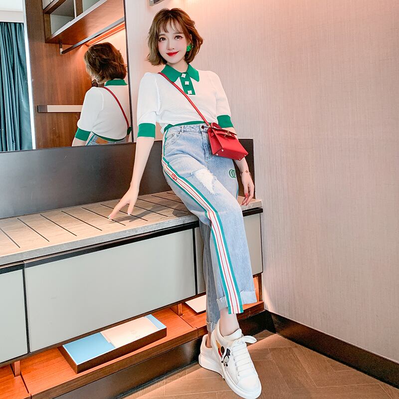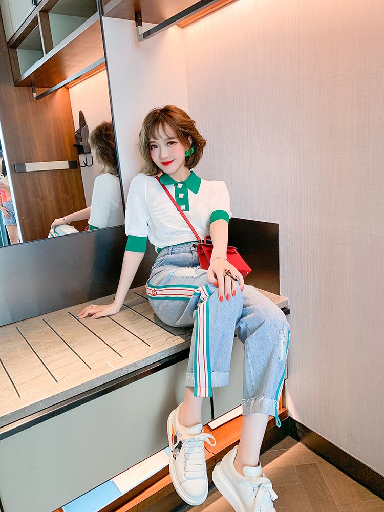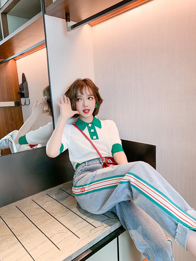 ニット半袖スリーブトップス ジーンズ スプリング ショート ハーフスリーブ 春物 MIUCO1445753488