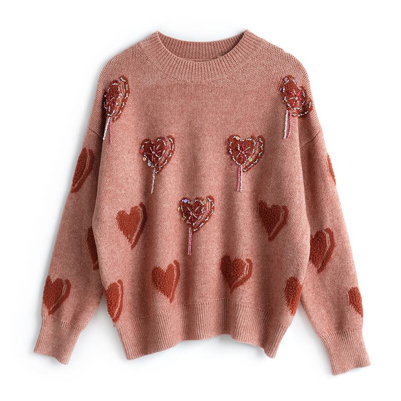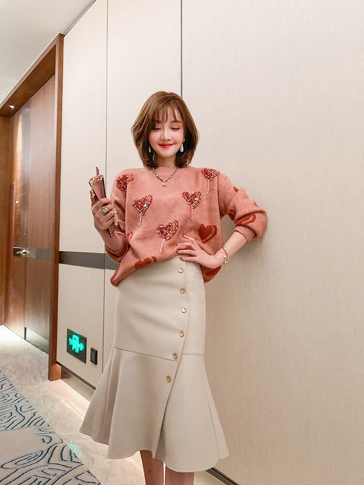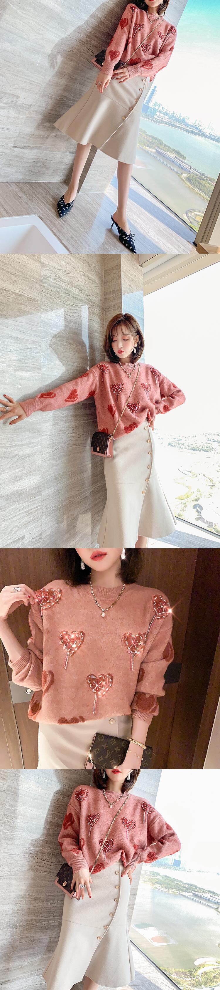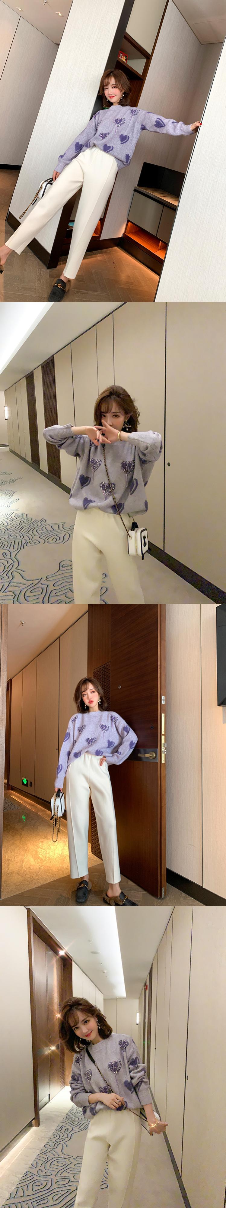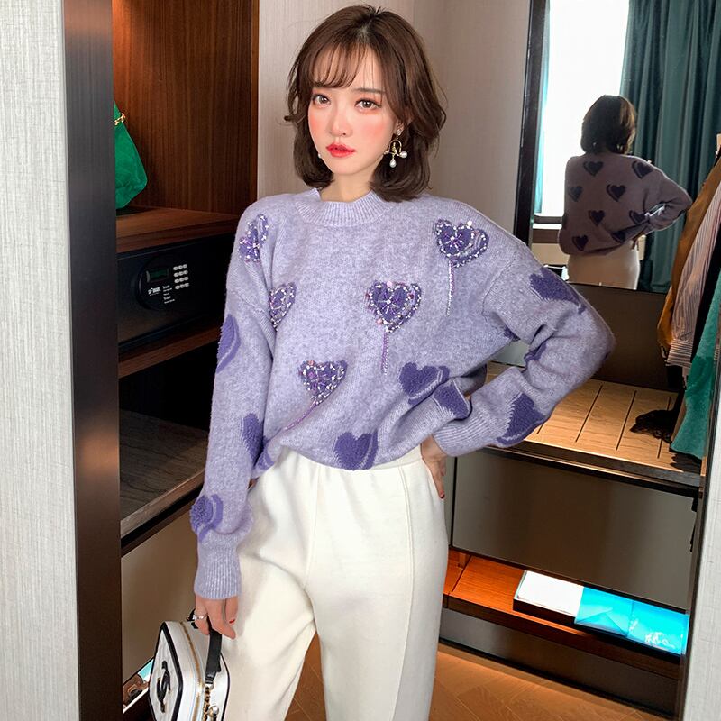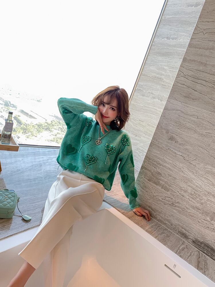 ラウンドネック長袖スリーブスタイルルーズセーター レディース ロング Oネック MIUCO14380682287