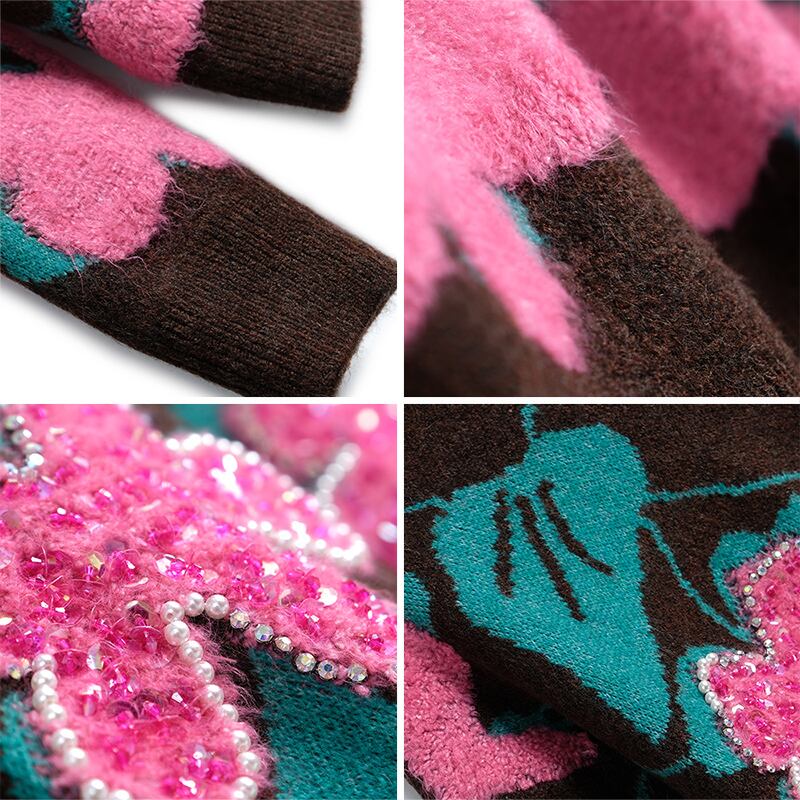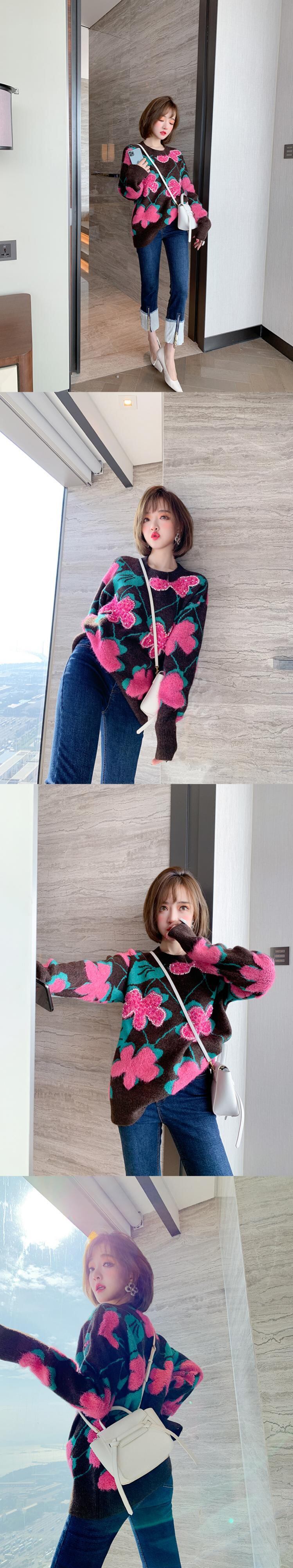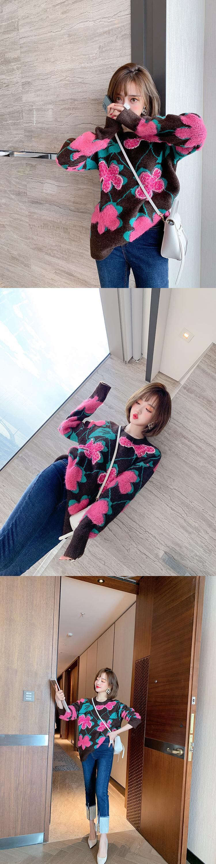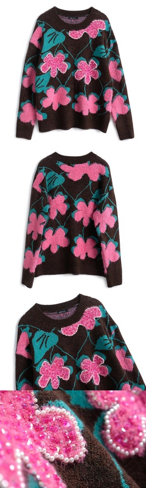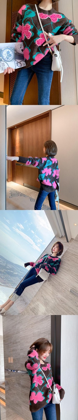 ラウンドネックジャカードルーズセーター スプリング 春物 Oネック MIUCO14384872868