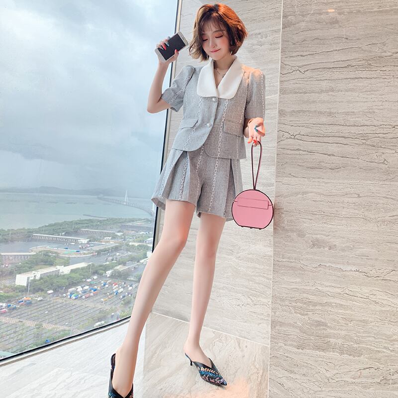 ジャカードカラージャケット ウェストプリーツワイドレッグショーツ セット オータム 秋物 ブルマー ワイドパンツ MIUCO99717637778