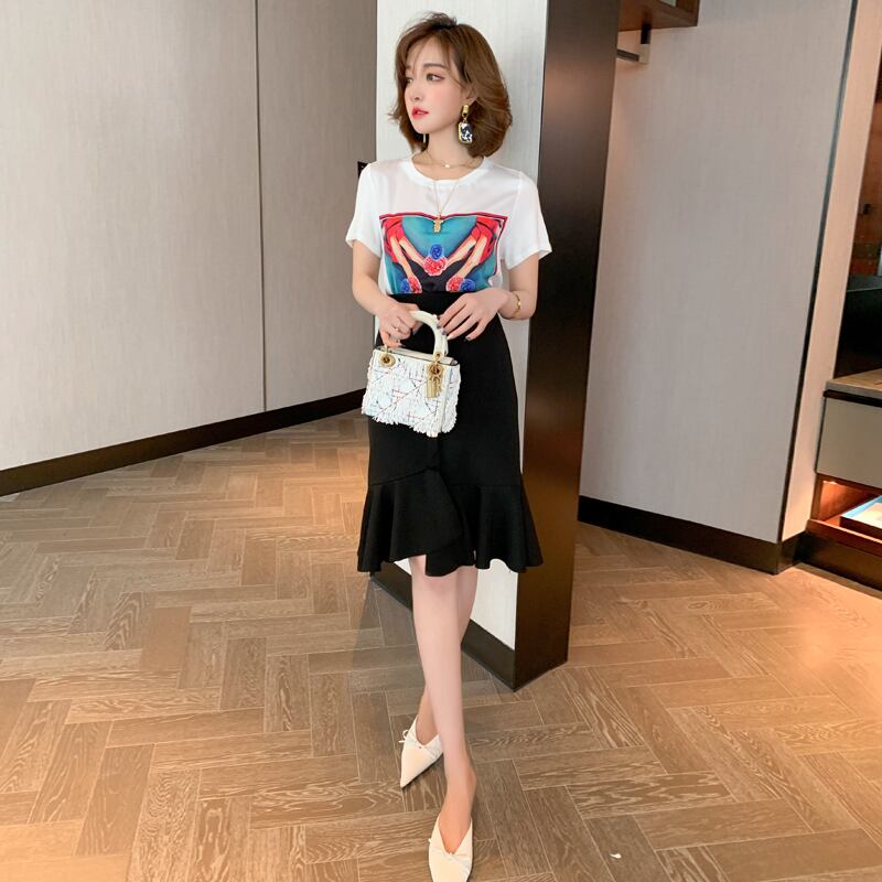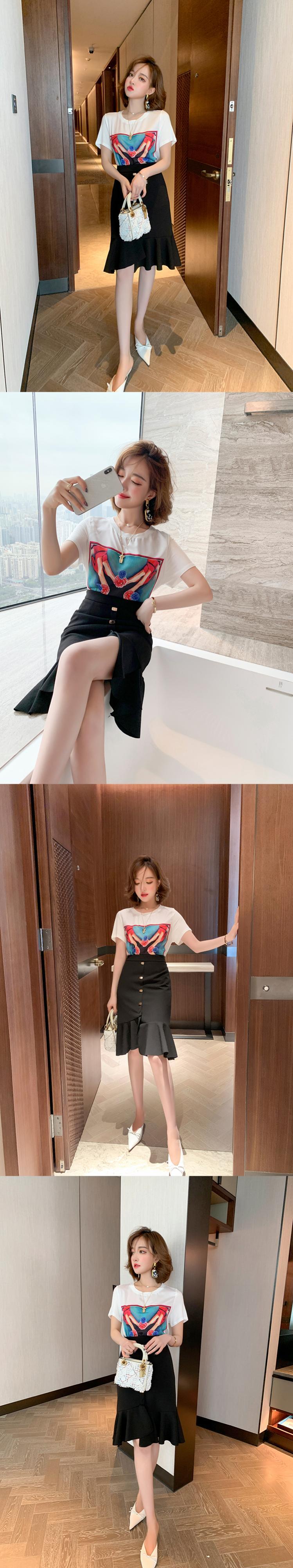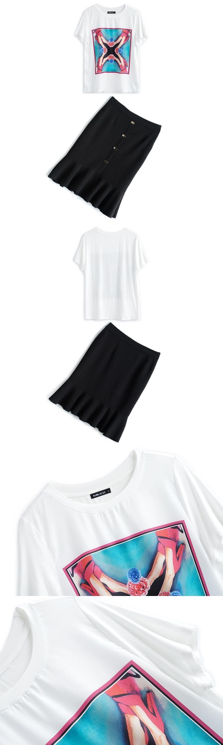 ラウンドネックプリントTシャツ スカート スプリング 春物 Oネック MIUCO35123498318