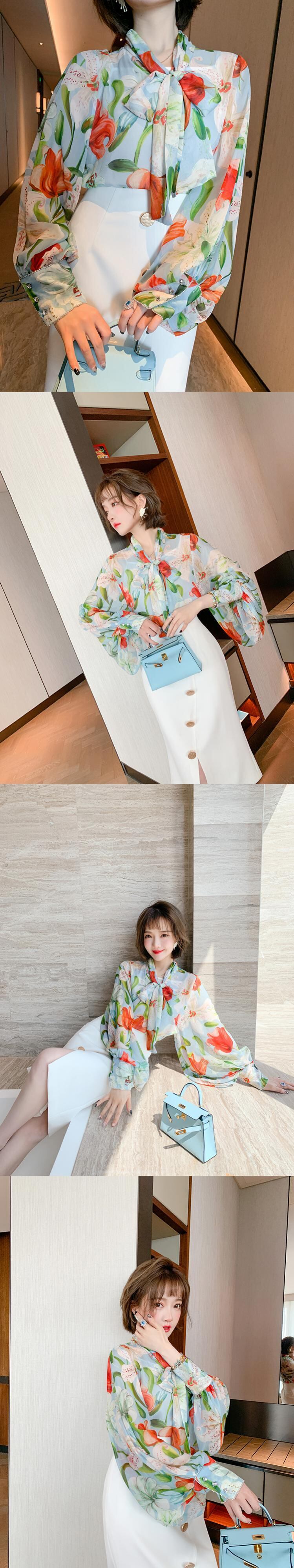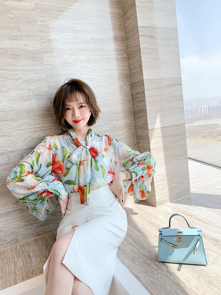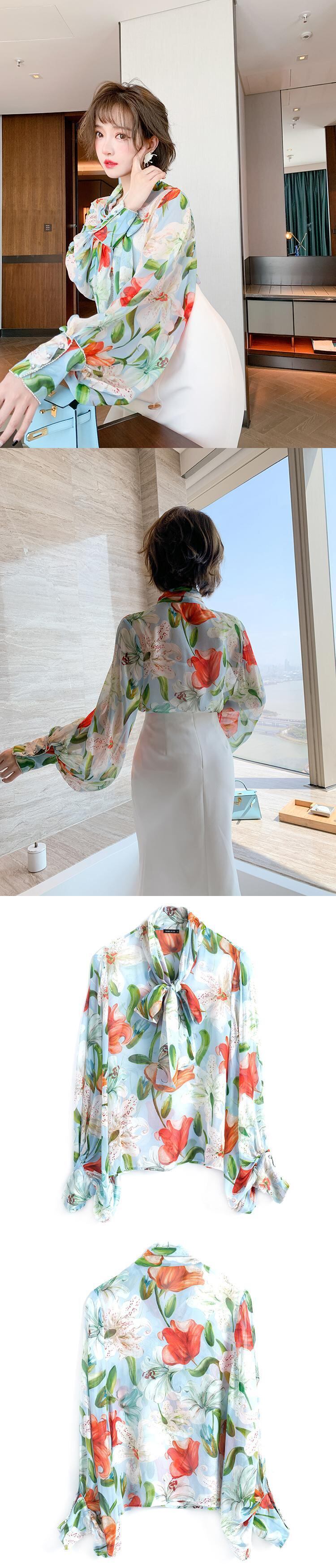 プリント柄カラーシャツ スプリング ランタンスリーブ 春物 MIUCO98998993975