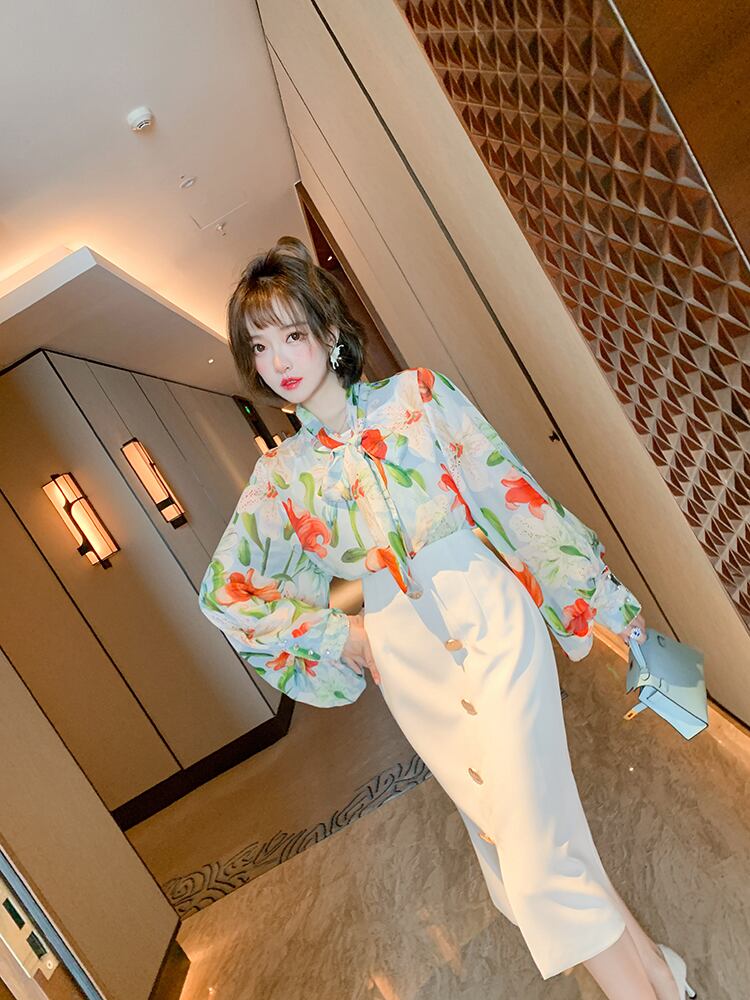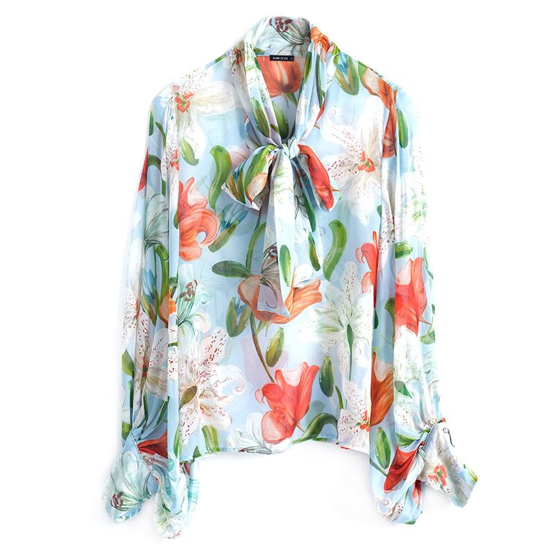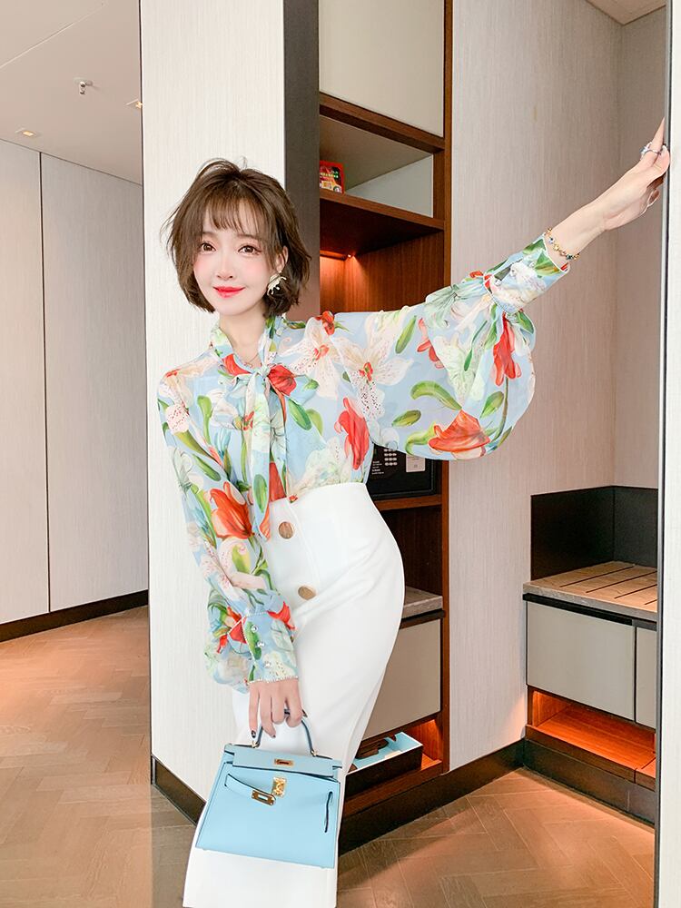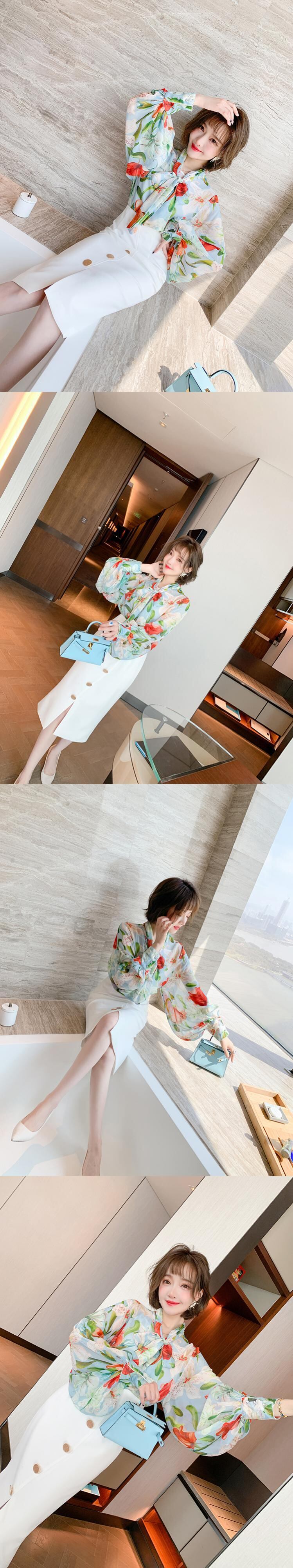 プリント柄カラーシャツ スプリング ランタンスリーブ 春物 MIUCO98998993975