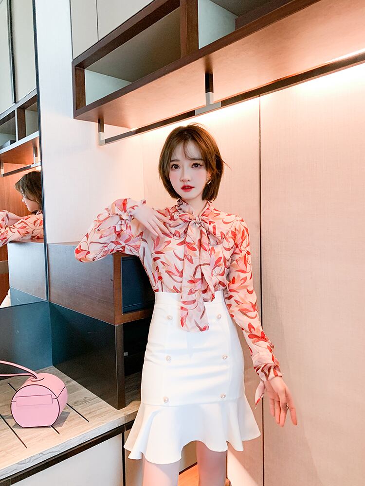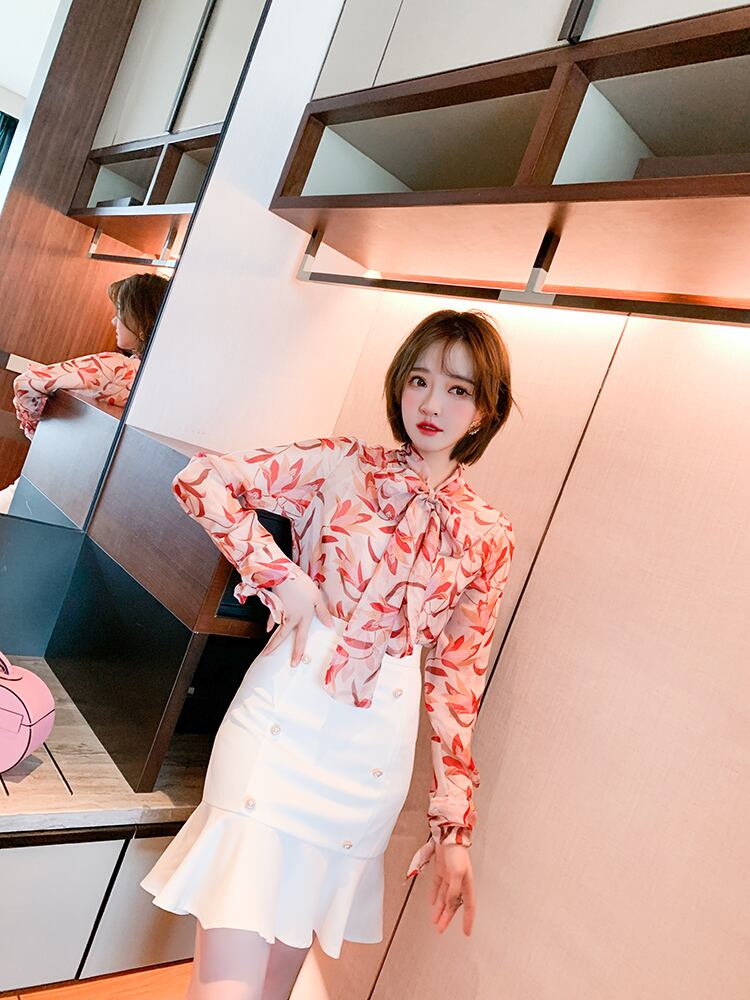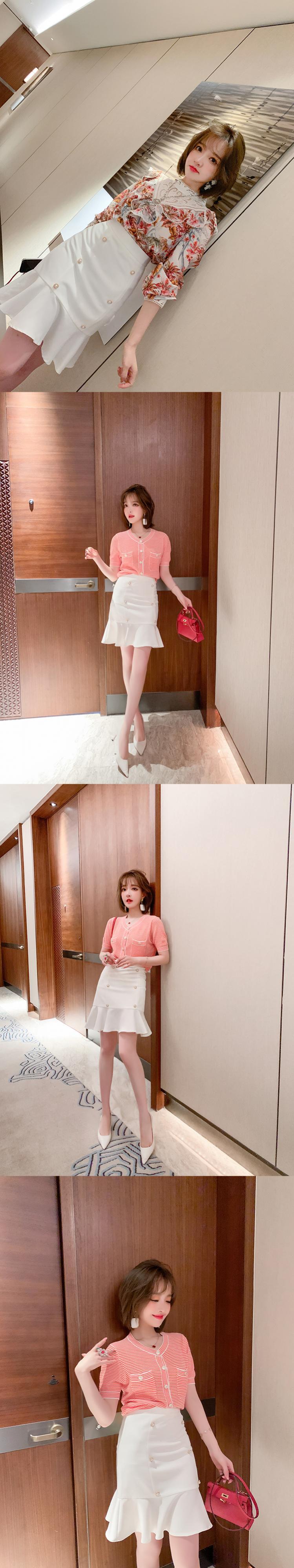 ハイウェストウェストスリムダブルブレストレースソリッド カラースカート スプリング 春物 ソリッドカラー ステッチ MIUCO49028233380