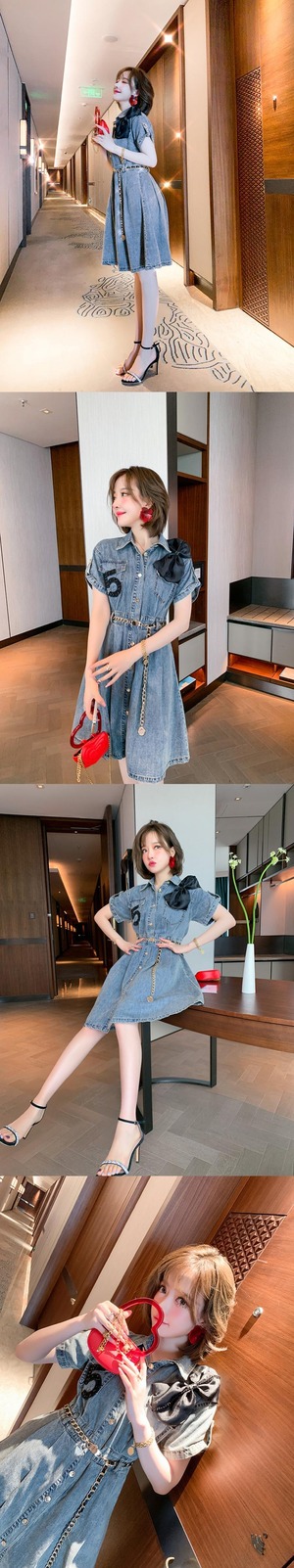 リボンチェーン ウェストドレス サマースタイル 夏物 MIUCO23959819650