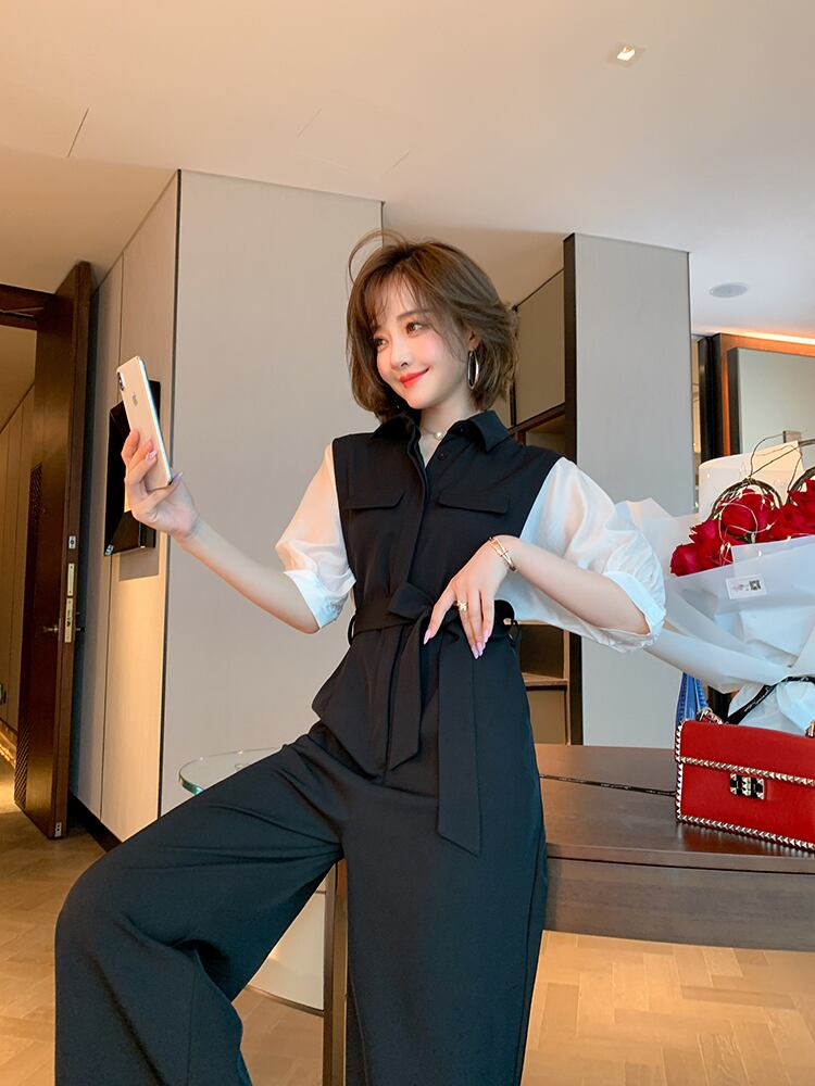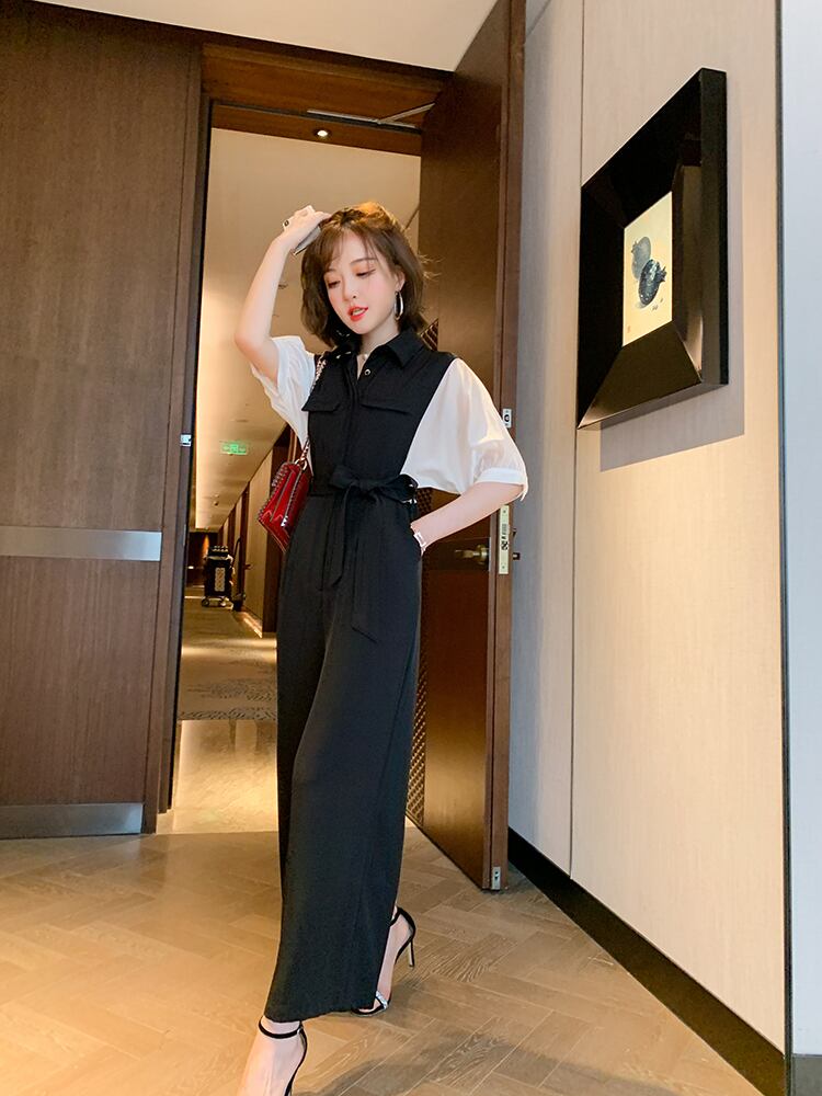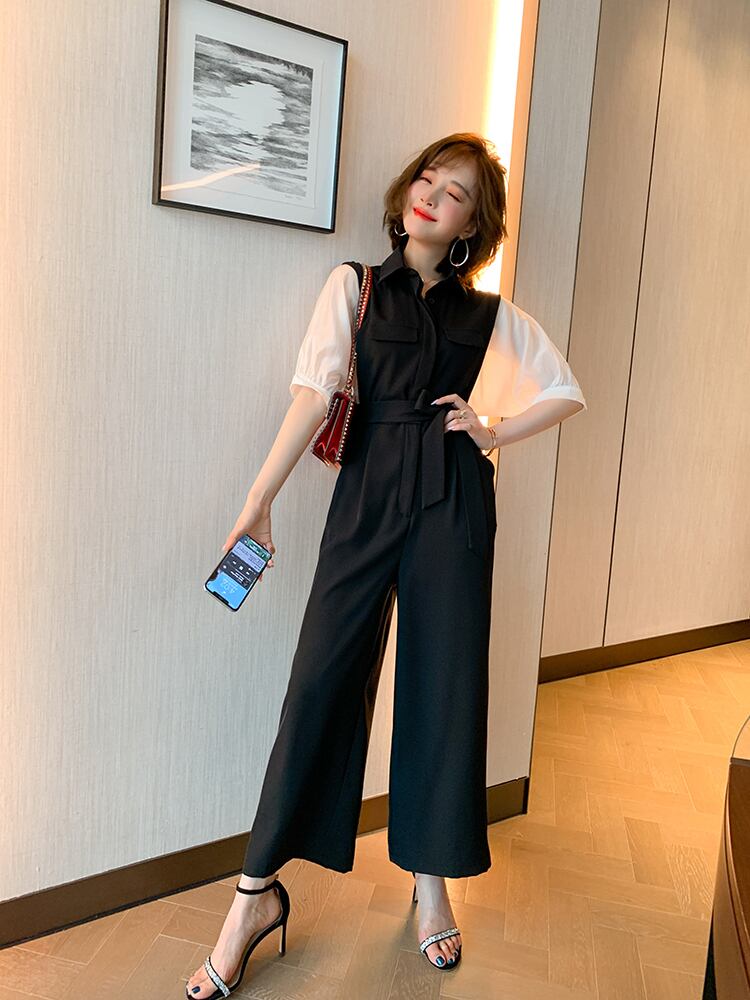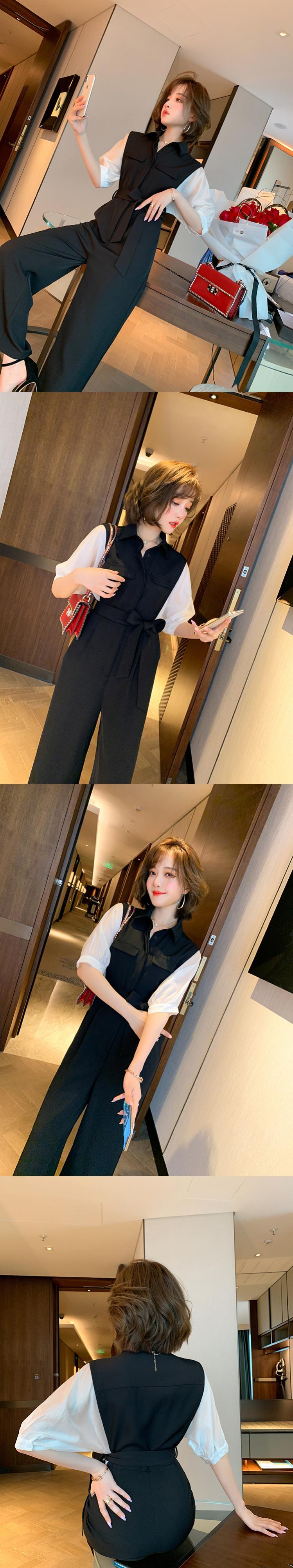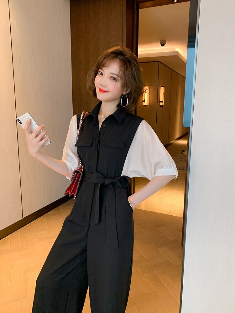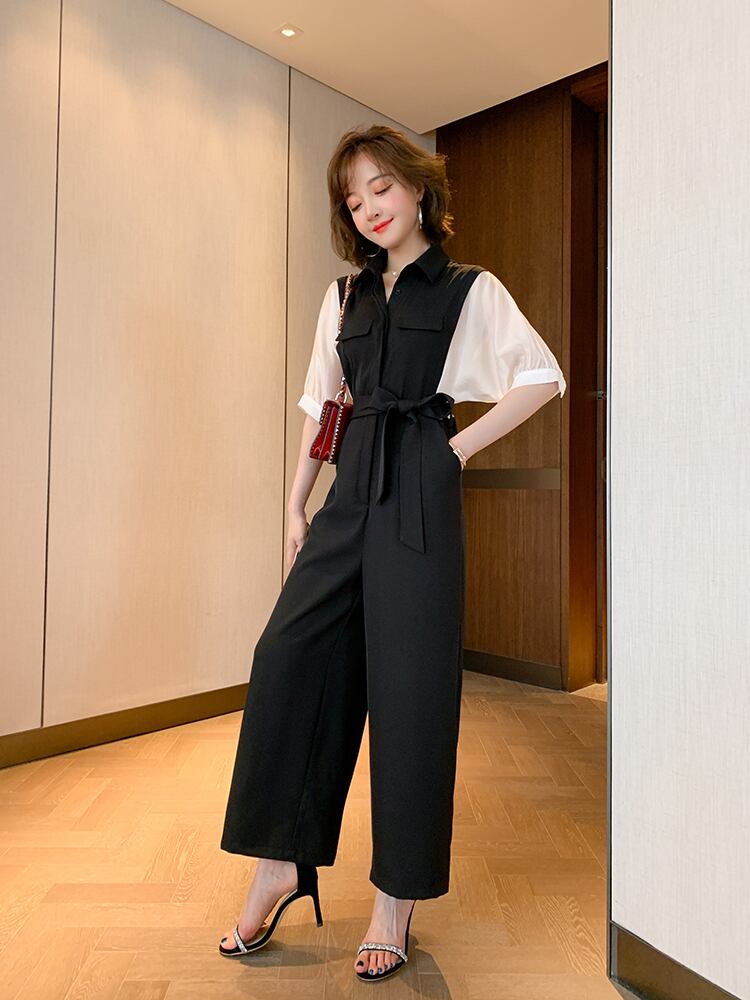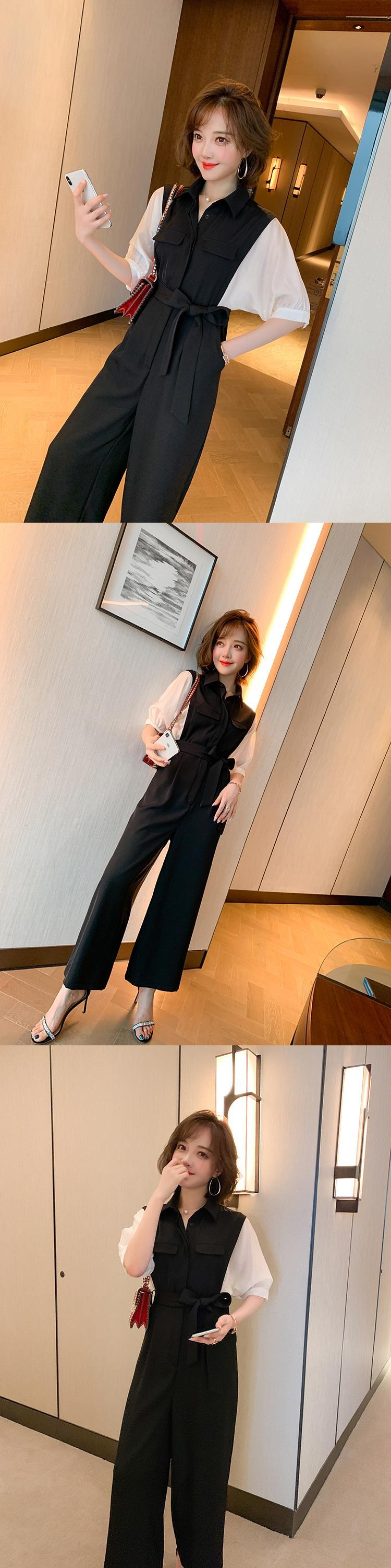 スリーブウェストルーズジャンプスーツ オールインワン ランタンスリーブ スプリング 春物 サマー 夏物 ステッチ MIUCO15872331176