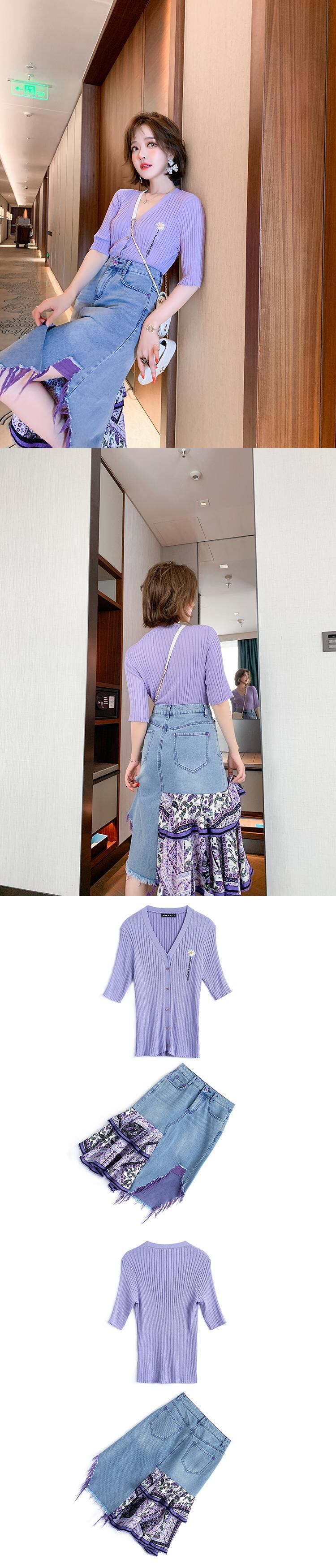 スリムニットカーディガンスカート スプリング レッド 刺繍 春物 ステッチ MIUCO52708635016