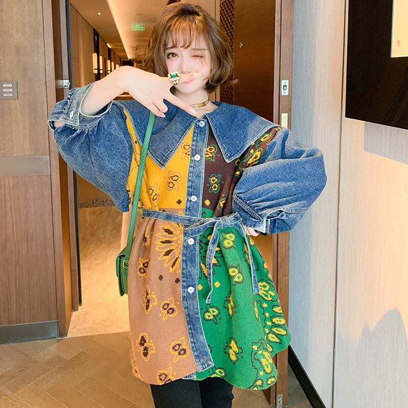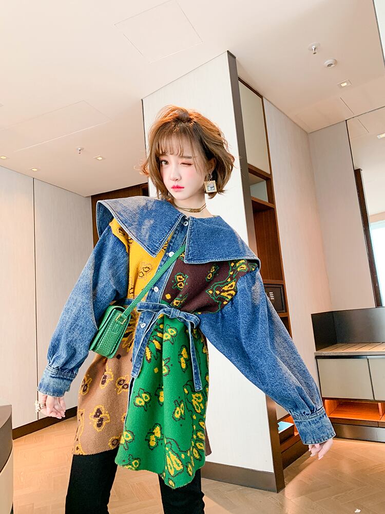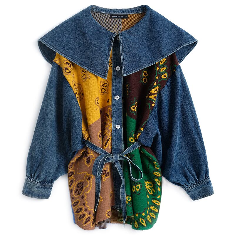 ジャカードニットネイビーウェストジャケット オータムウィンター 秋物 冬物 ステッチ MIUCO41452070102