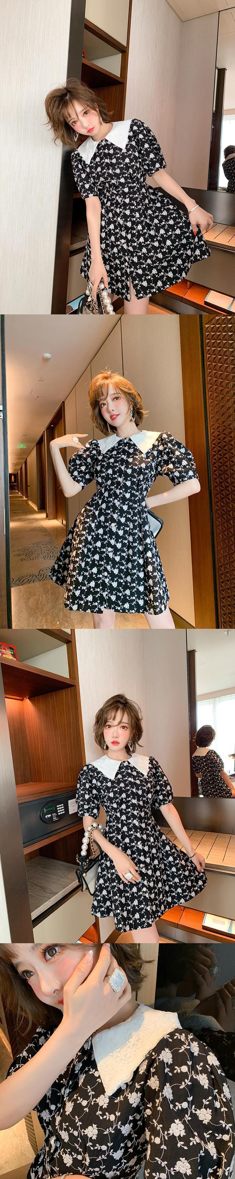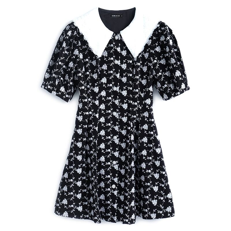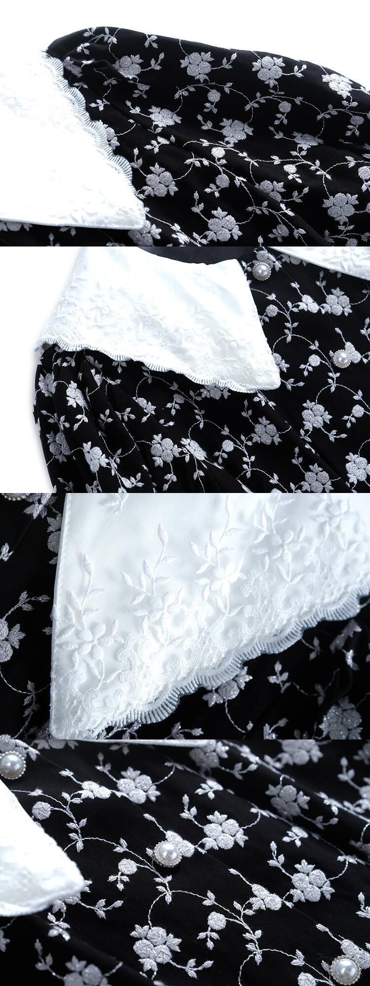 Flowerデザイン 刺繍カラーウェストパールボタンドレス スプリング 春物 真珠 フラワーデザイン MIUCO45085239035