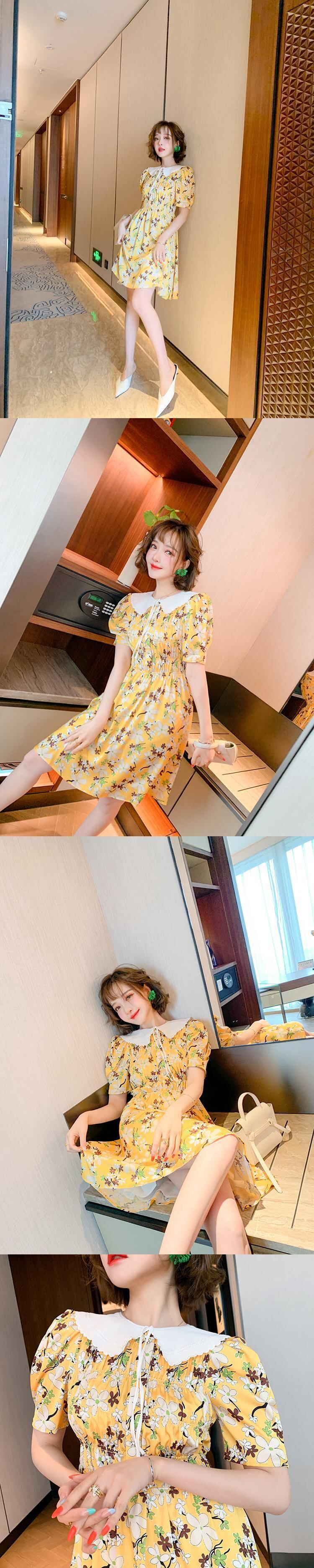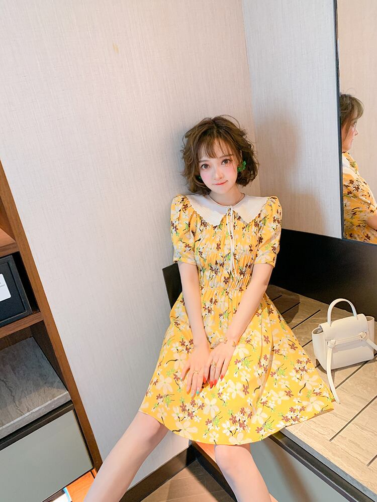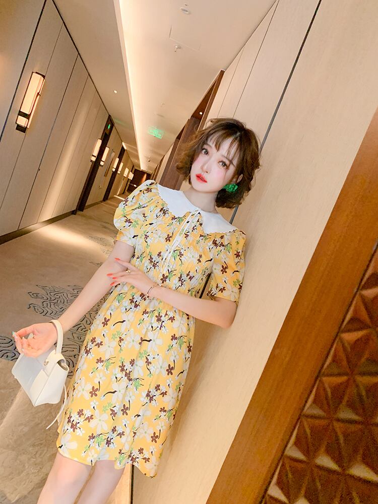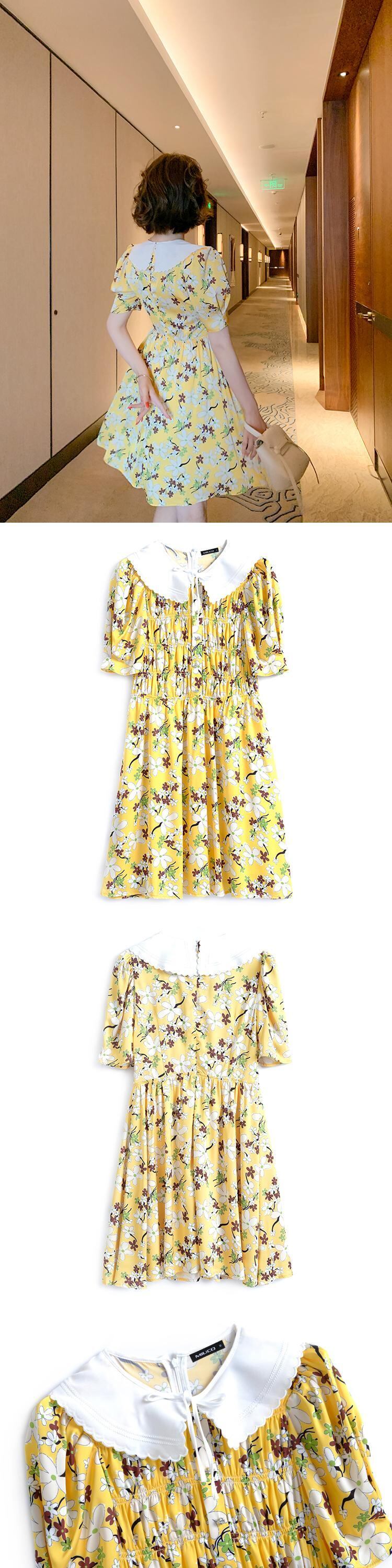 カラーレーススリーブウェストプリントドレス スプリング レッド 刺繍 春物 MIUCO82694432721