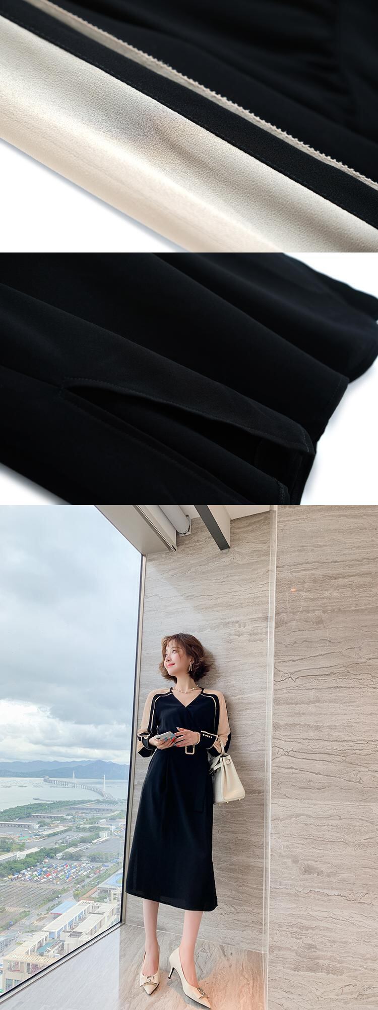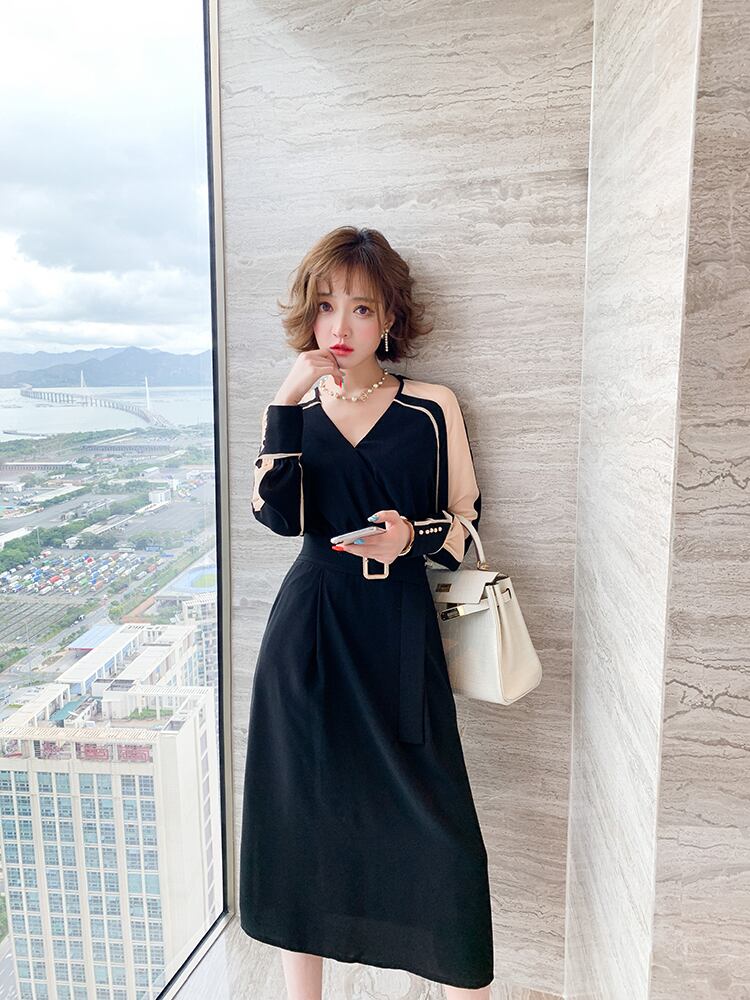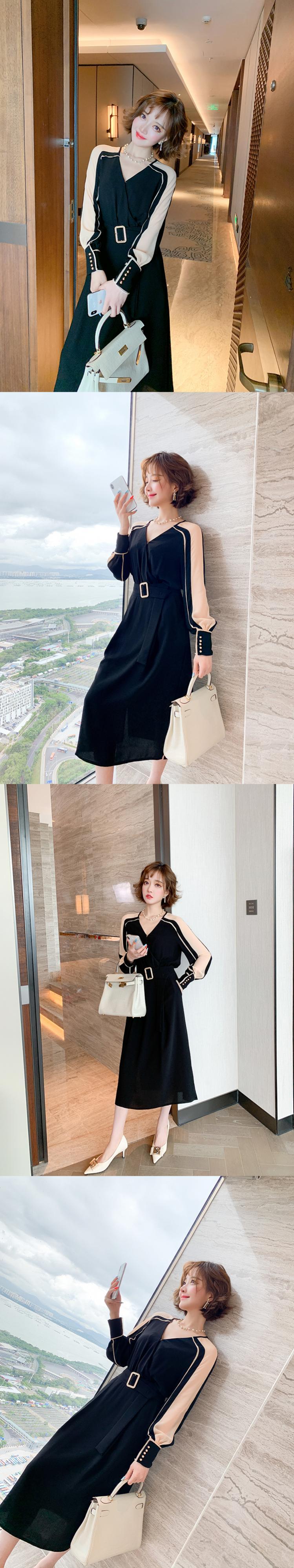 カラーストライプベルト ウェストドレス スプリング 春物 ハーネス ステッチ MIUCO69610712219