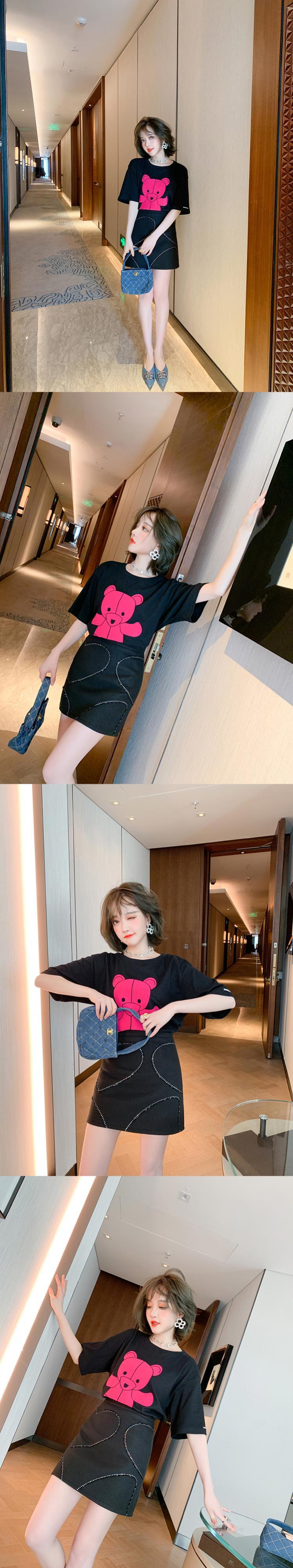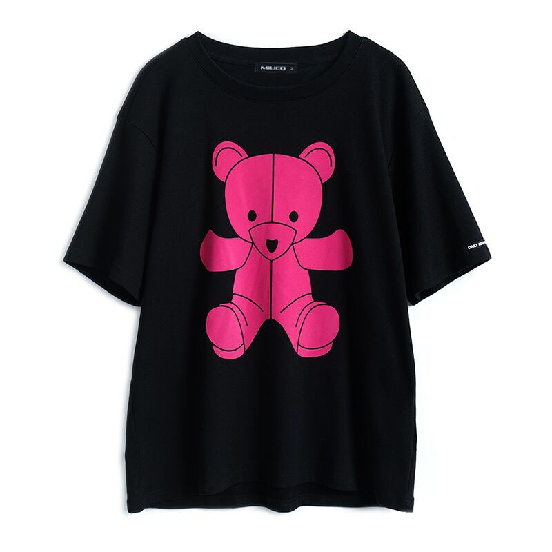 プリント柄ラウンドネックTシャツ トップス スプリングスタイル 春物 Oネック MIUCO70163510301