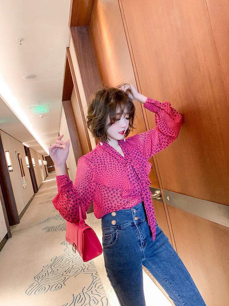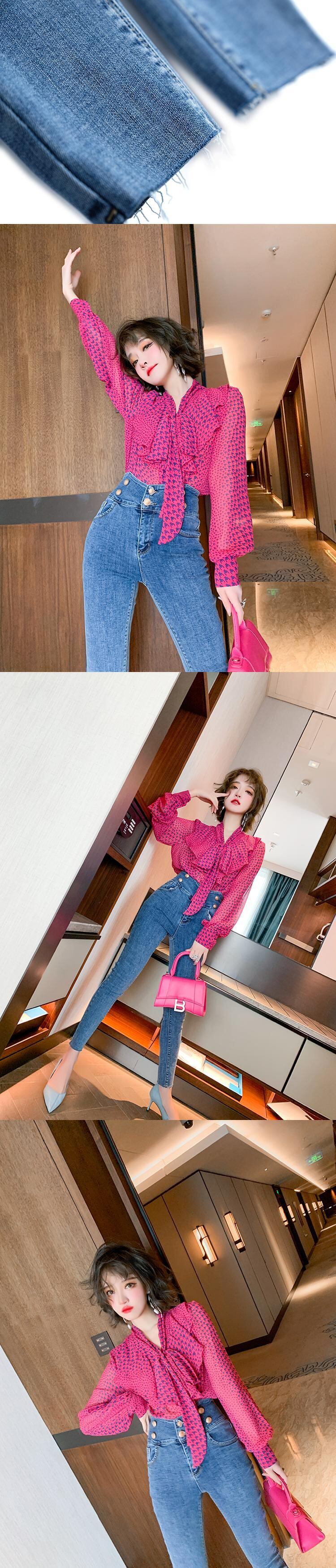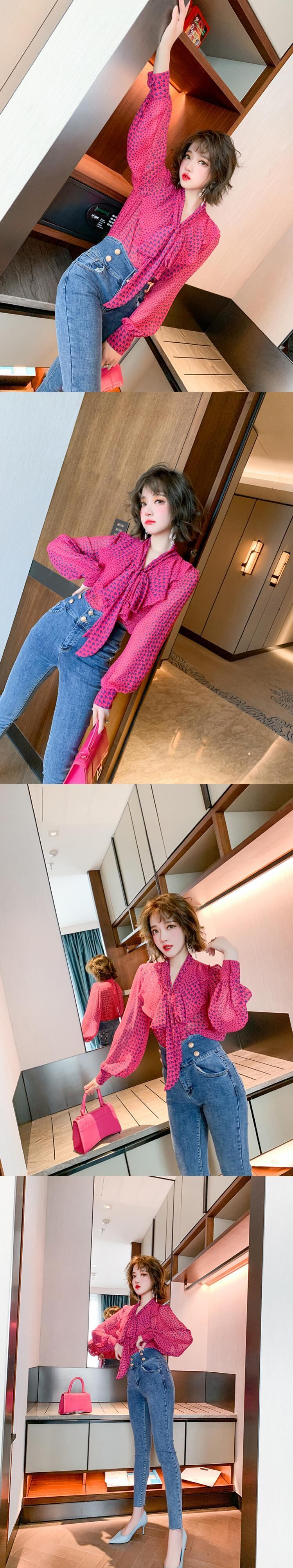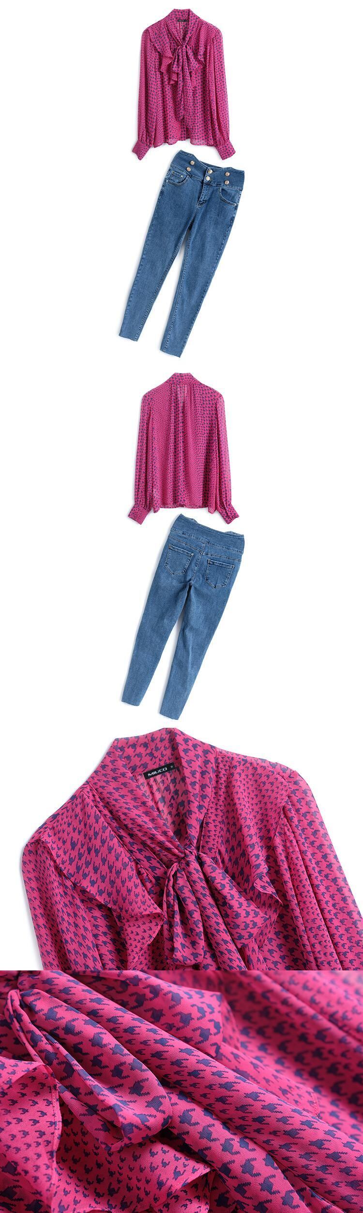 プリントシャツ ジーンズ スプリング リボン レース 春物 レースアップ MIUCO60481262854