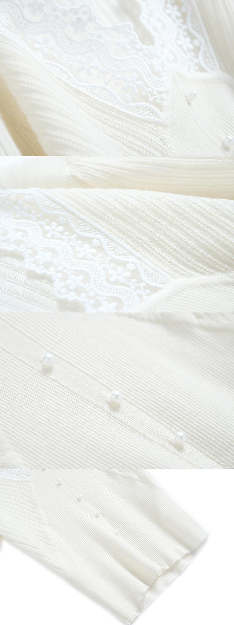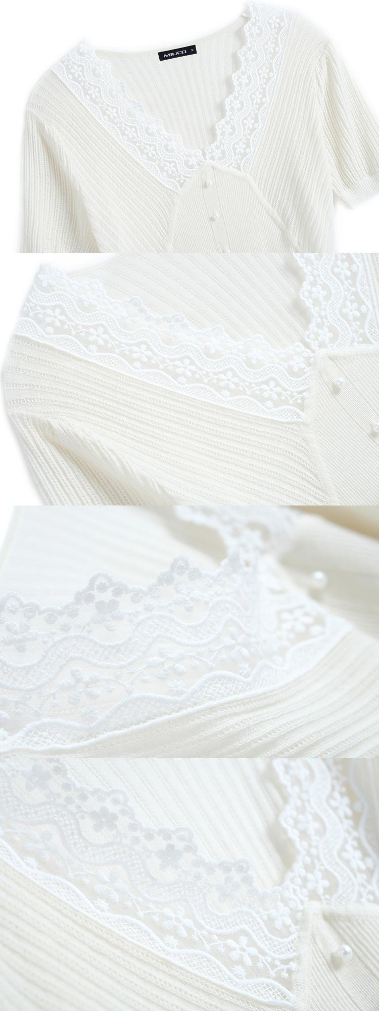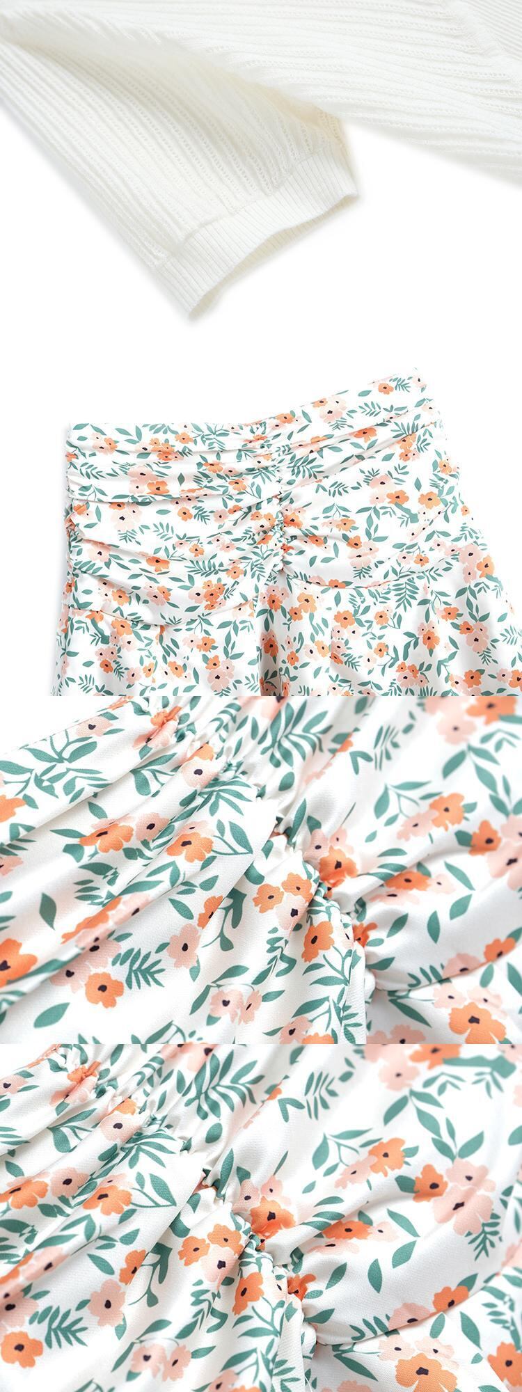 レースVネックボタンセーター ハイウェストウェストプリーツフローラルスカート スプリングサマー 春物 夏物 花柄 MIUCO9064375160