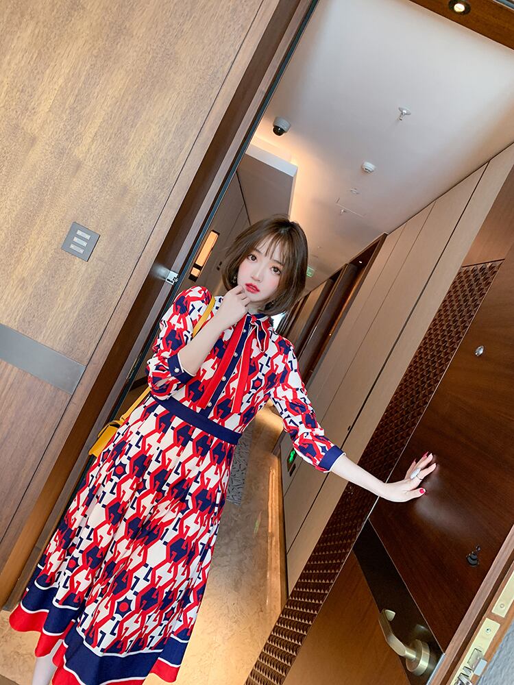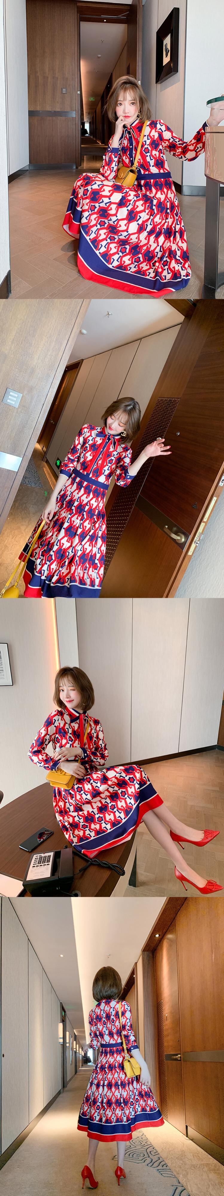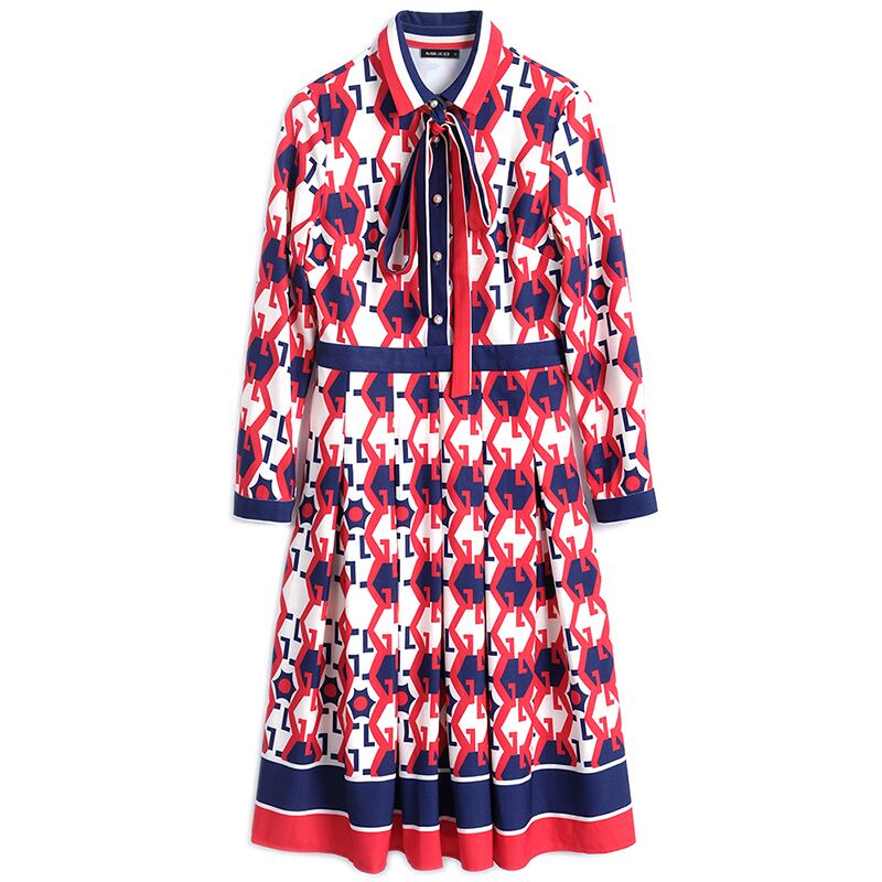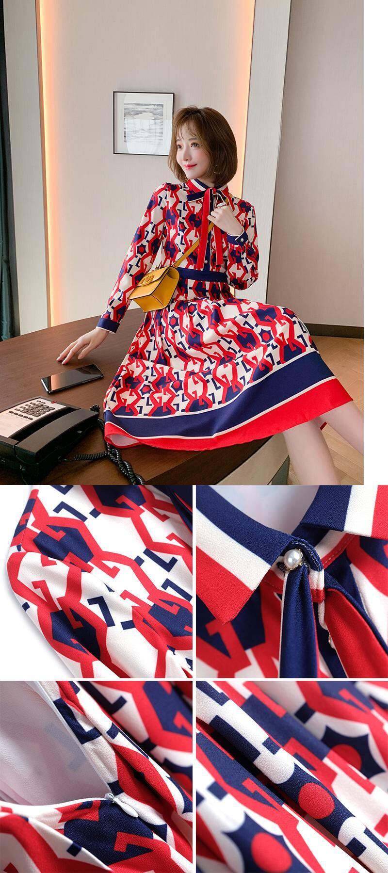 プリントリボンハイウェストウェストシャツ ドレス スプリング 春物 MIUCO69946452454
