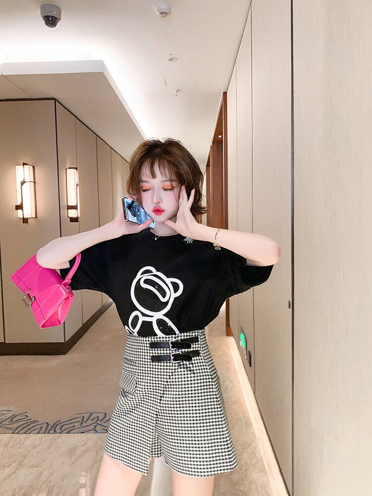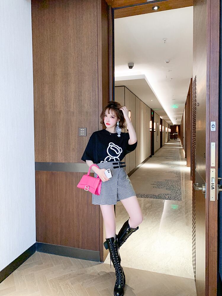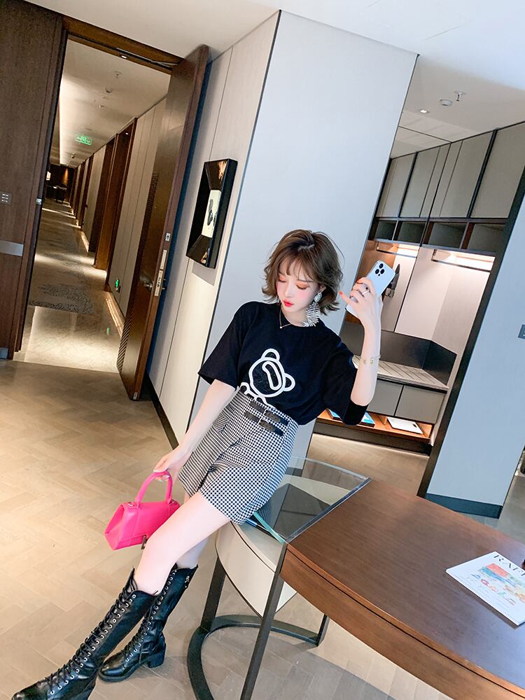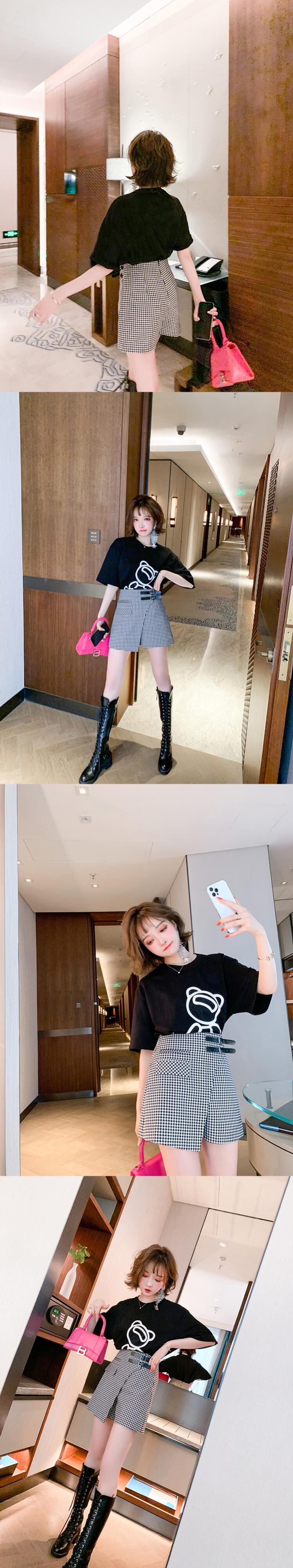 カジュアルラウンドネックTシャツ ハイウェストウェストスカート パンツ スプリング 春物 Oネック MIUCO58672778796