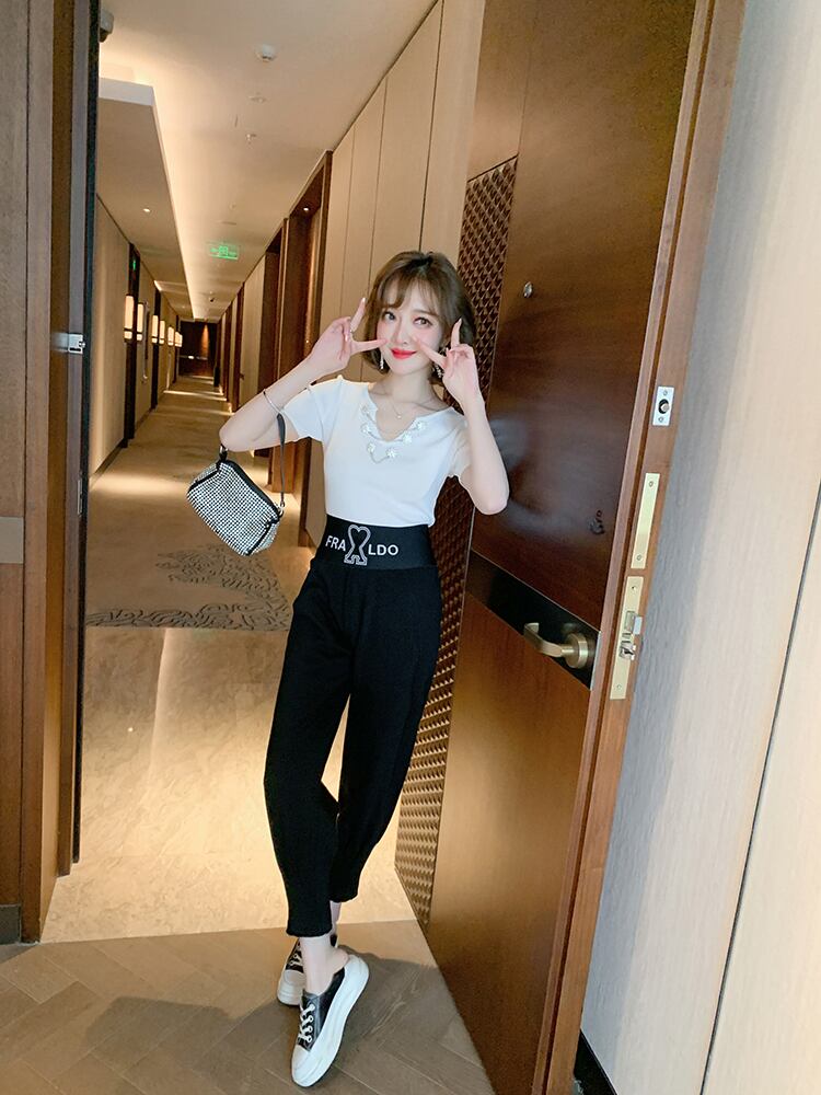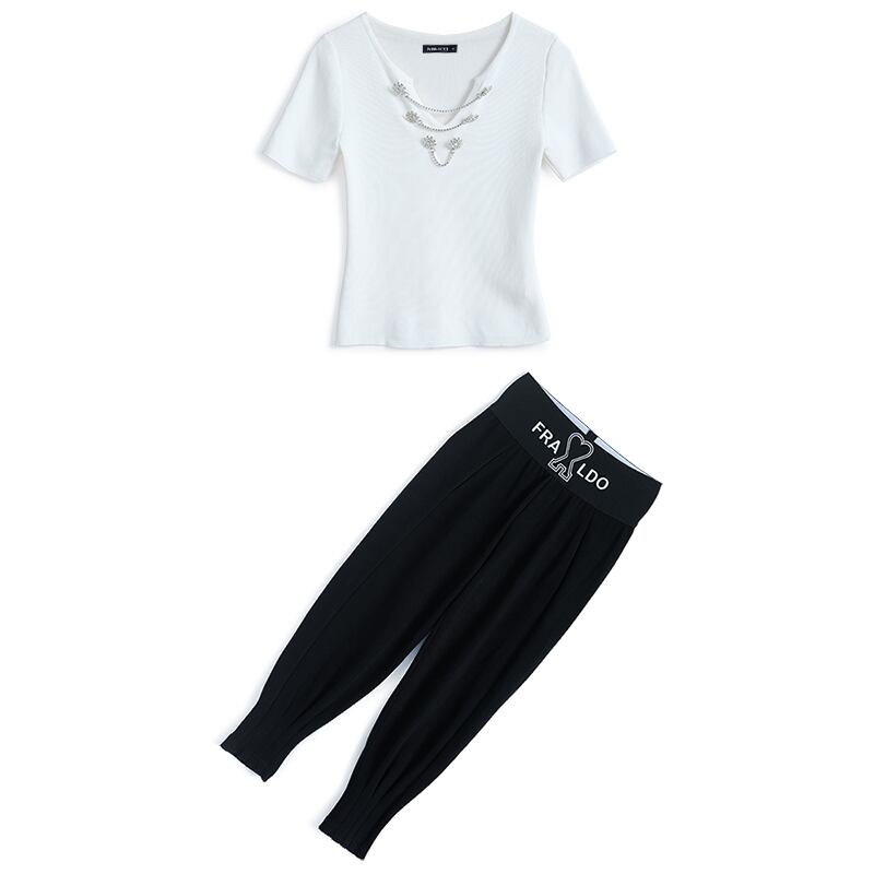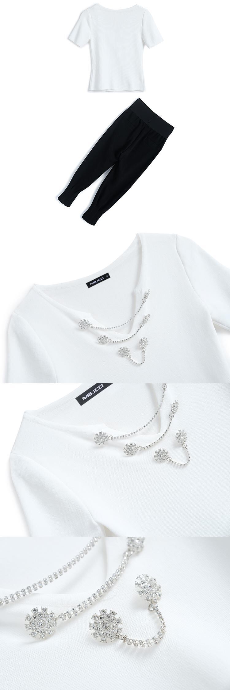 ボタンチェーン ニットTシャツ ウェスト薄手パンツ サマー 夏物 MIUCO28814913839
