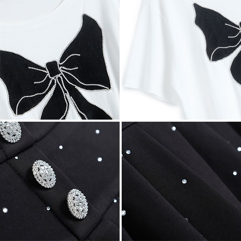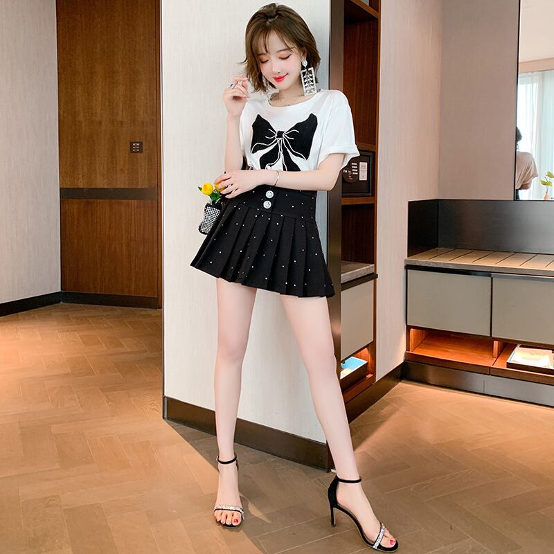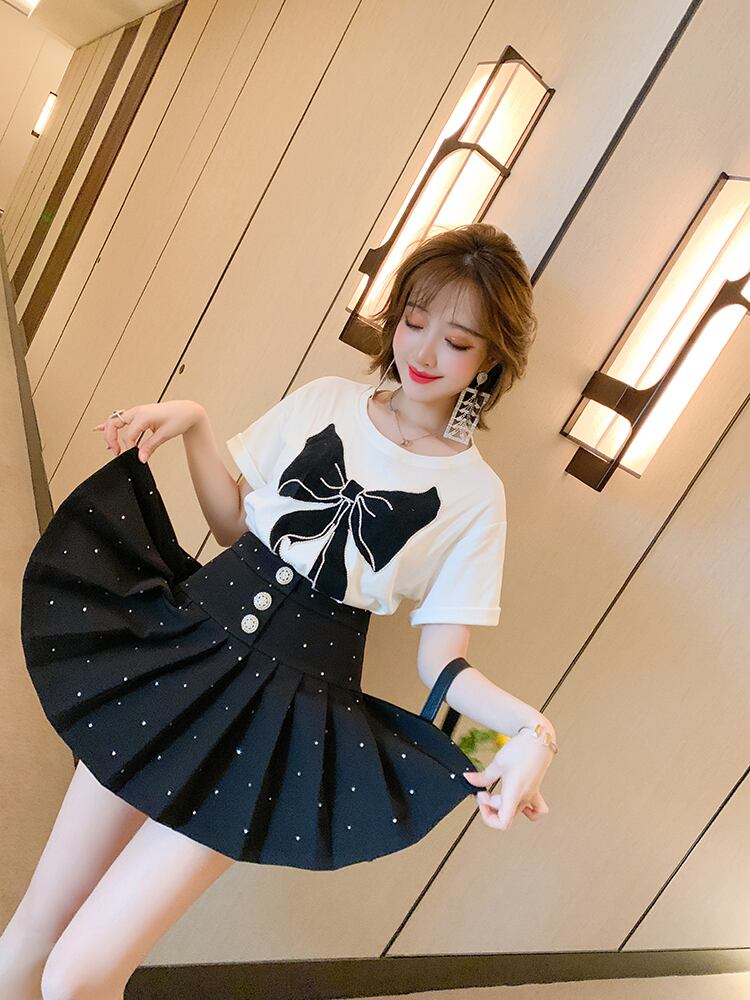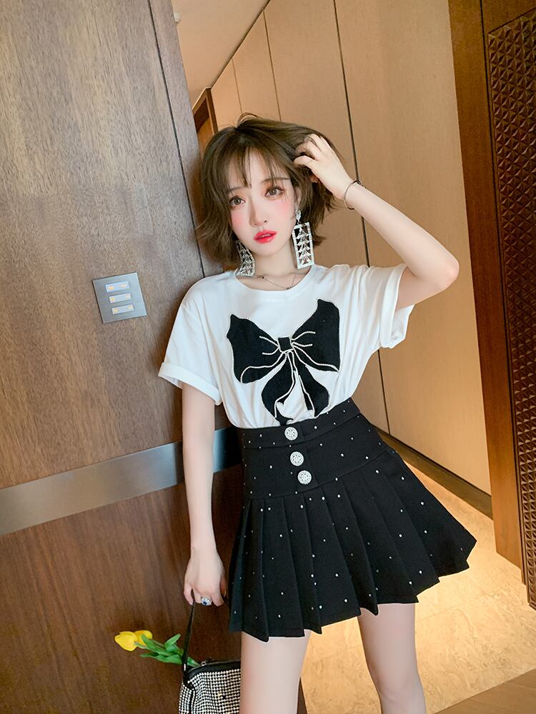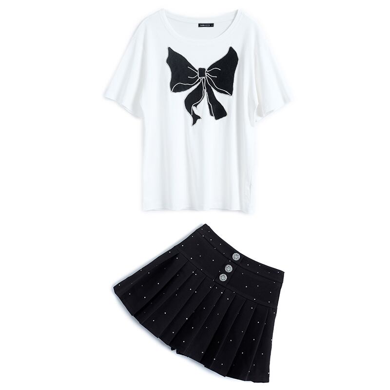 リボンラウンドネックTシャツ プリーツスカート サマースタイル 夏物 Oネック MIUCO86624695067