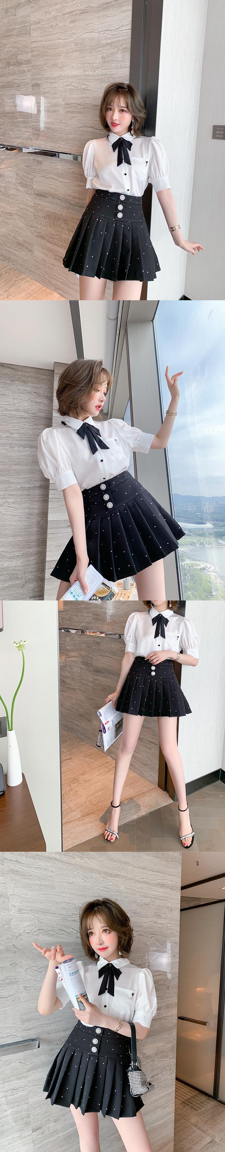 スタイルカラーリボンソリッド シャツ サマー レース 夏物 ソリッドカラー MIUCO68280370292