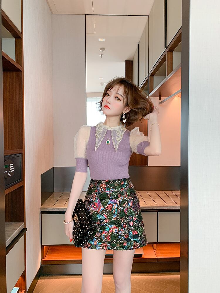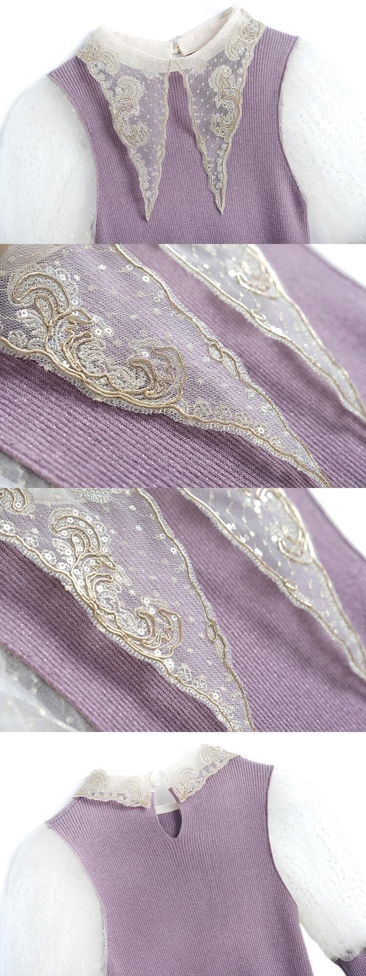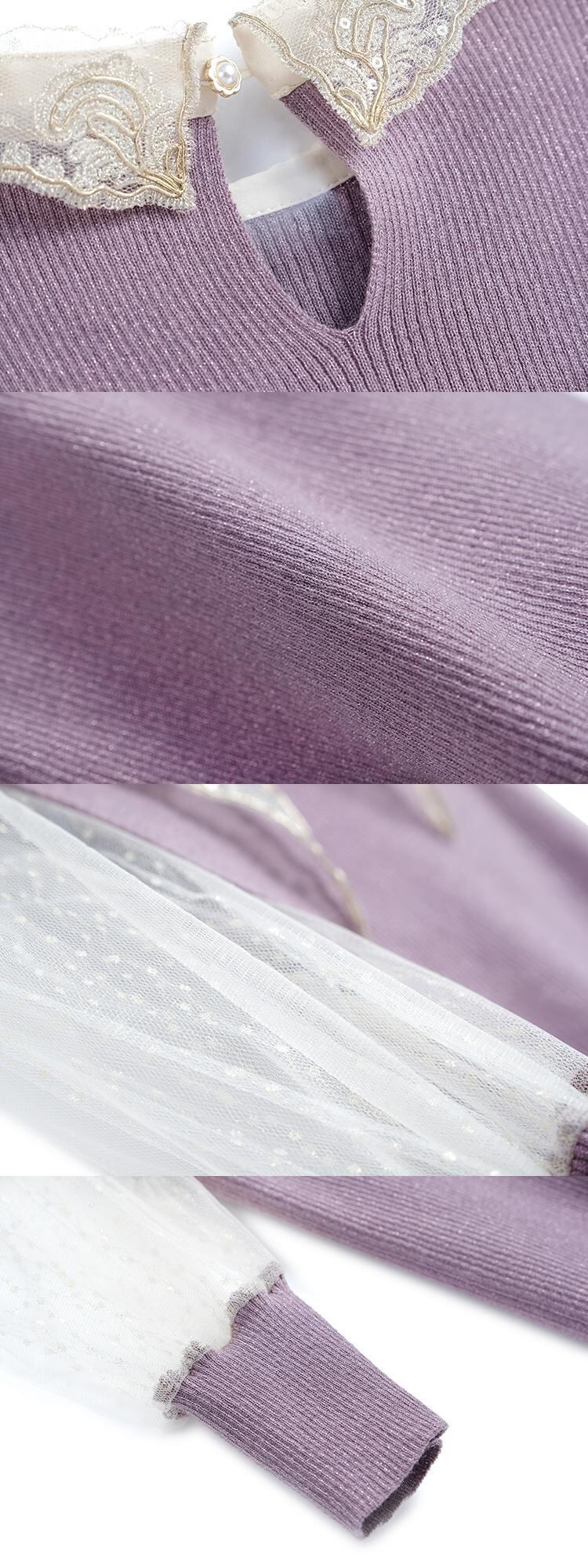 水玉ジャカード刺繍スリーブスリムニットセーター レディースオータム 秋物 ステッチ MIUCO17871277051
