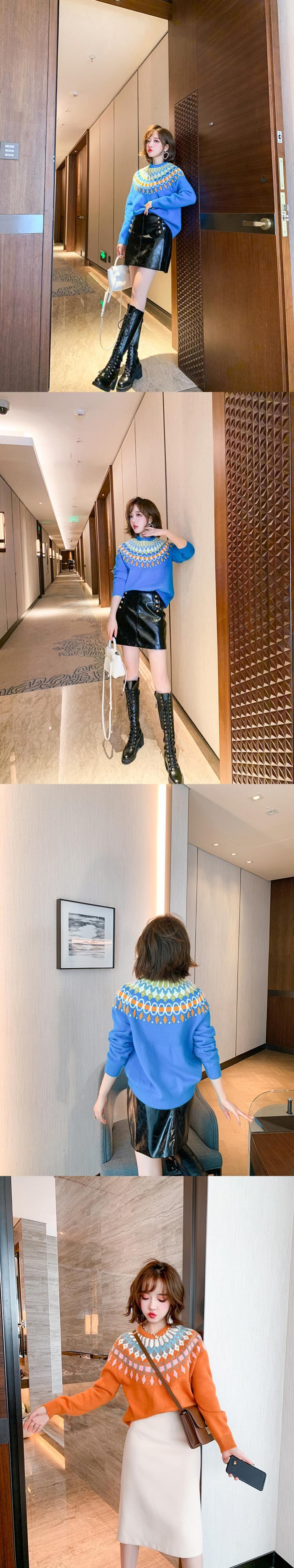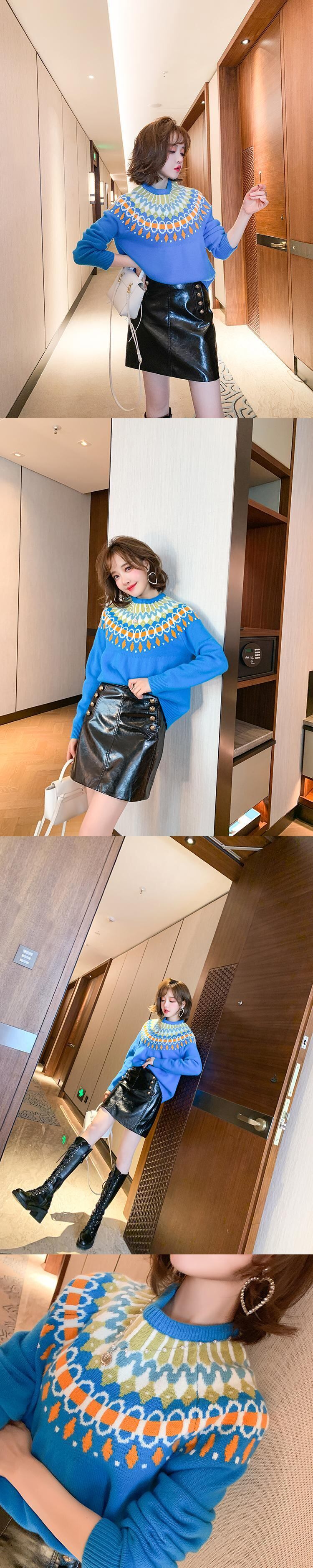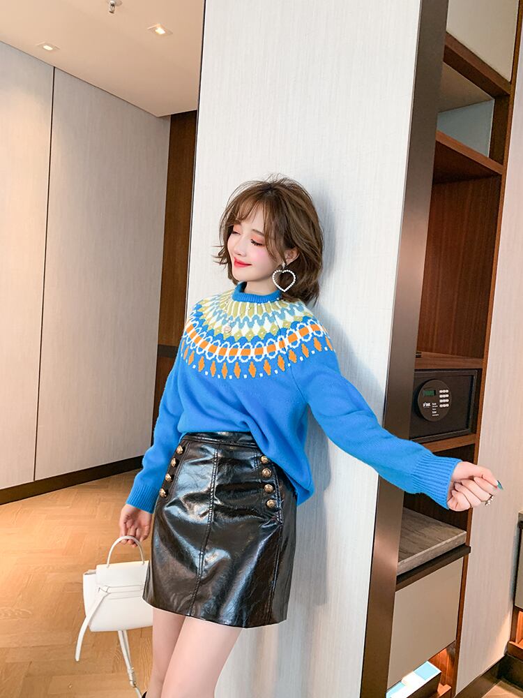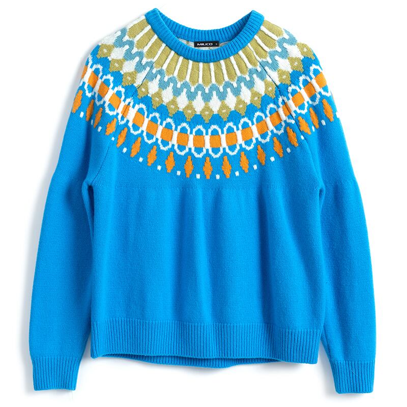 カラーパターンスリーブルーズニットセーター ウィンター 冬物 MIUCO97662704036