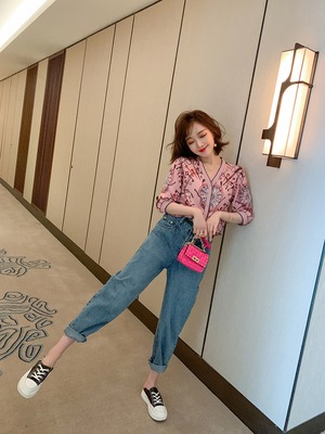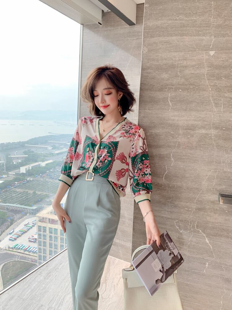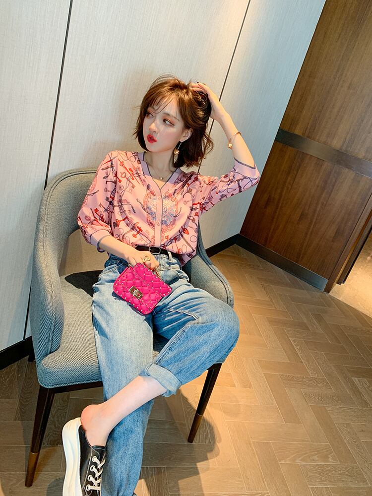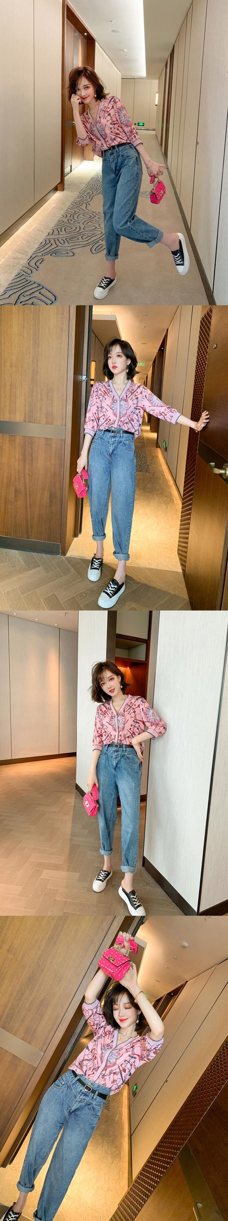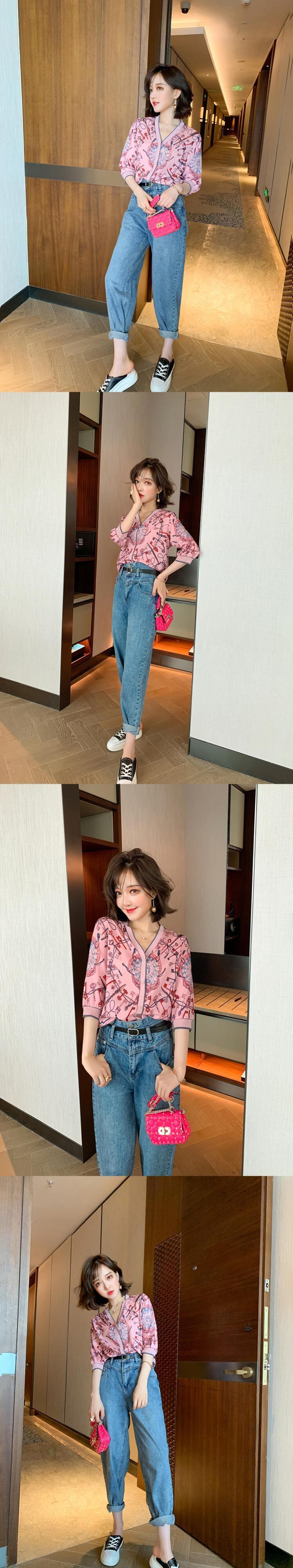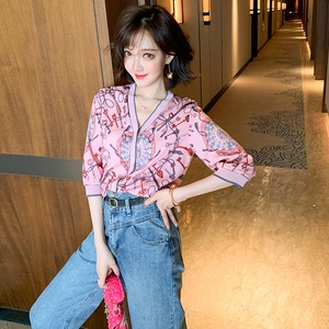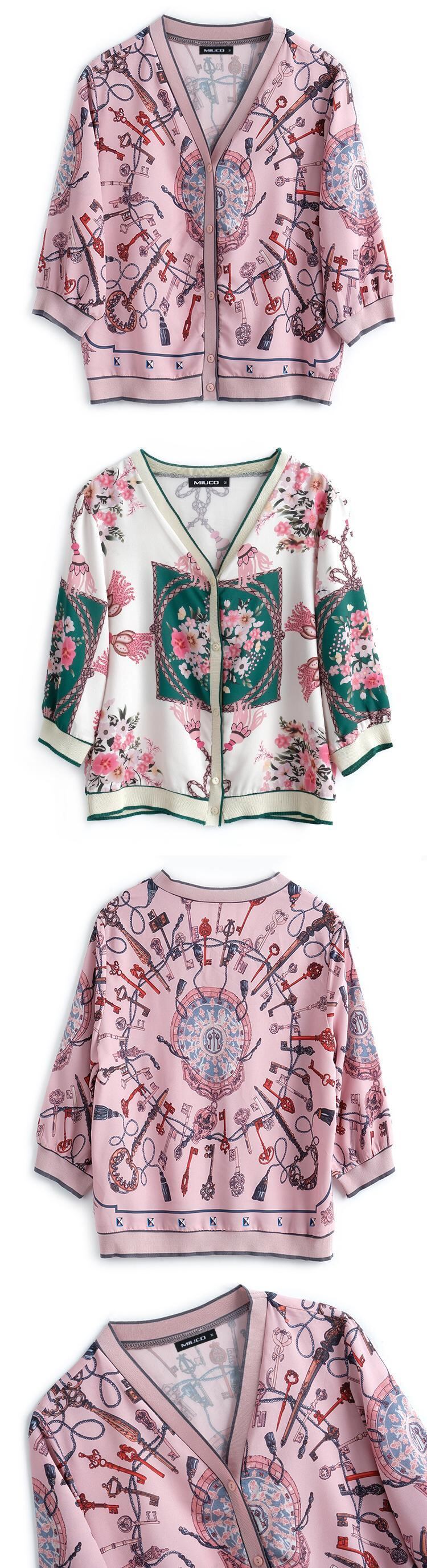 Vネックスタンダードプリントカーディガンジャケット スプリングサマー レトロ 春物 夏物 ステッチ MIUCO65605302663