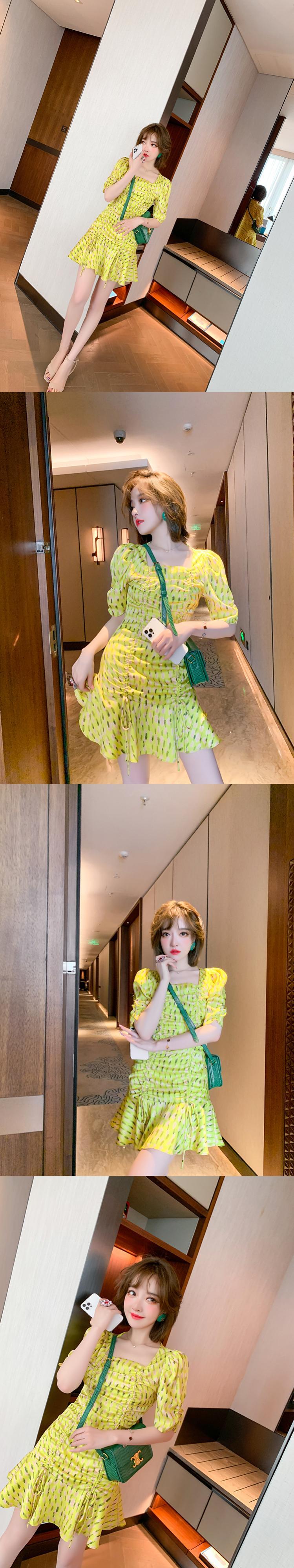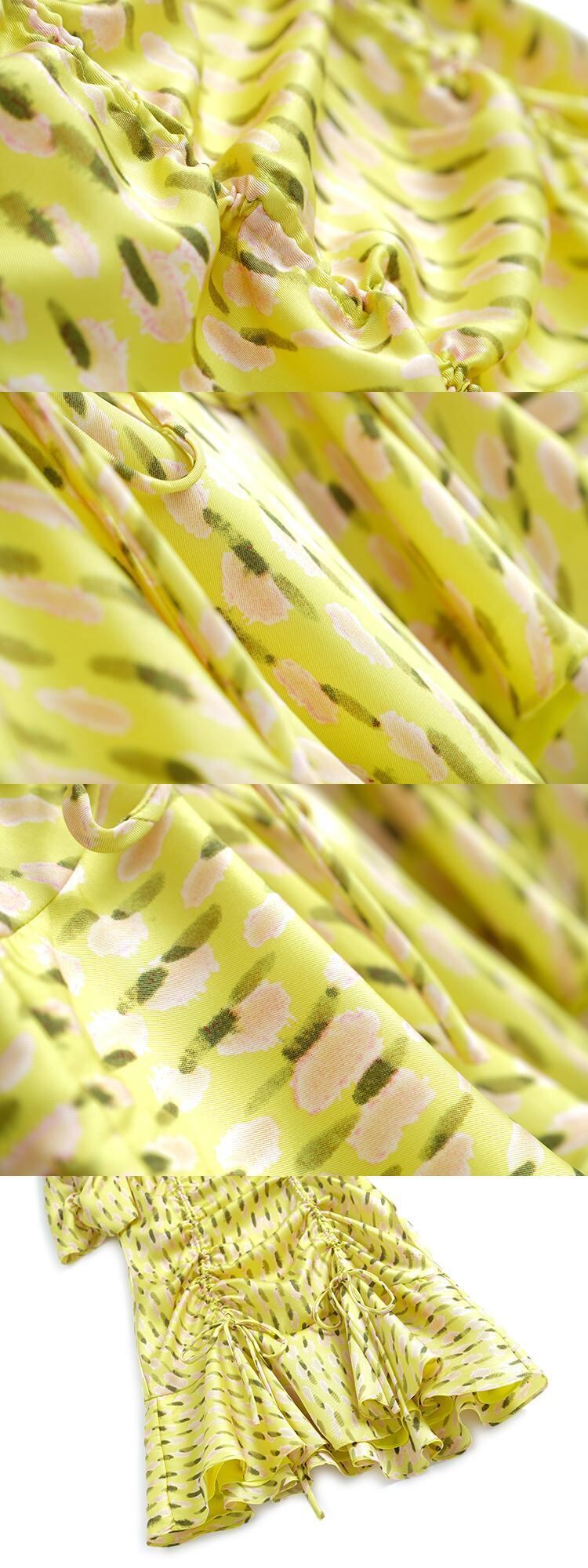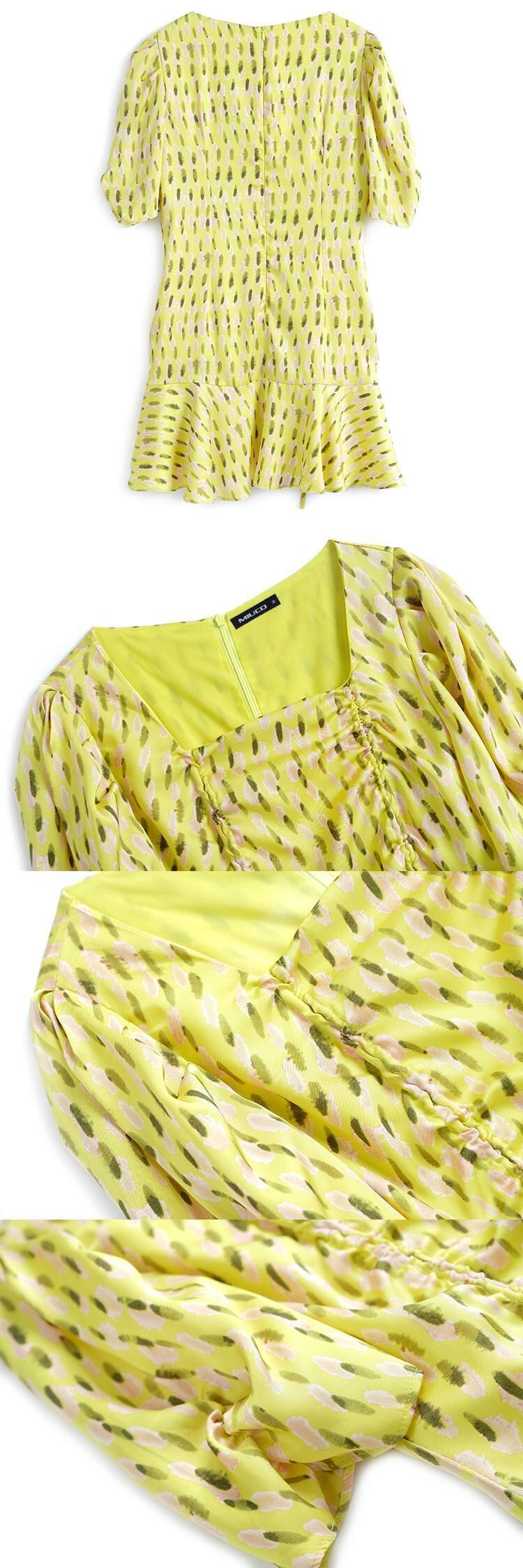 ギャザースリムウェストプリント柄ドレス スクウェア MIUCO28539200528