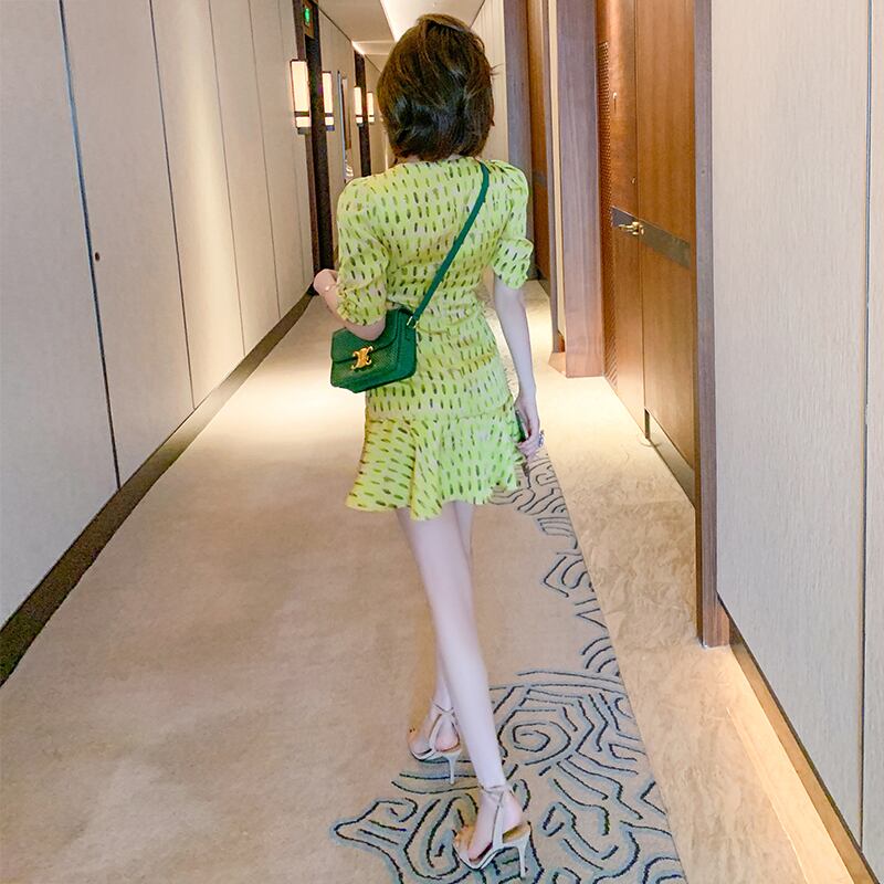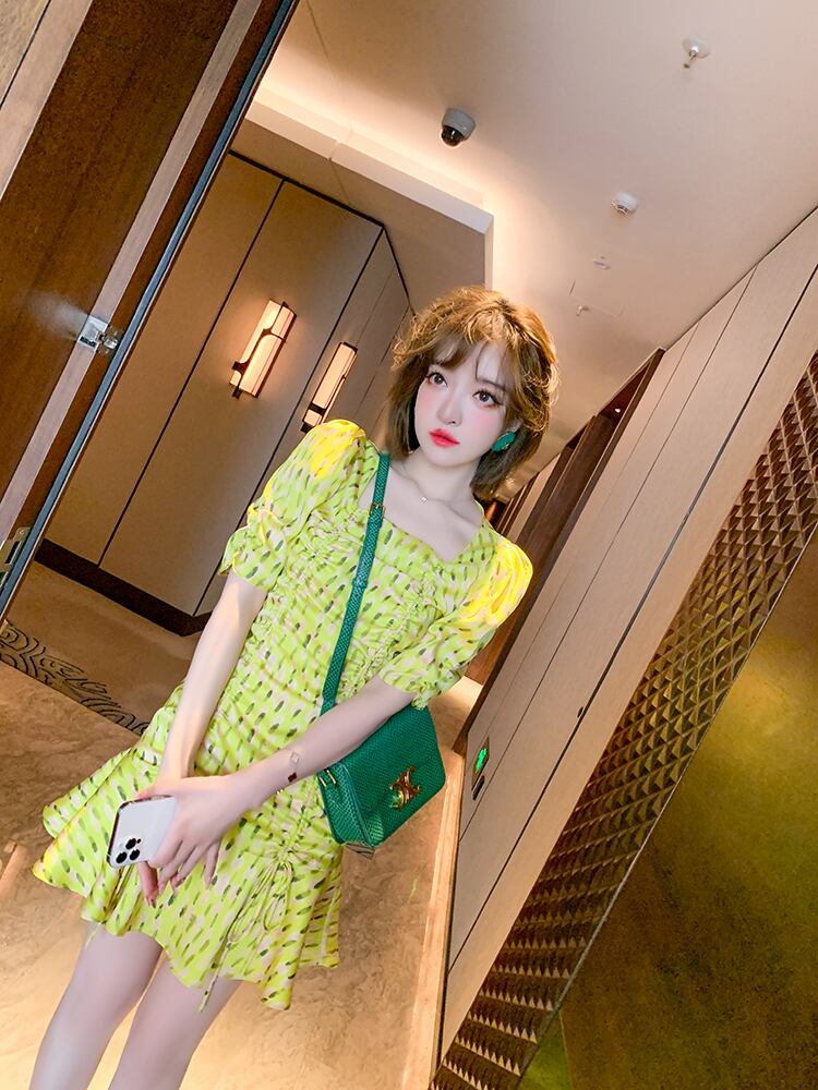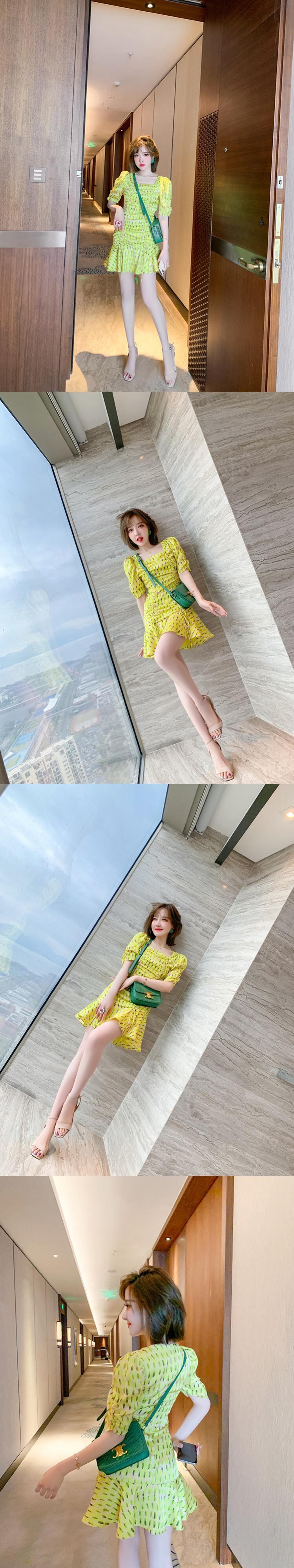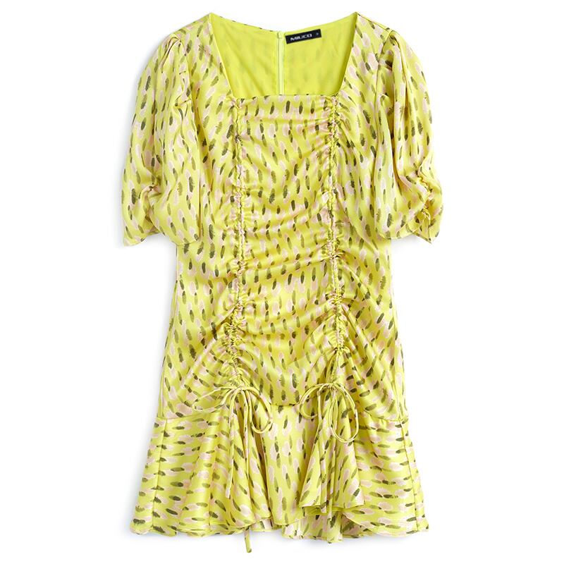 ギャザースリムウェストプリント柄ドレス スクウェア MIUCO28539200528
